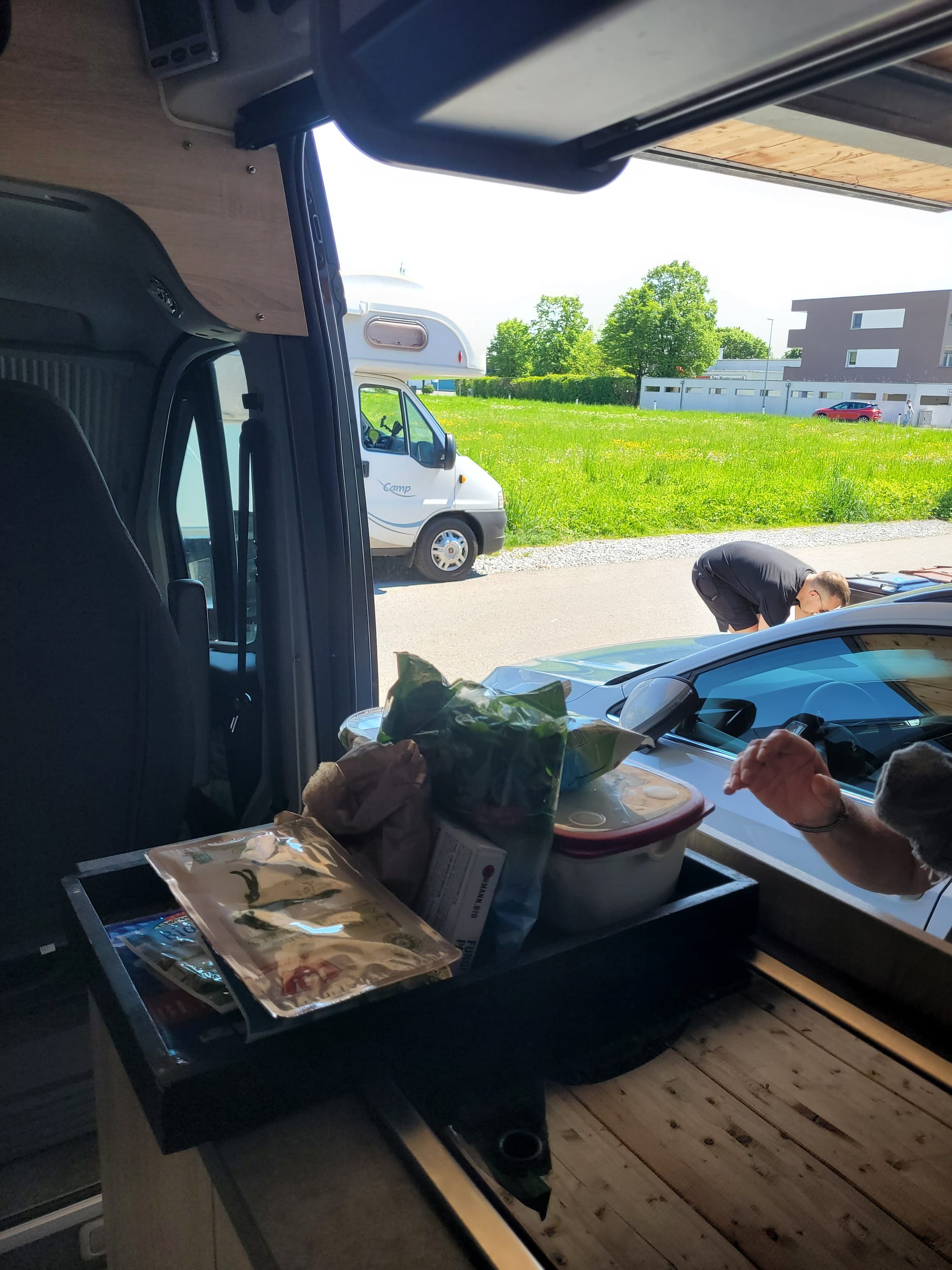 Wir haben es nicht eilig. Matthias kommt am Vormittag um an der Schnecke 🐌 zu arbeiten. Und nebenbei wird der Luigi für unsere Reise fertiggemacht.