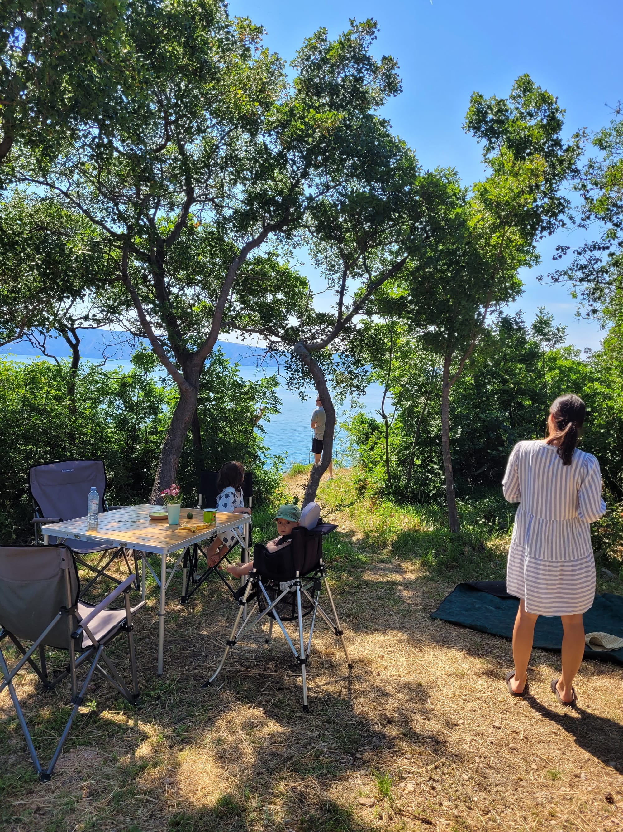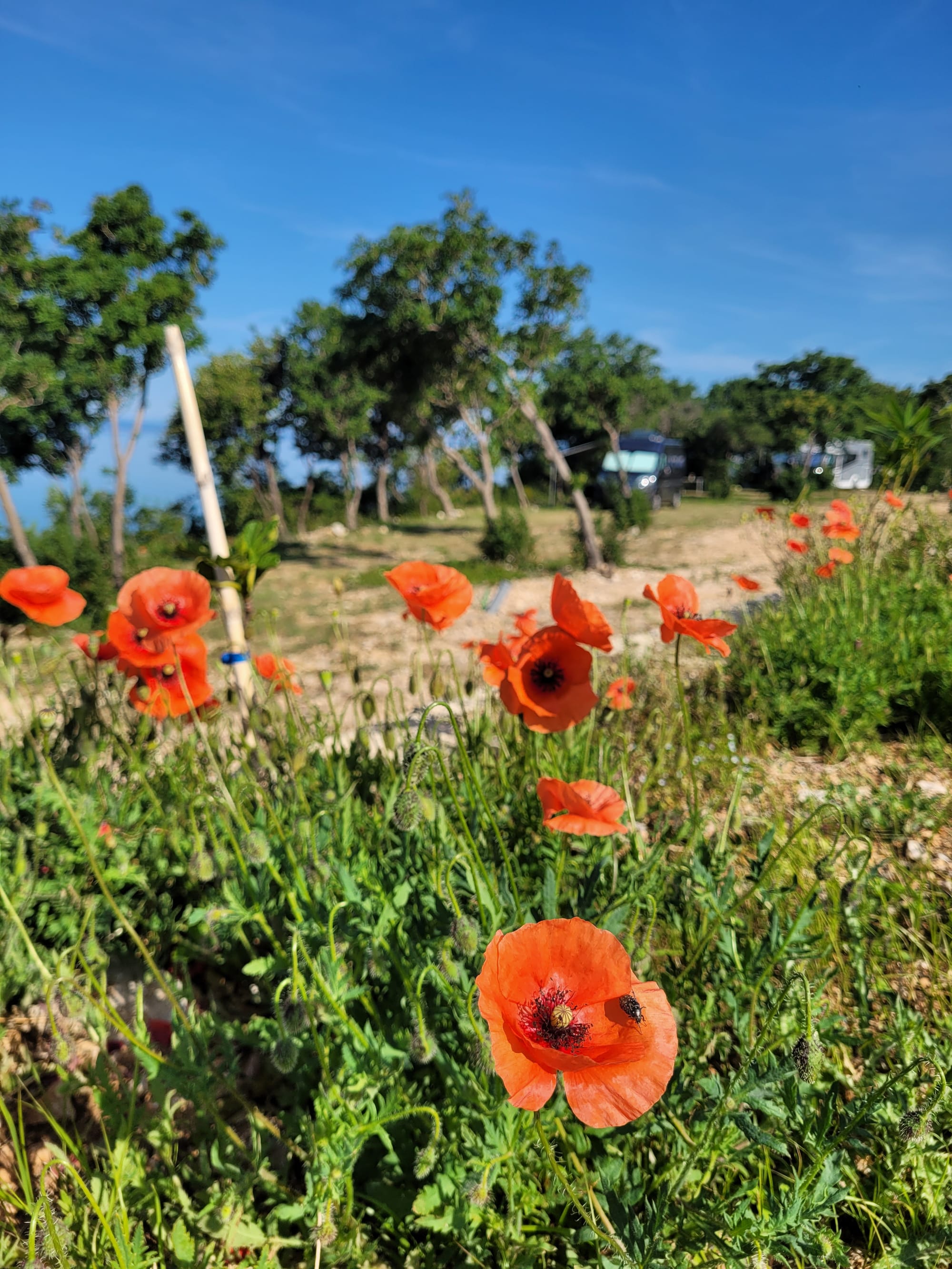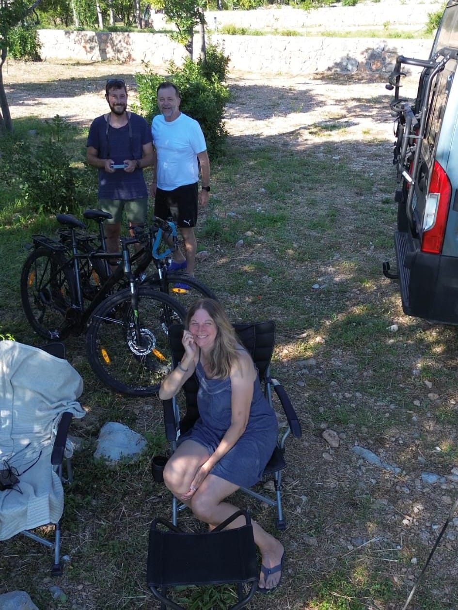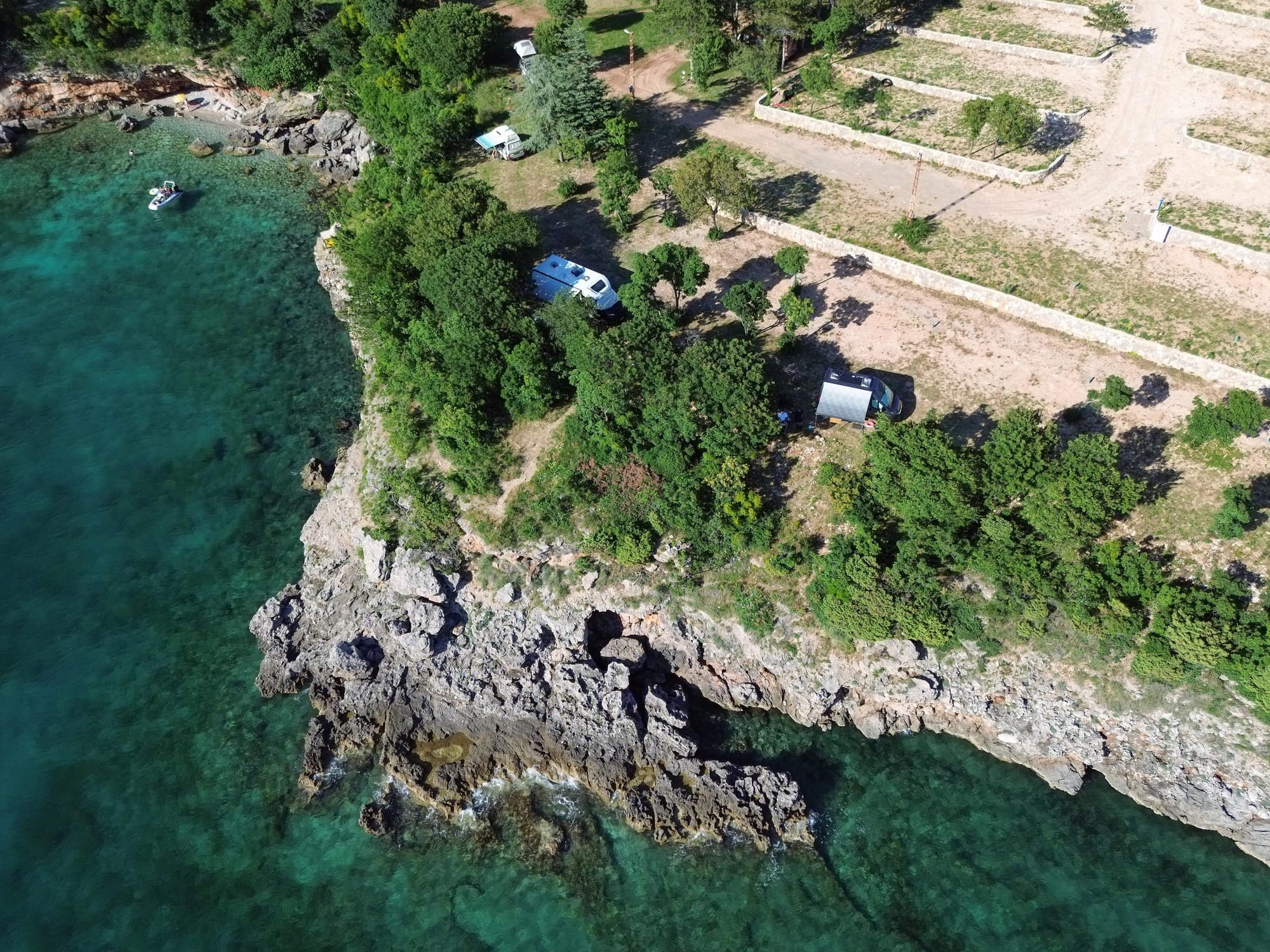...und schwimme eine Runde im eiskalten, klaren Wasser. Es ist eine wunderschöne Stimmung mit dem Blick nach Krk.