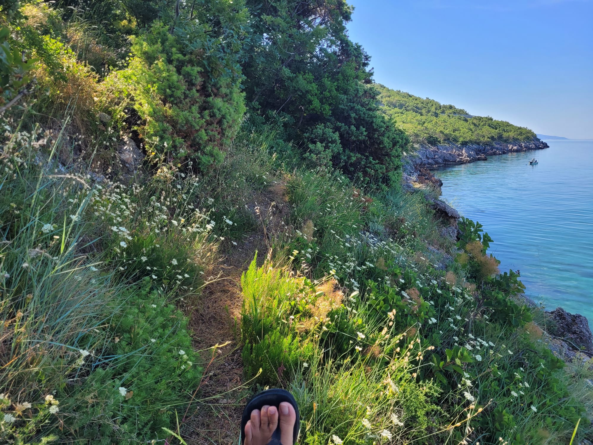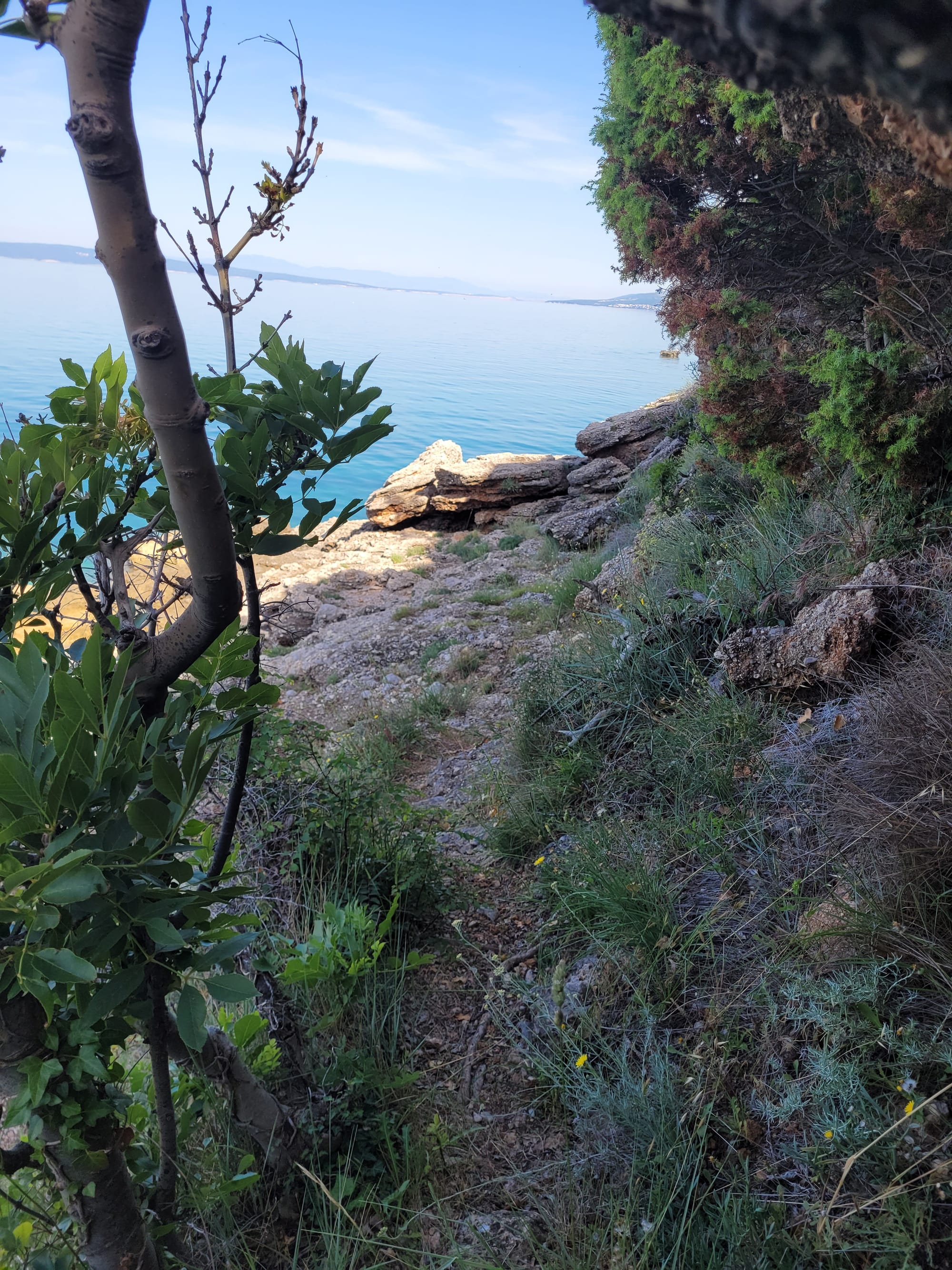 In der Früh gehe ich unseren Abstieg zum Meer hinunter...