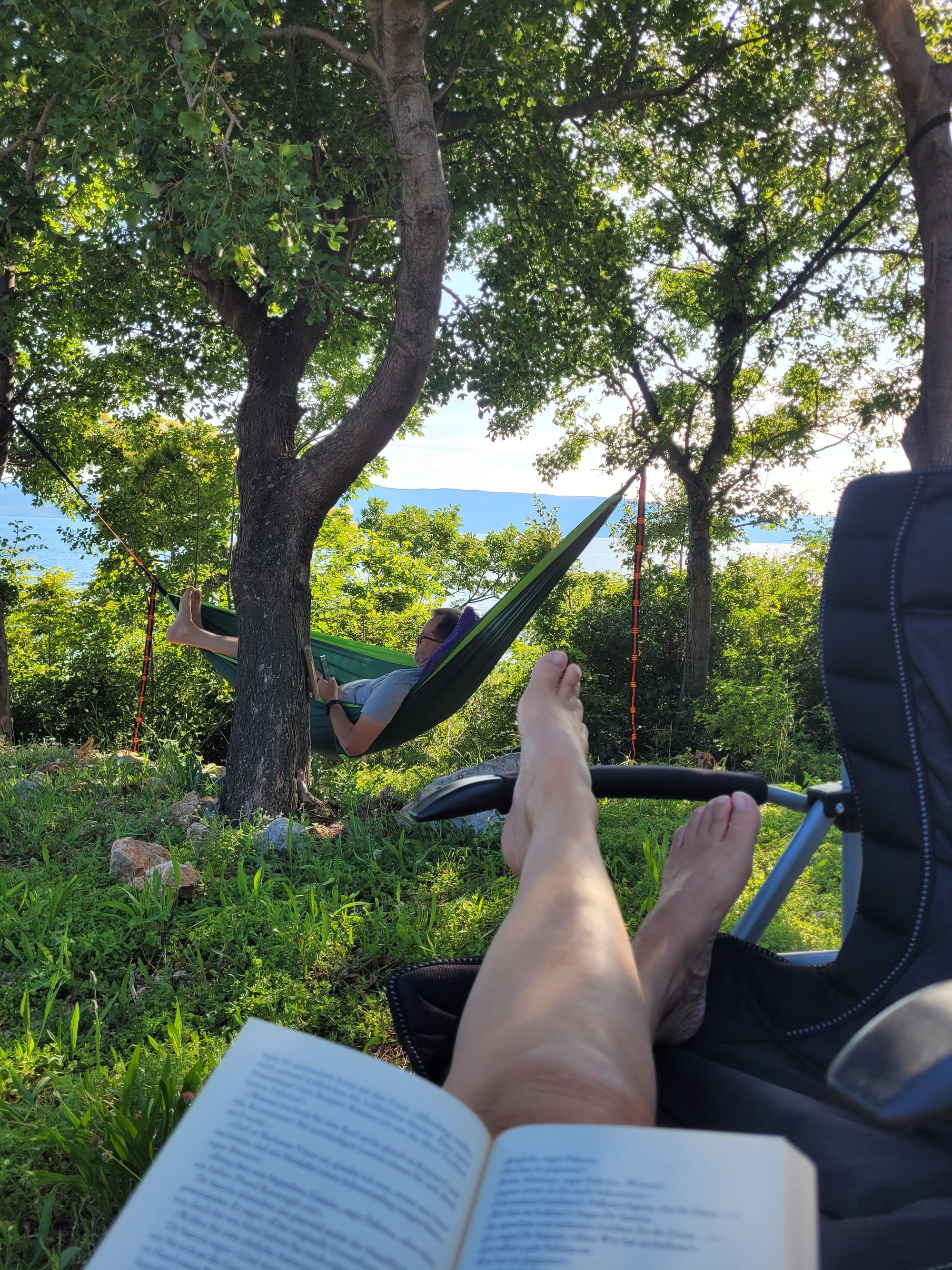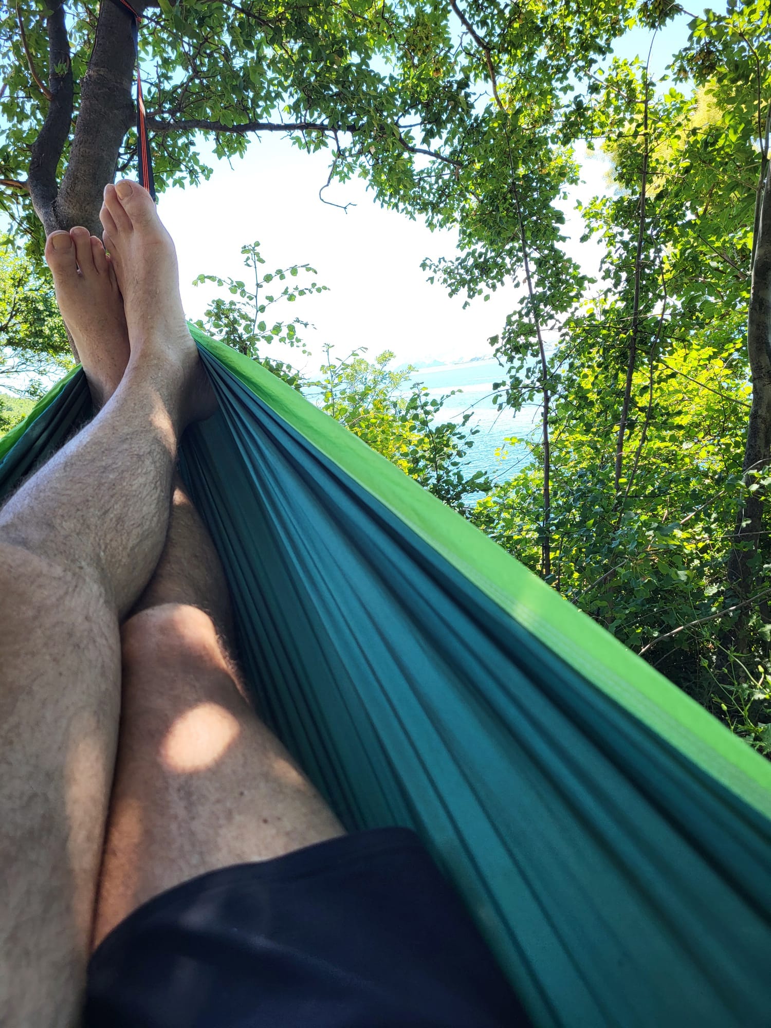 Wir liegen/schlafen abwechselnd in der Hängematte: