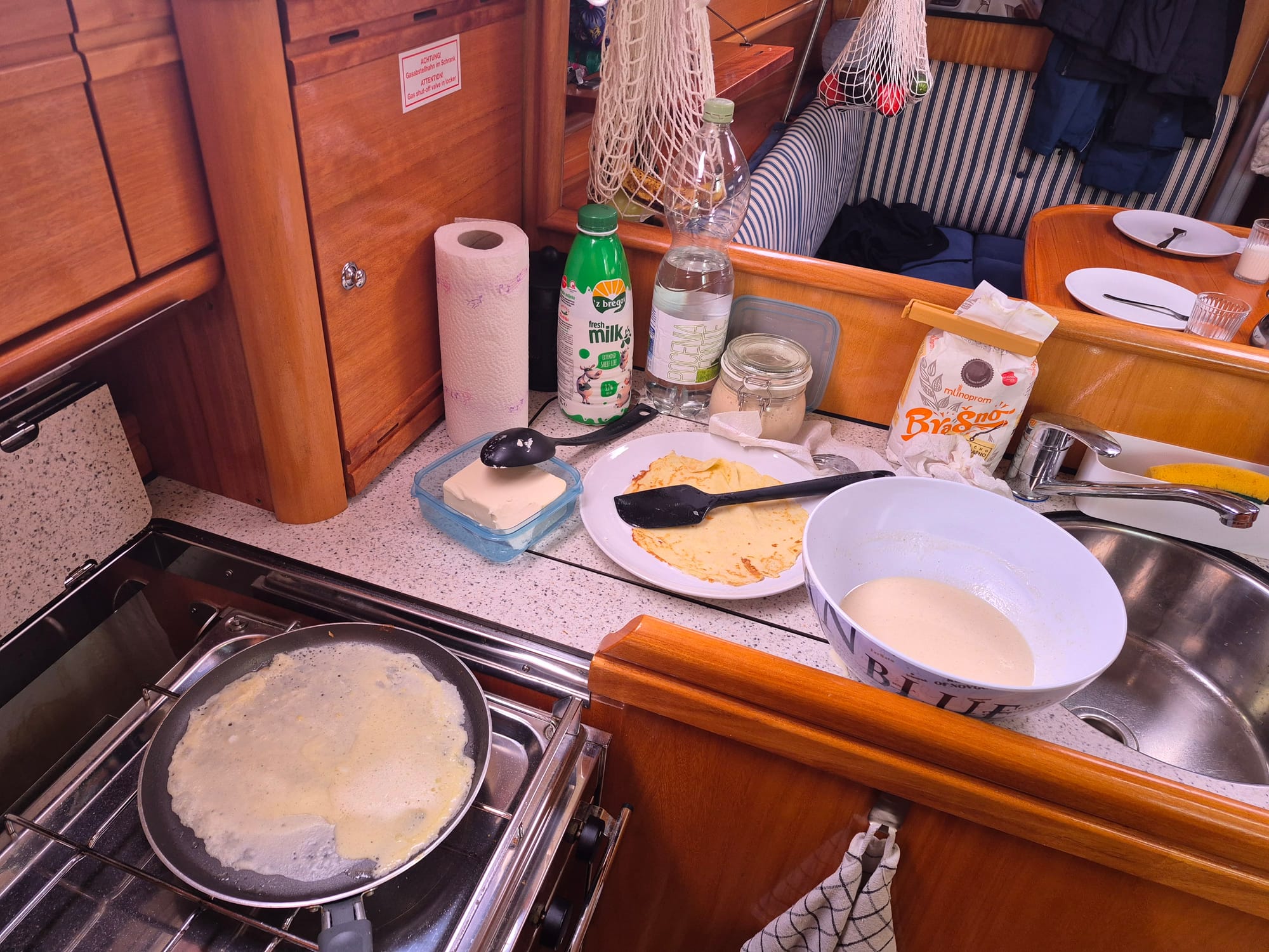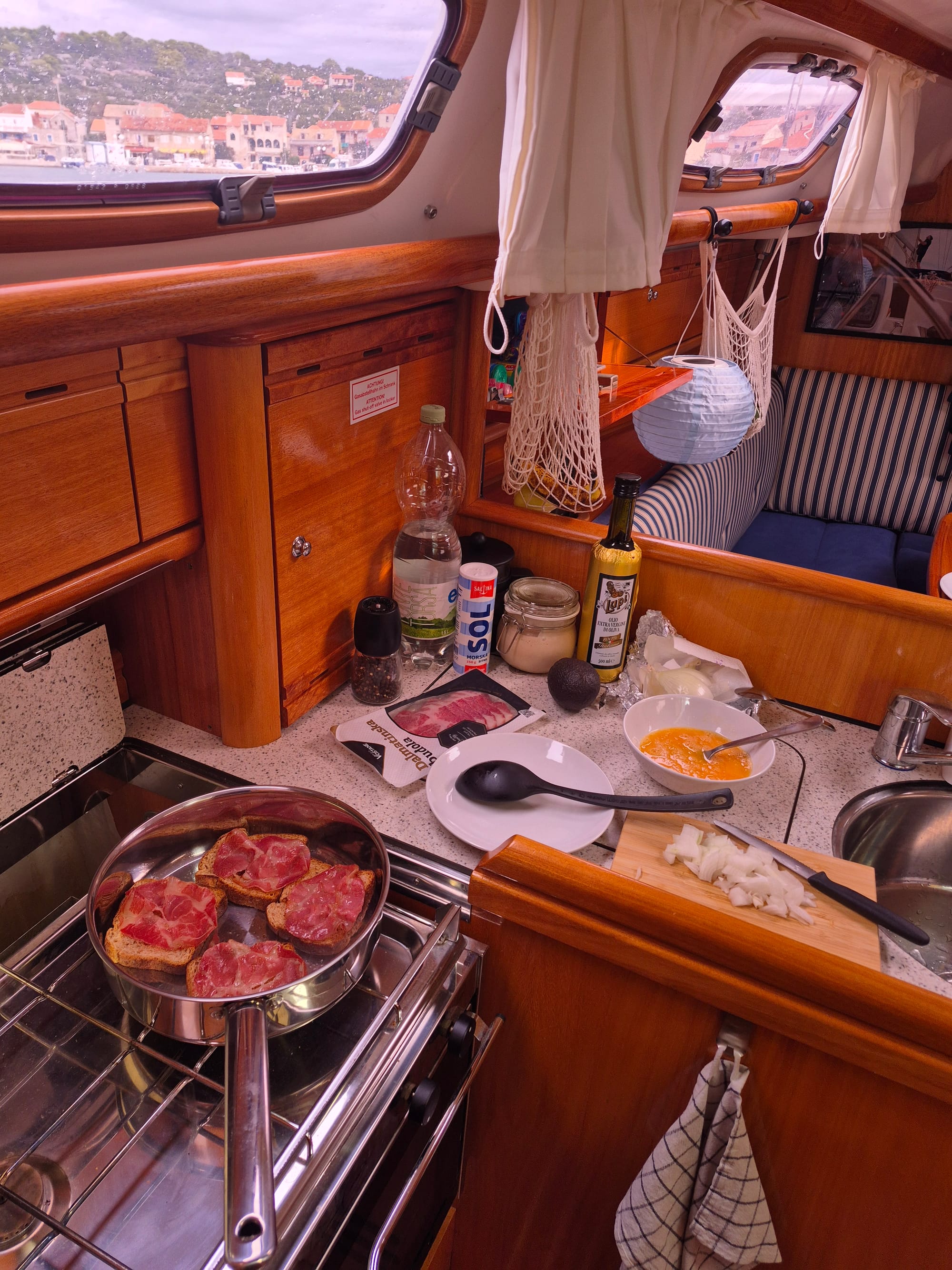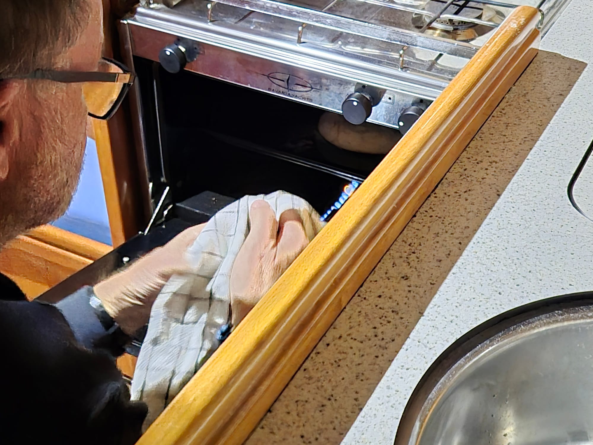 Und dann ist es soweit: wir verwenden das erste Mal ein Backrohr auf einem Segelboot, und dann gleich auf unserem.