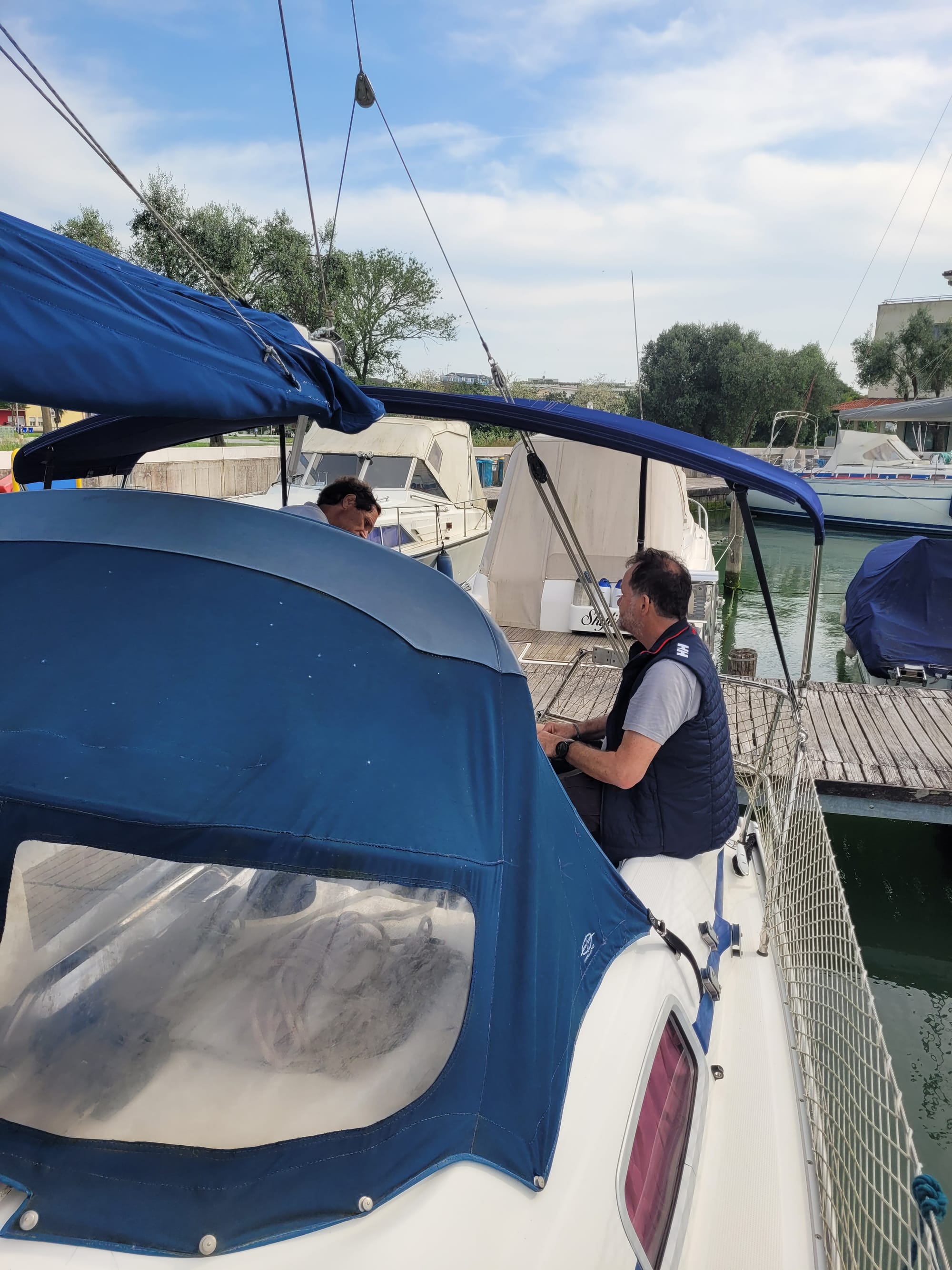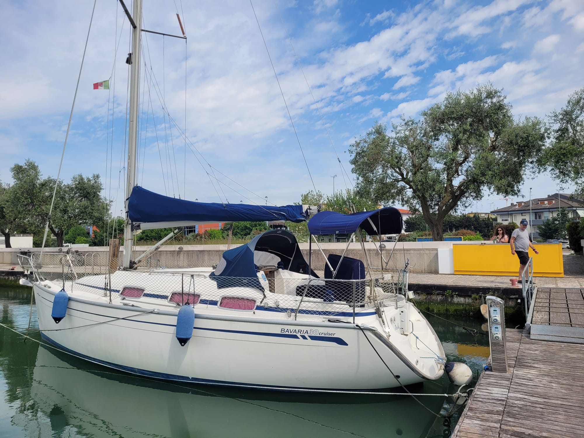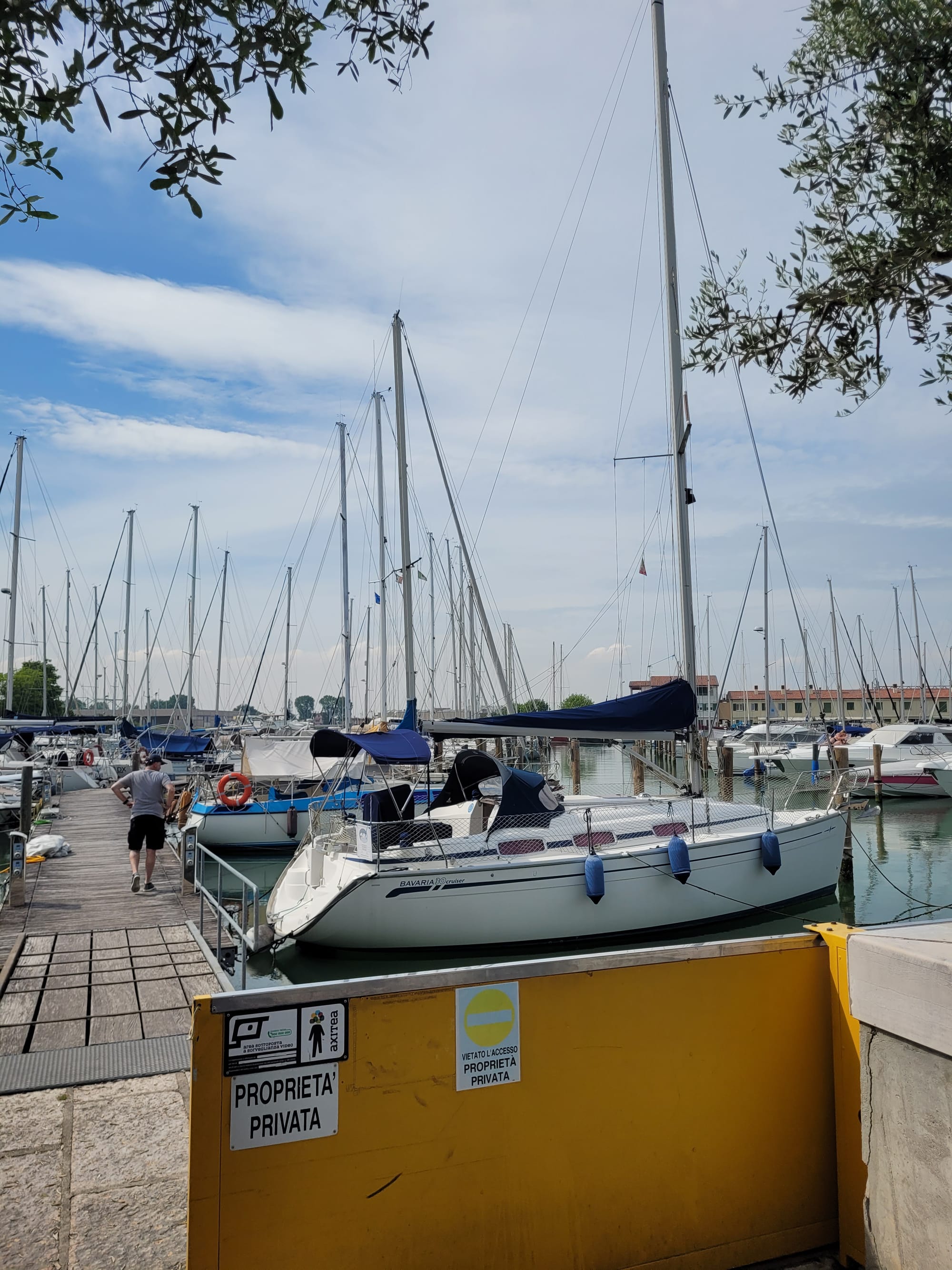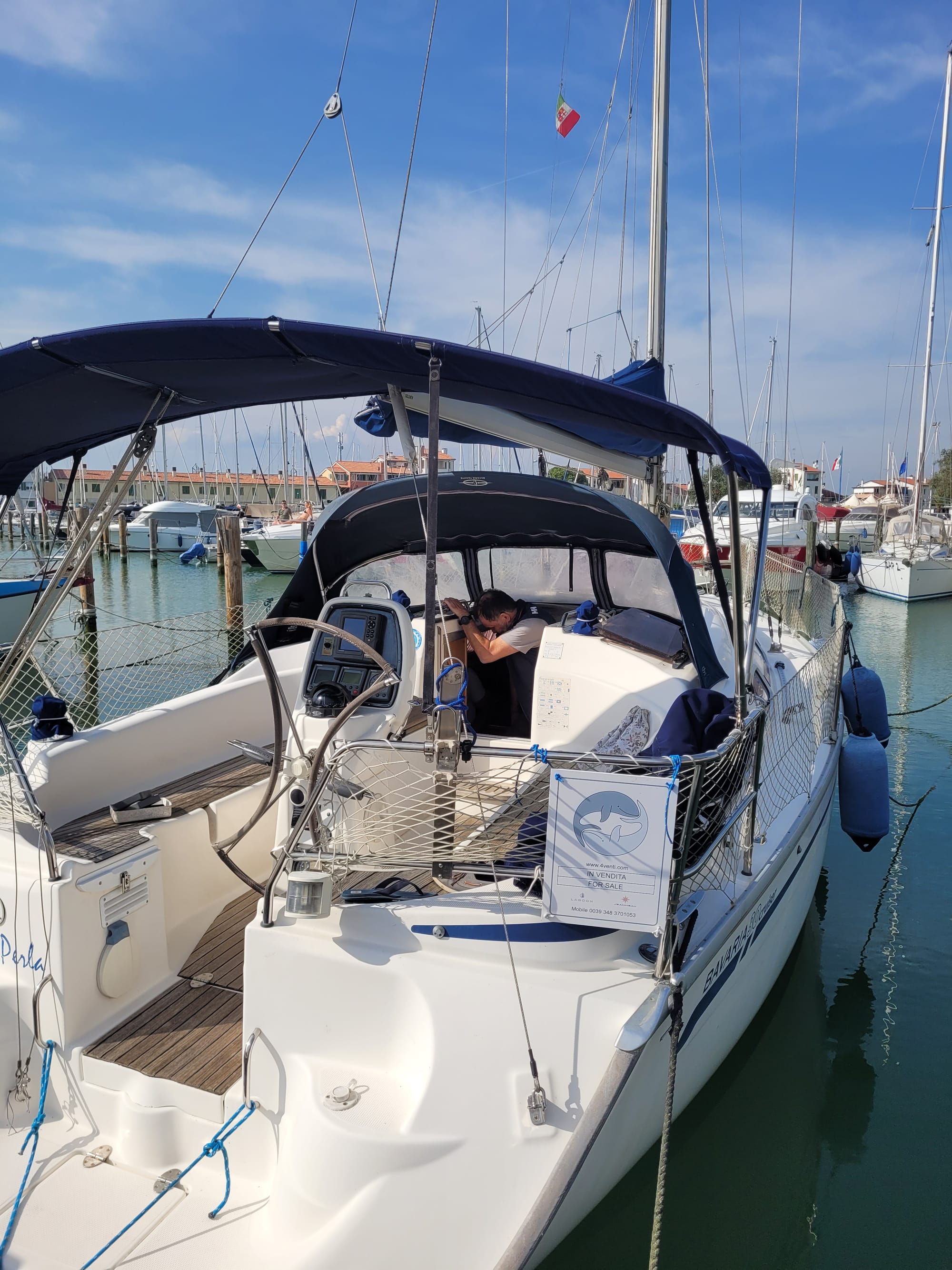 Hier haben wir einen Besichtigungstermin, auch für eine Bavaria 30, mit dem Makler Alberto. Und der war im Vorfeld schon sehr speziell. Und das bleibt er auch.