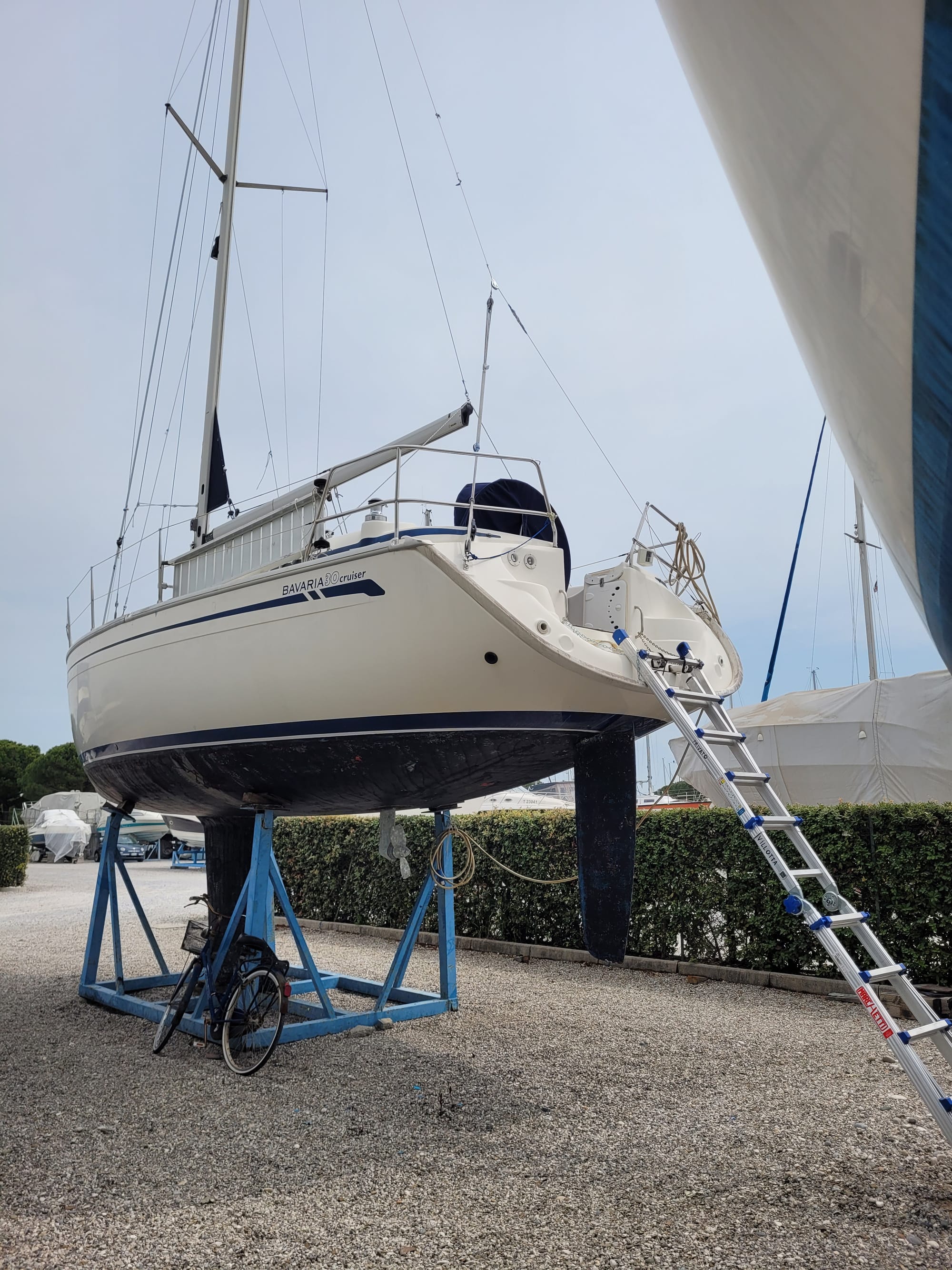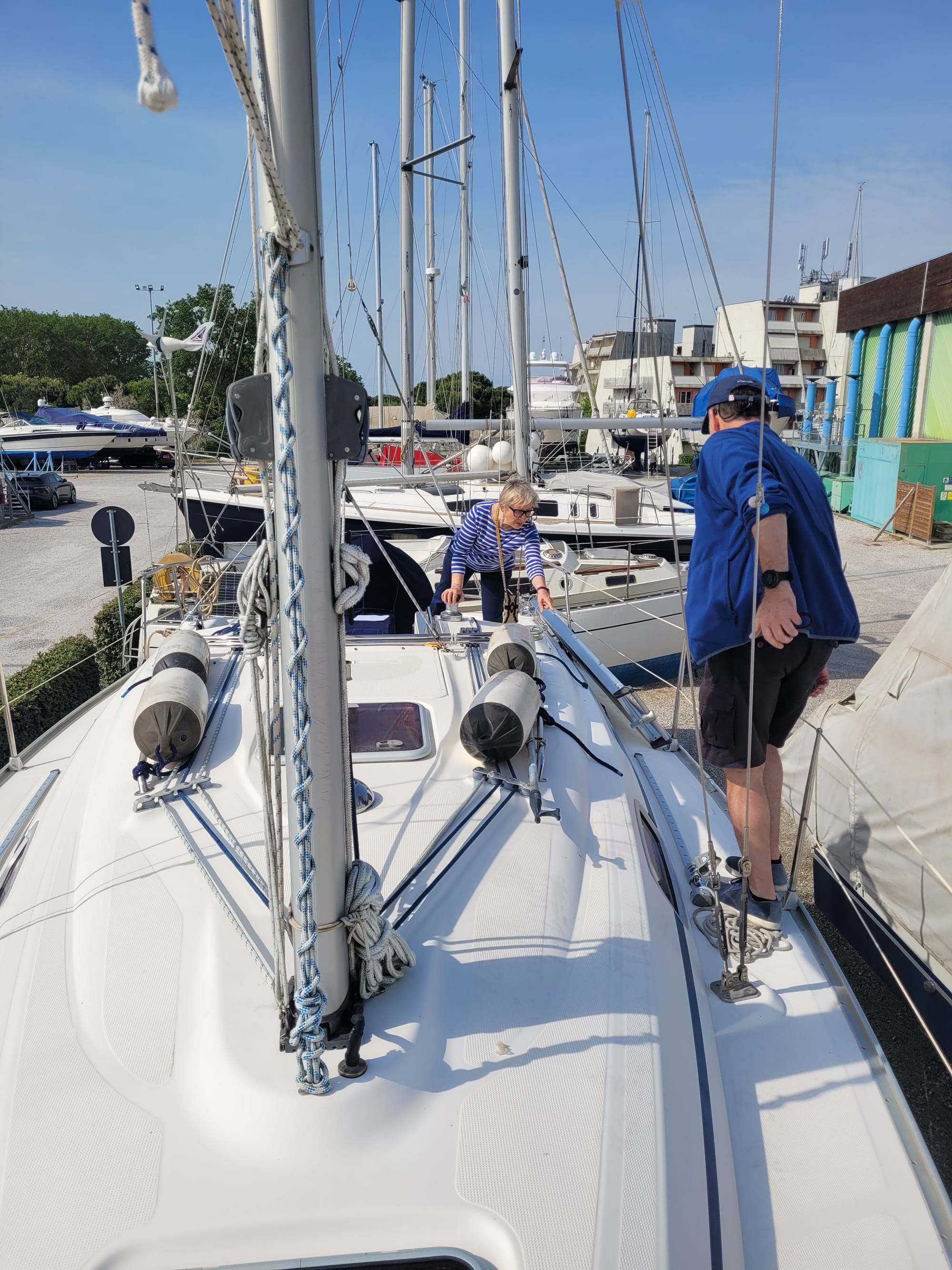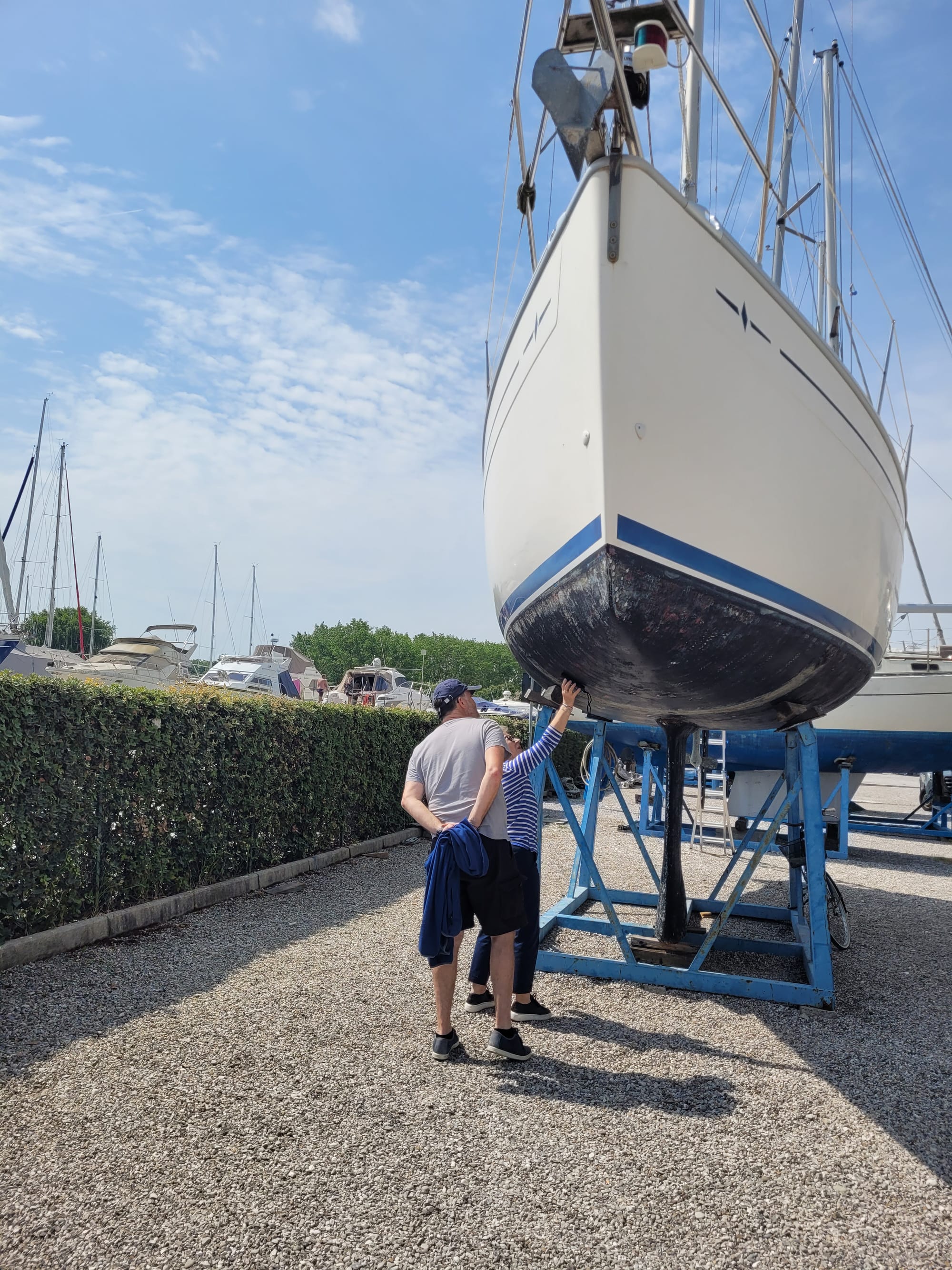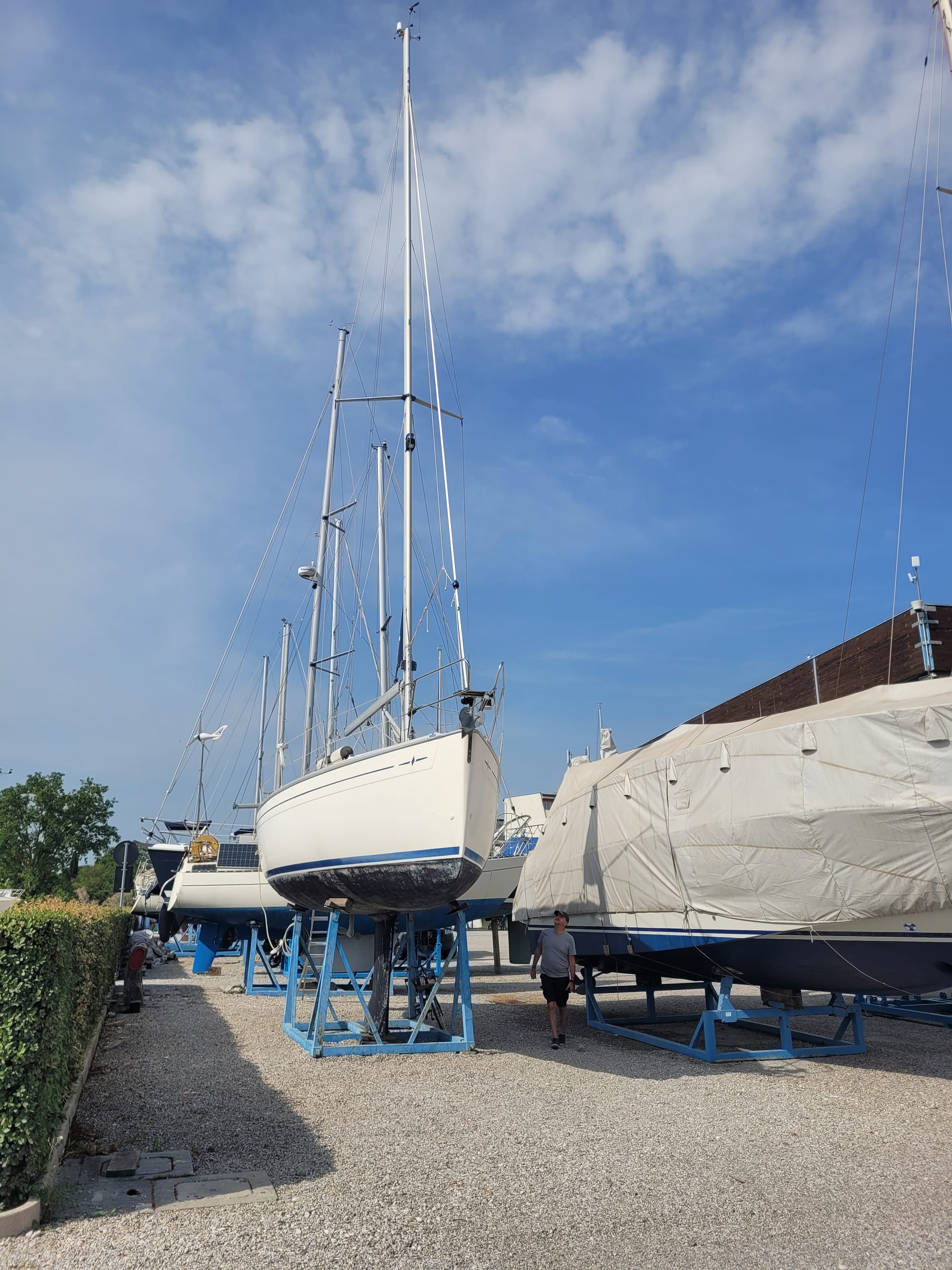Hier haben wir einen Besichtigungstermin, auch für eine Bavaria 30, mit dem Makler Alberto. Und der war im Vorfeld schon sehr speziell. Und das bleibt er auch.