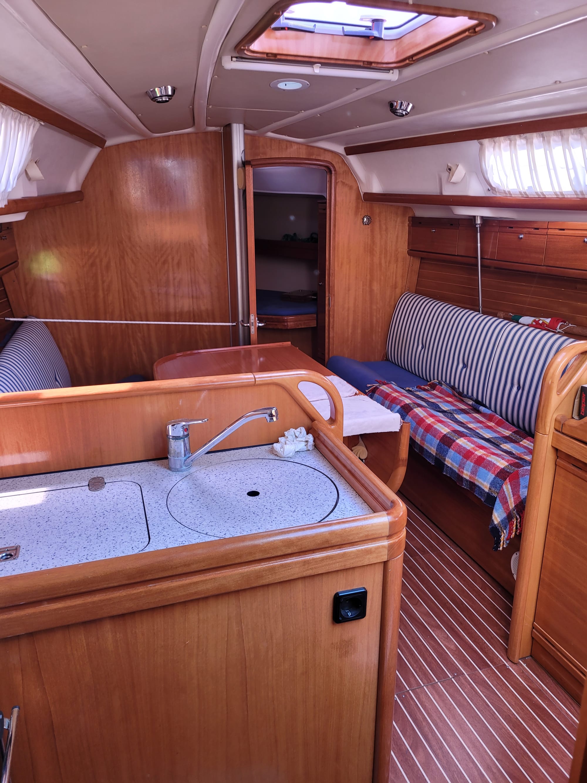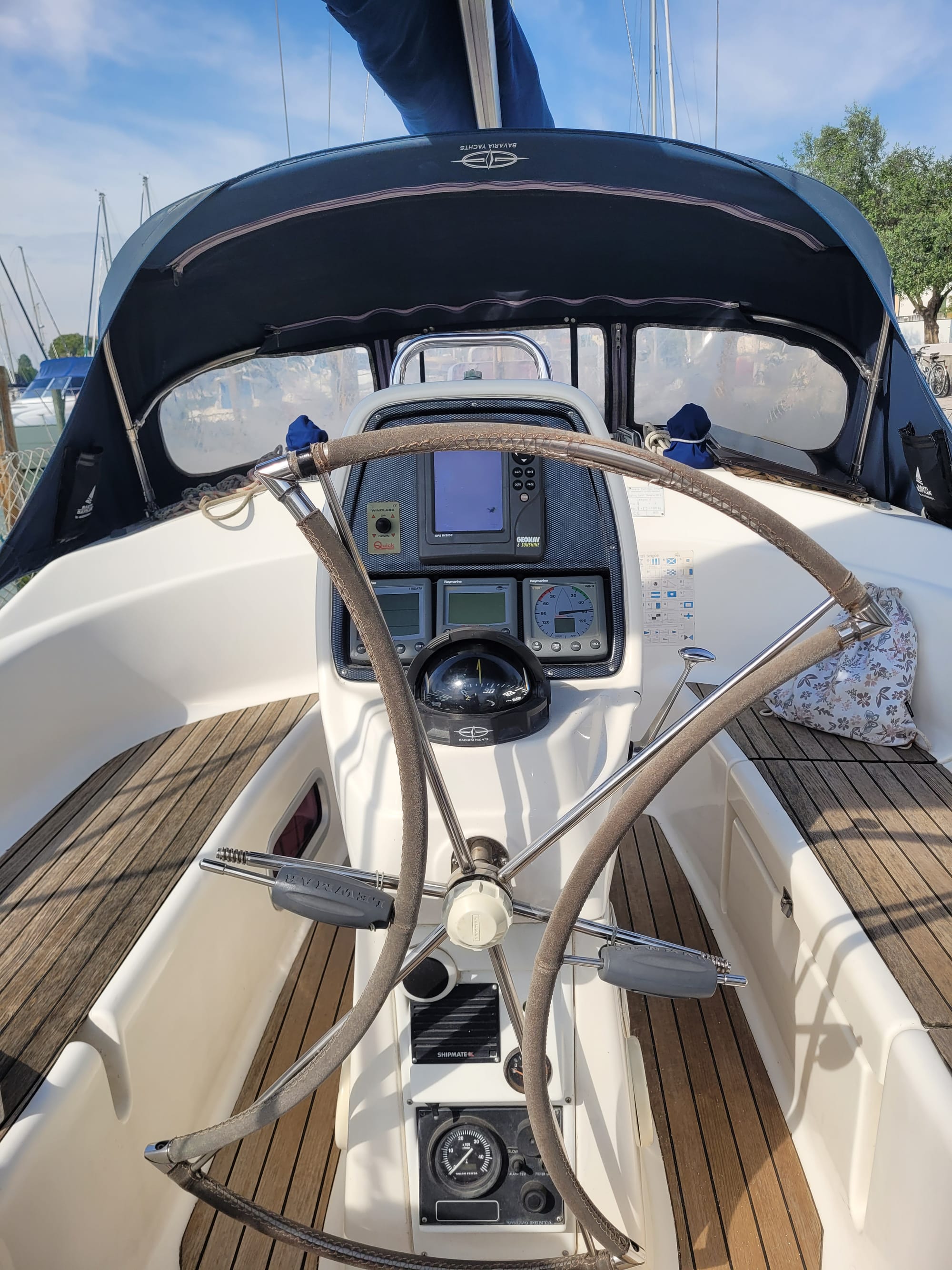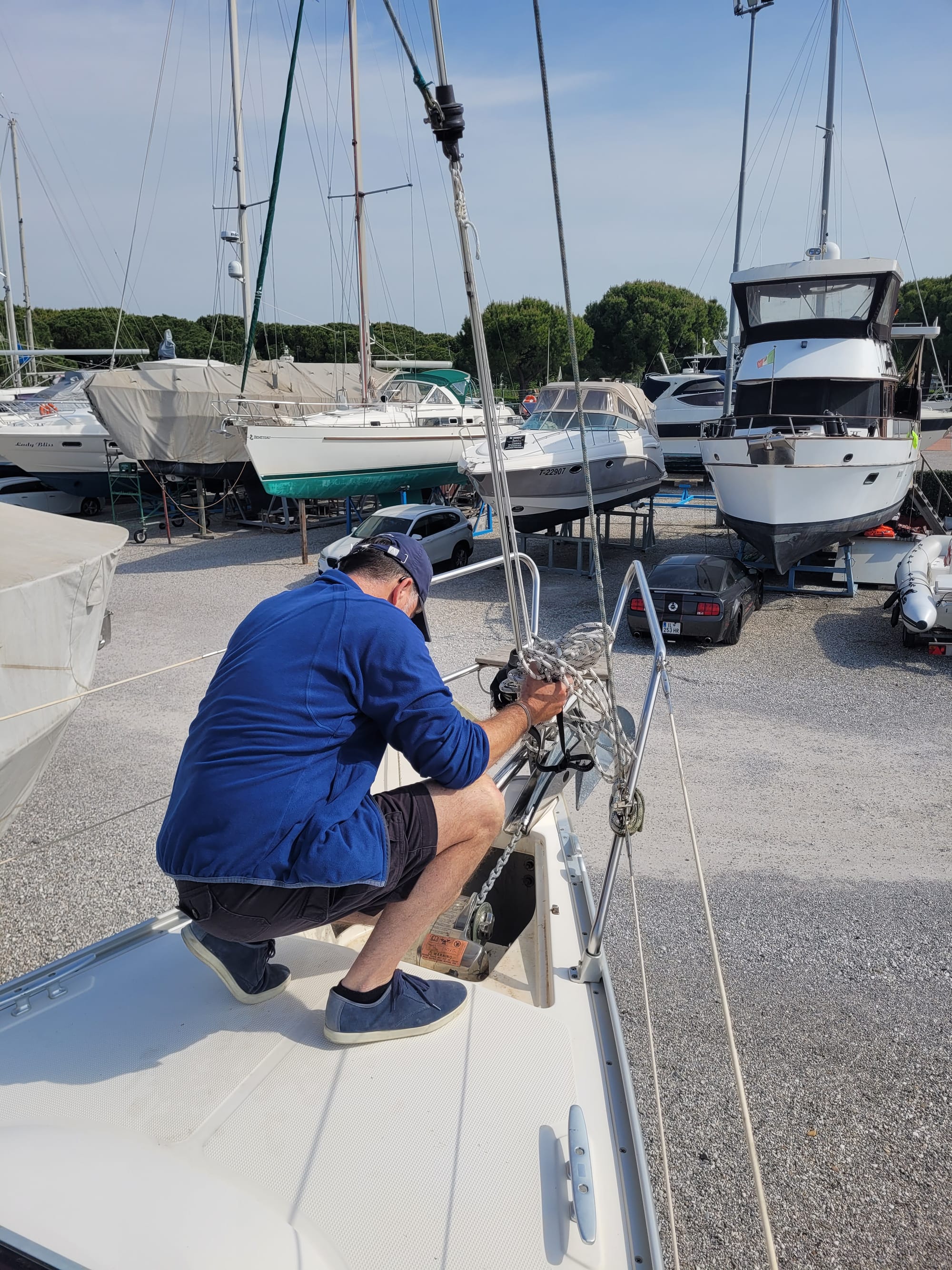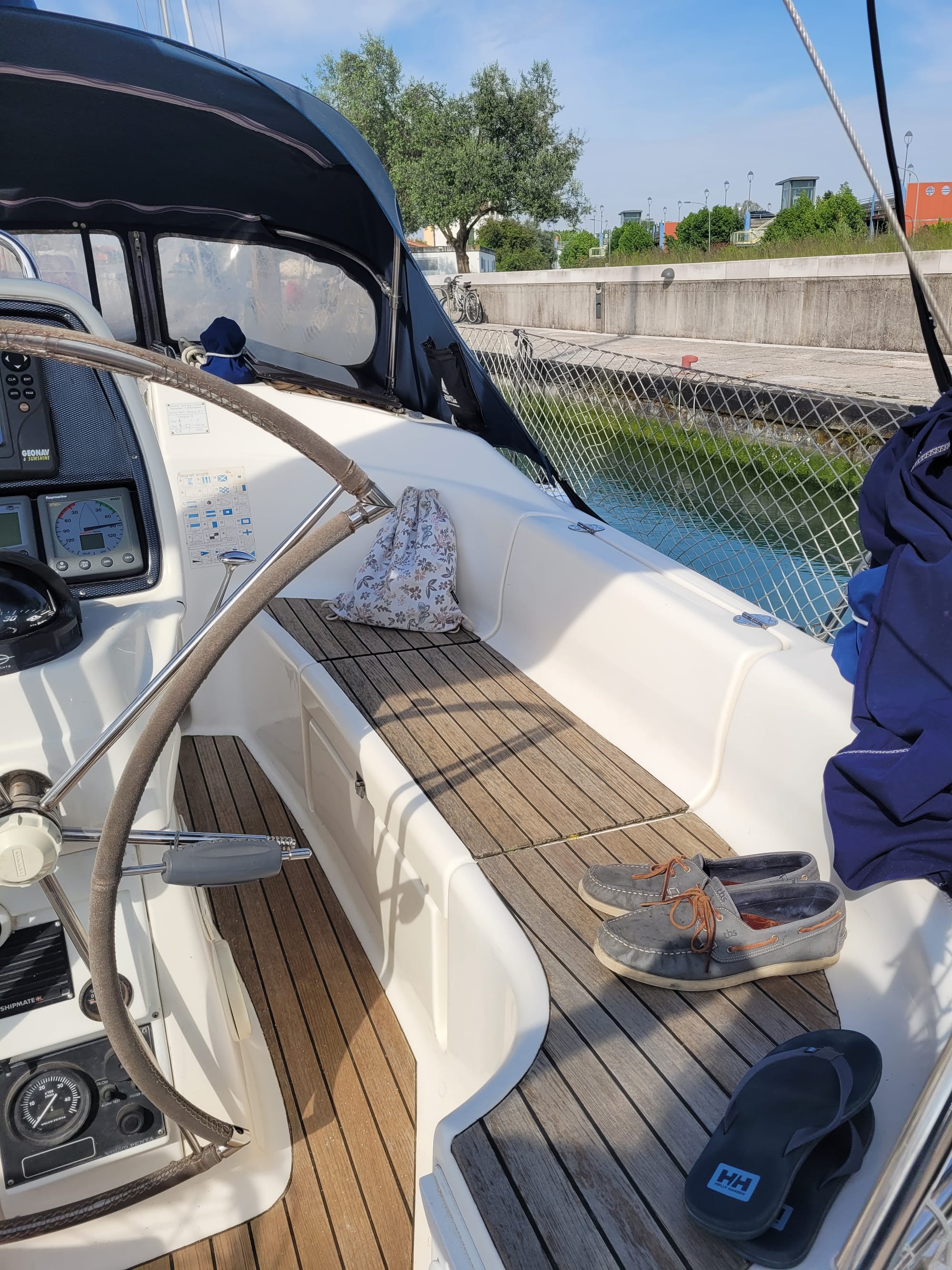 Hier haben wir einen Besichtigungstermin, auch für eine Bavaria 30, mit dem Makler Alberto. Und der war im Vorfeld schon sehr speziell. Und das bleibt er auch.
