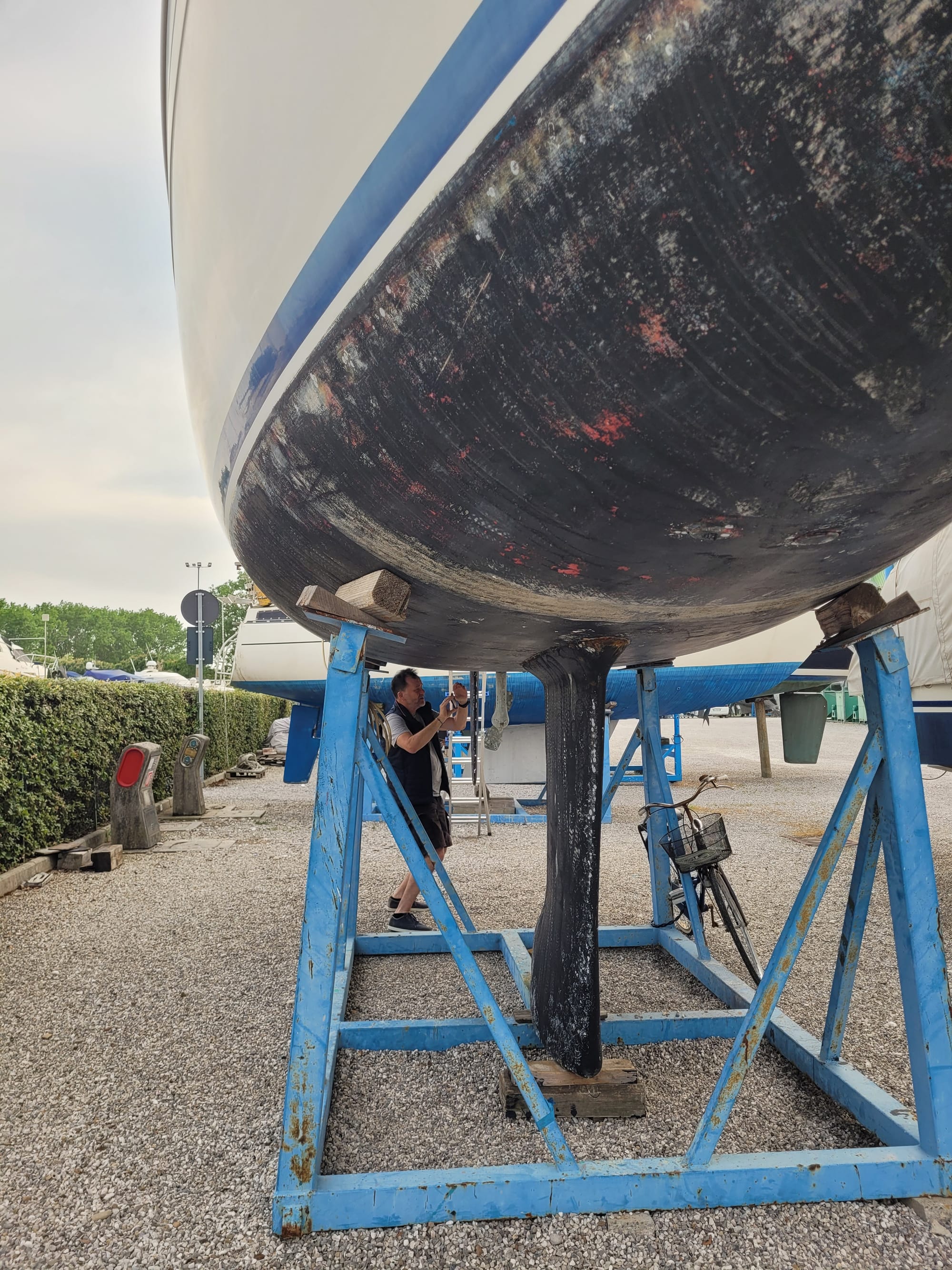 Schließlich taucht Alberto dann doch 5 Minuten nach der vereinbarten Zeit auf und wieder geht die Inspektion los, Außen...