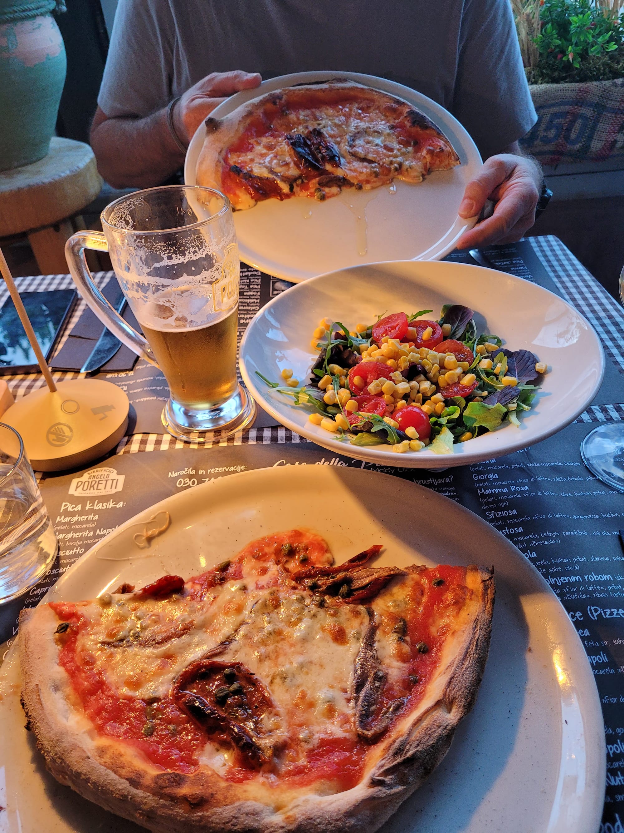 Er bleibt dann aber doch aus. Wir essen in der Stammpizzeria zu Abend...