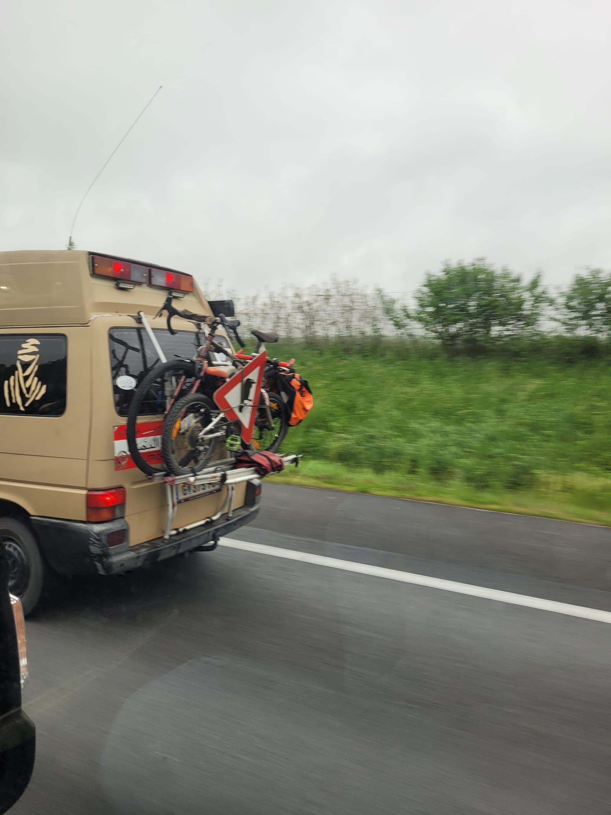 Auf der Heimreise sehen wir dann diesen lustigen, coolen Kollegen mit seinem "Achtung Rinder" Warnschild als Fahrradräger Warntafel. 😄