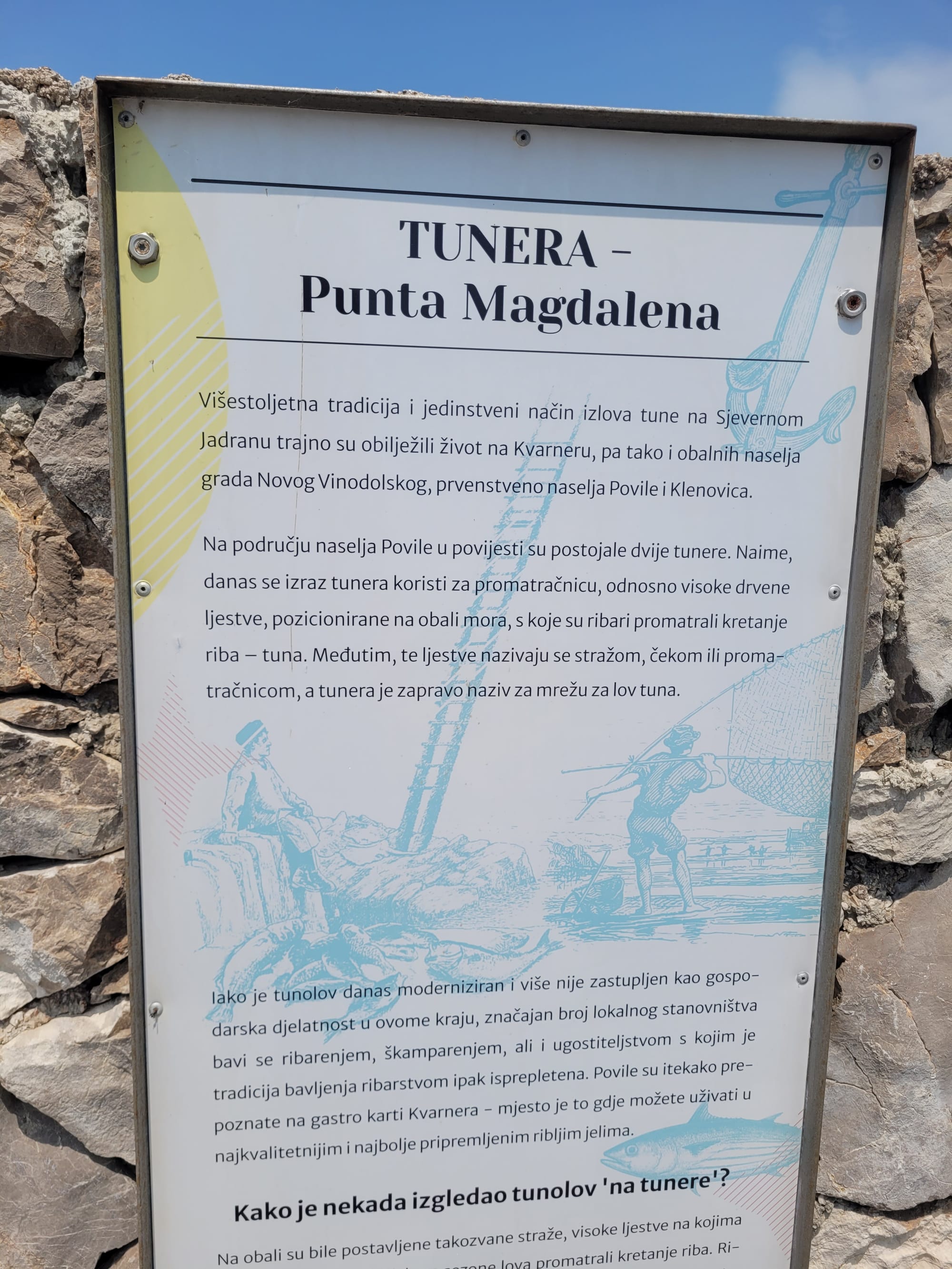 In den Felsen, auf dem Weg zur Leiter, entdecke ich ein Schild, das allerdings nur eine kroatische Beschreibung hat.