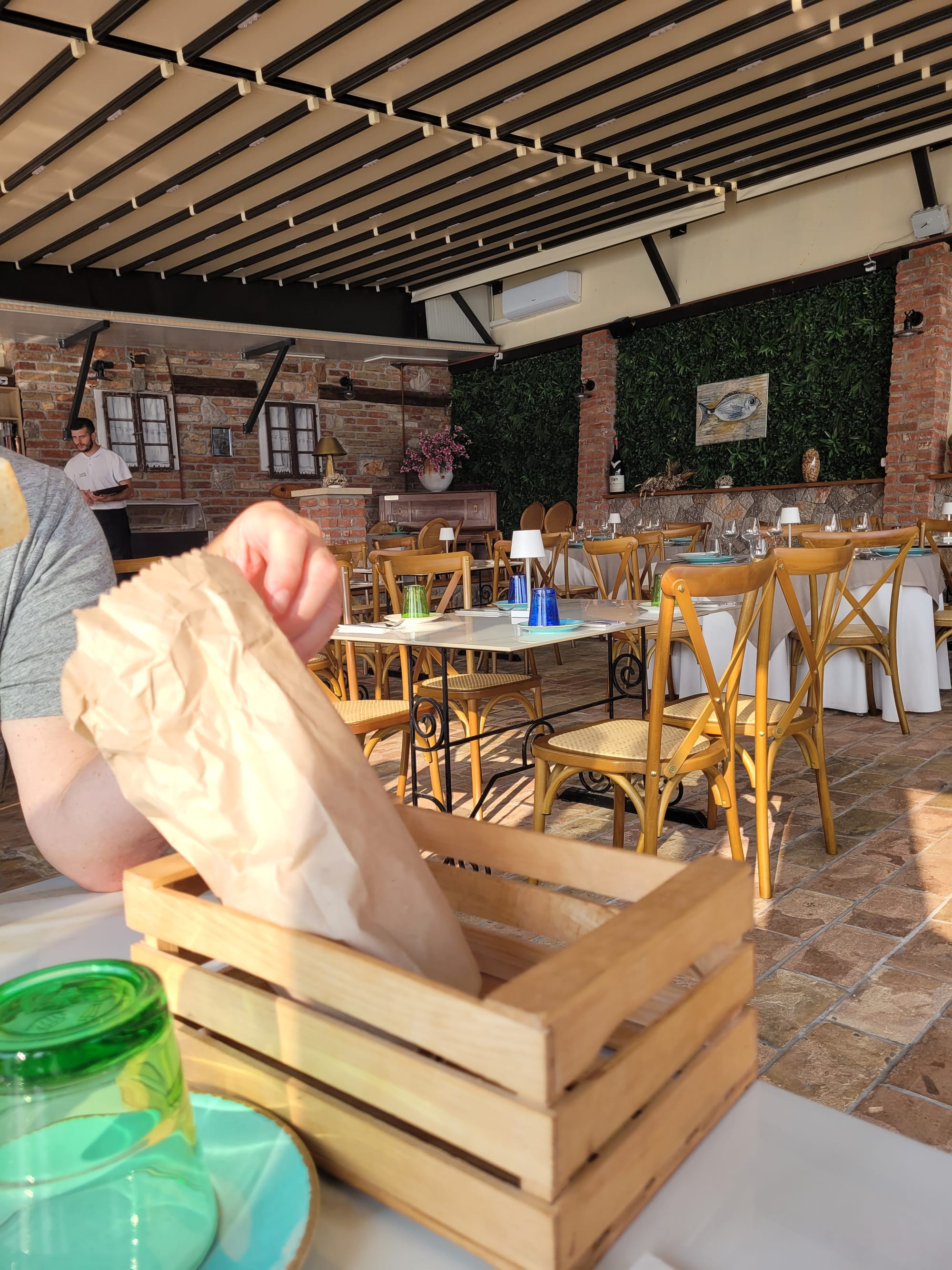 ... und die Bedienung ist total freundlich. Wir bekommen Brot über das gleich hergefallen wird.