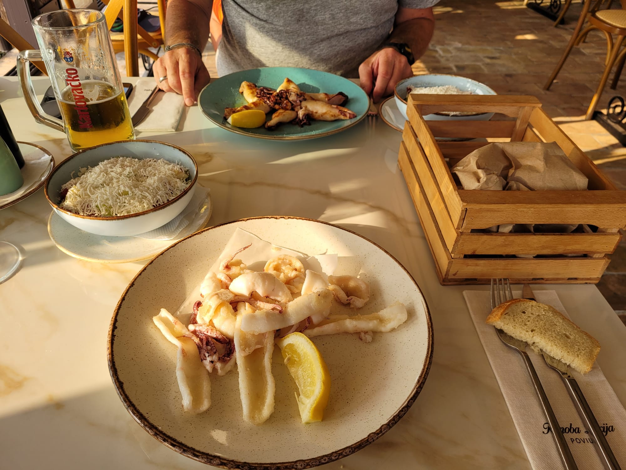 Bestellt werden gegrillte Calamari und Calamari mit Reismehl - beides köstlich.