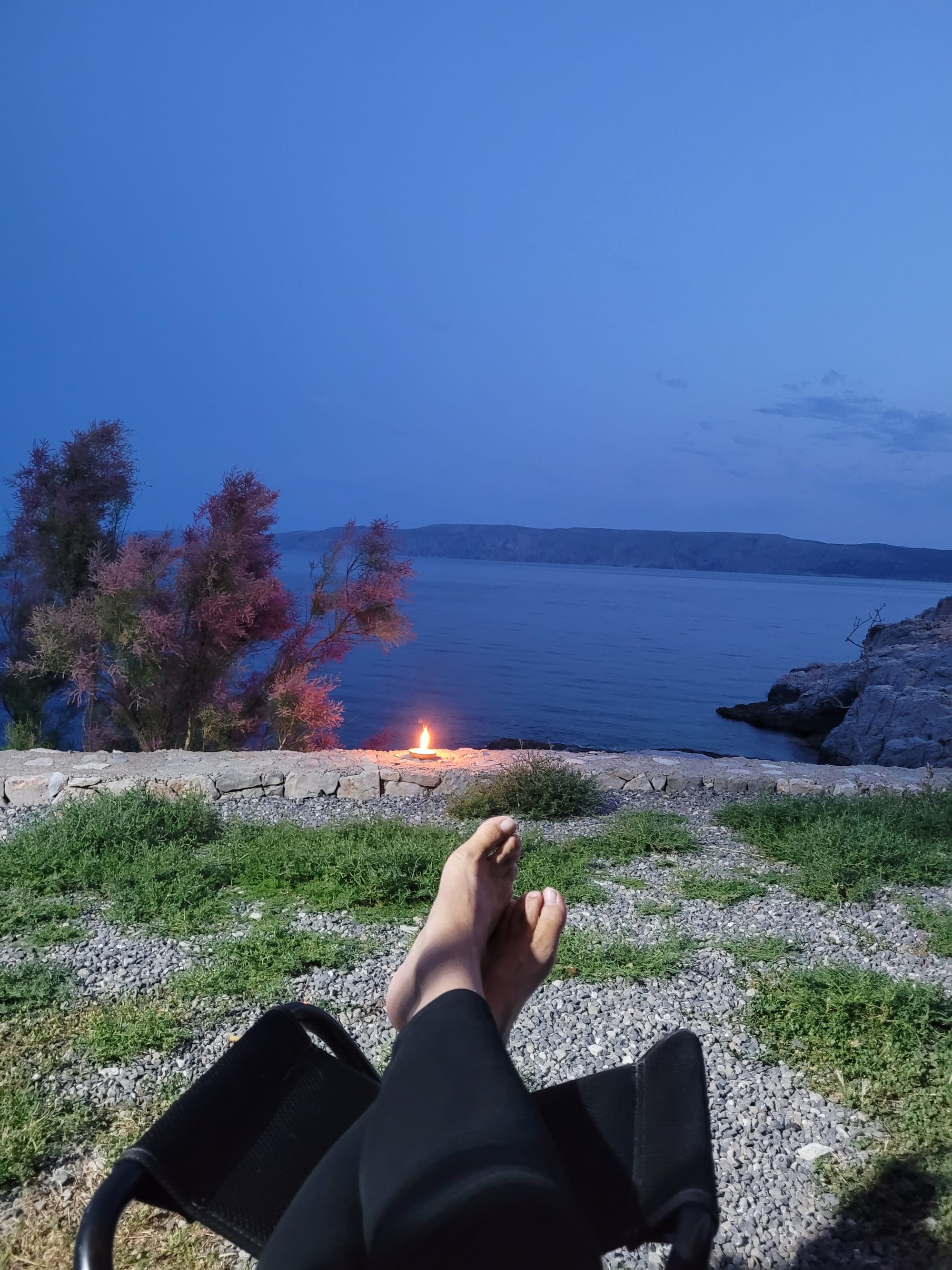 Auch heute sitzen wir noch länger bei Kerzenschein und Meeresrauschen im Freien.