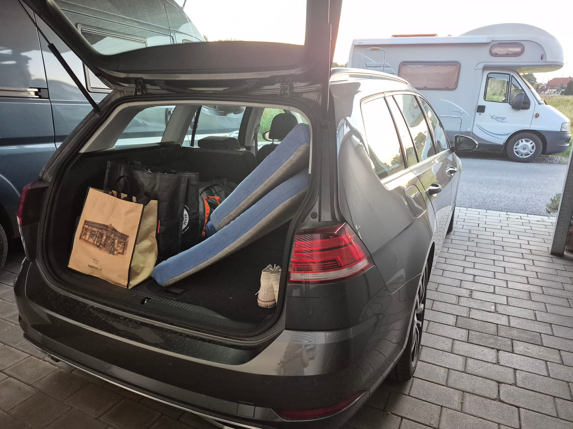 Der Golf ist voll bepackt.