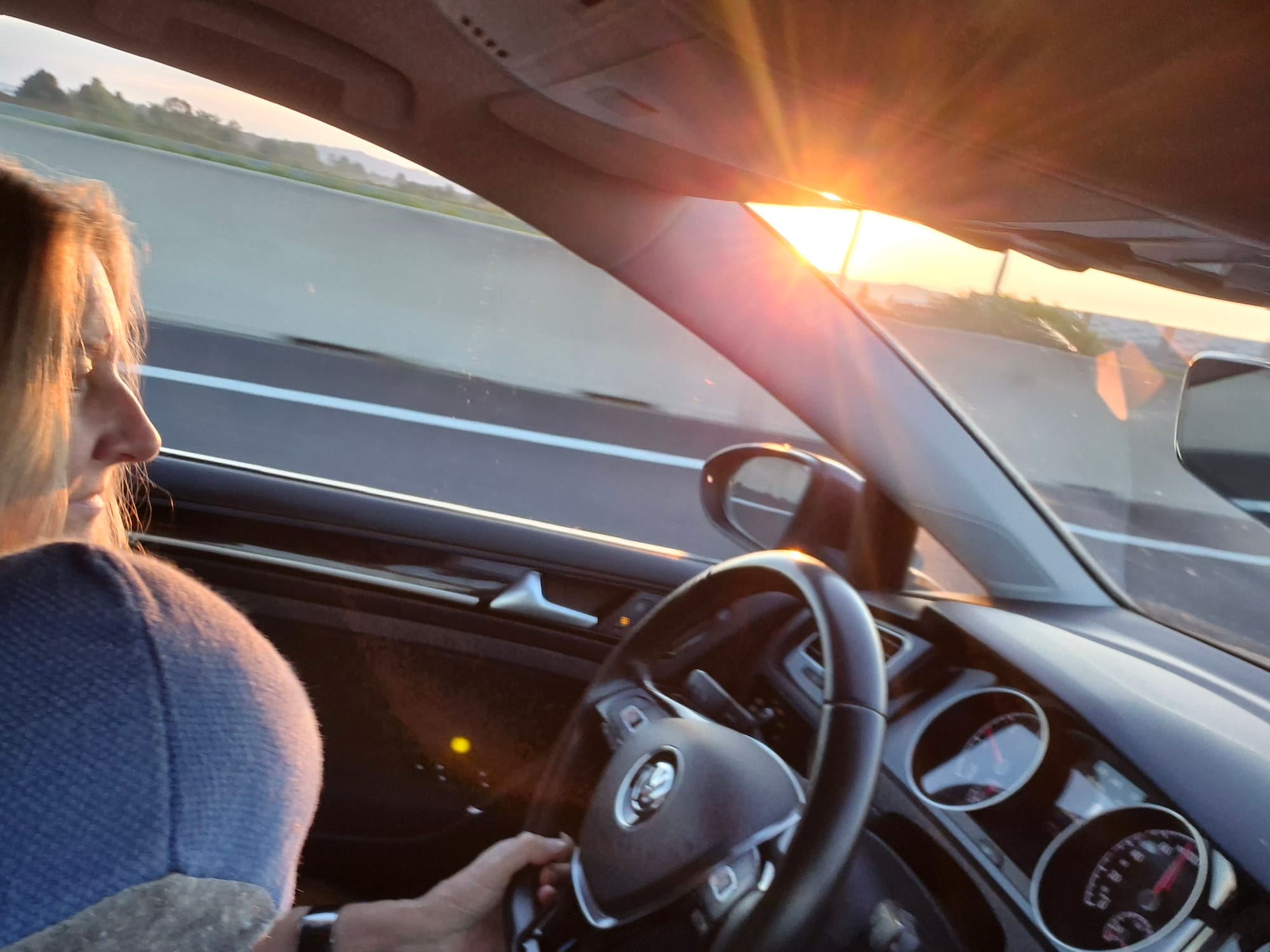 Die Sonne beim Aufgehen zu unserer Linken fahren wir zügig gen Süden.