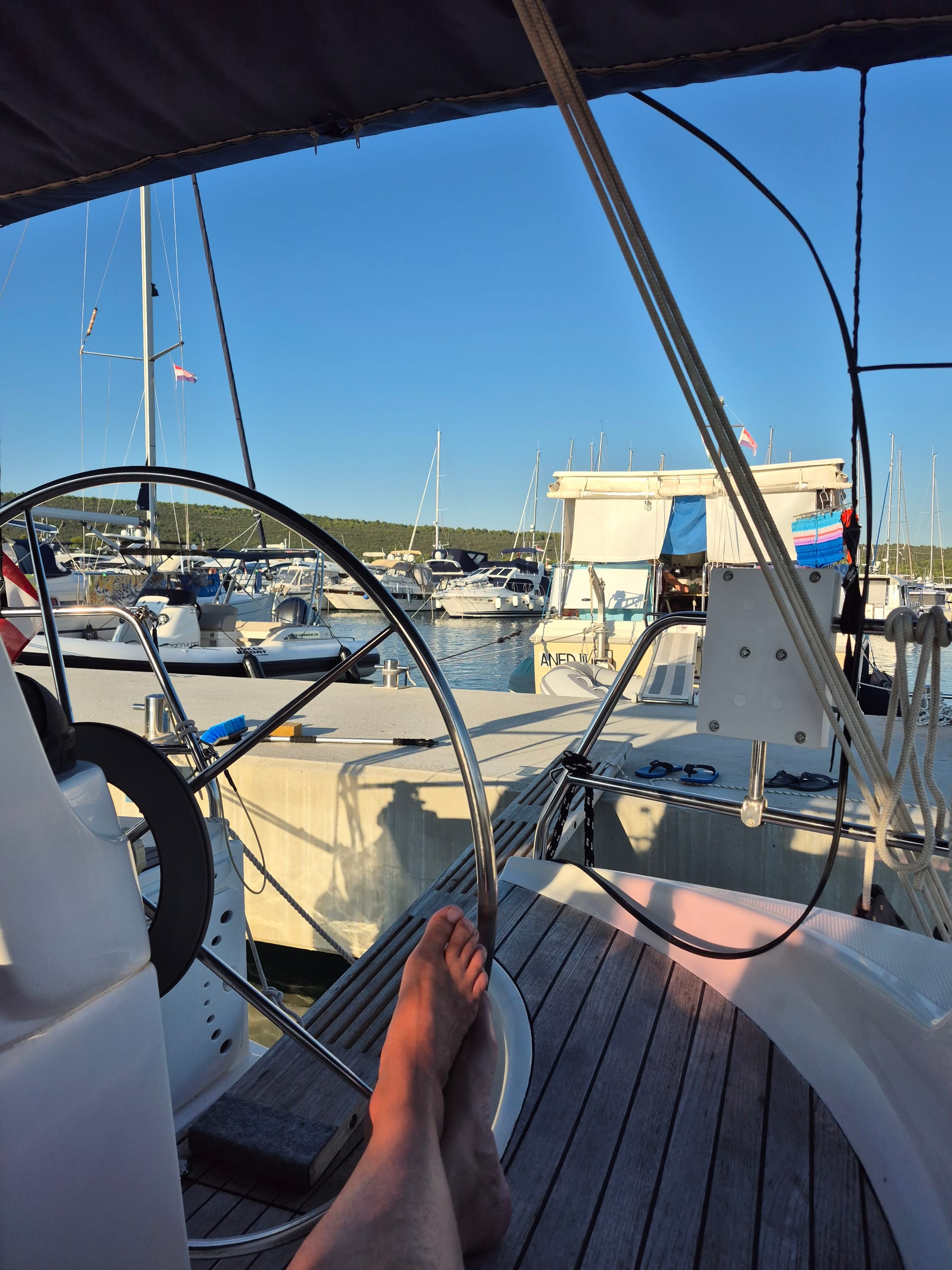 Andreas ist sehr fleißig gewesen und hat sich darauf eingestellt, dass wir am Nachmittag gleich einmal ablegen. Wir beschließen dann aber doch heute noch hier in der Marina zu chillen und morgen in der Früh auszufahren.