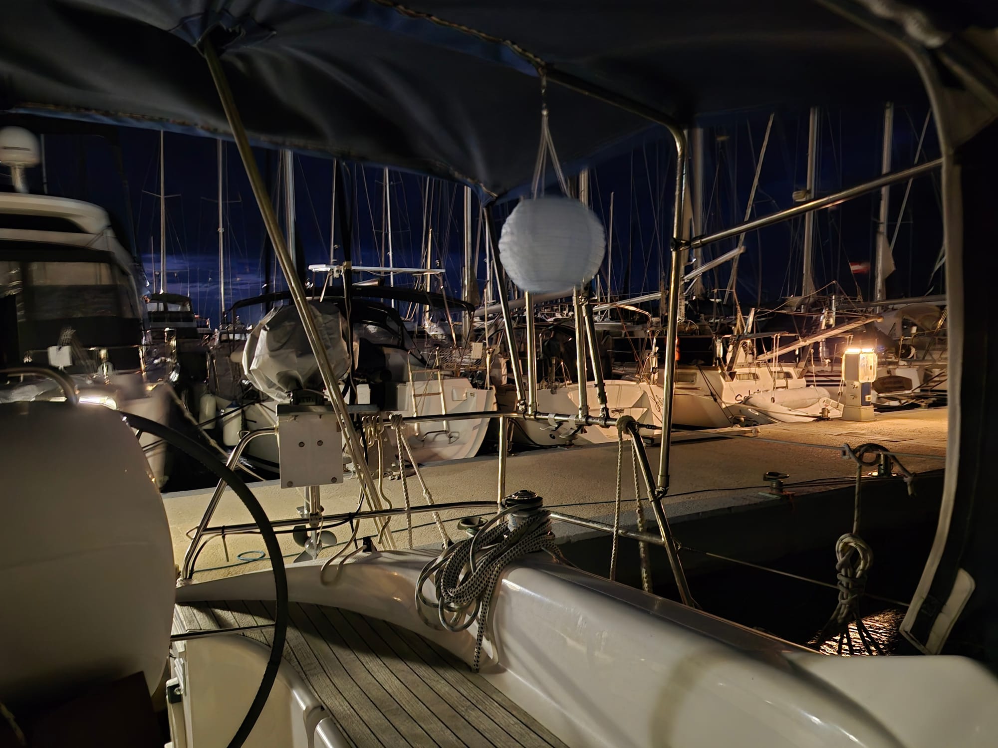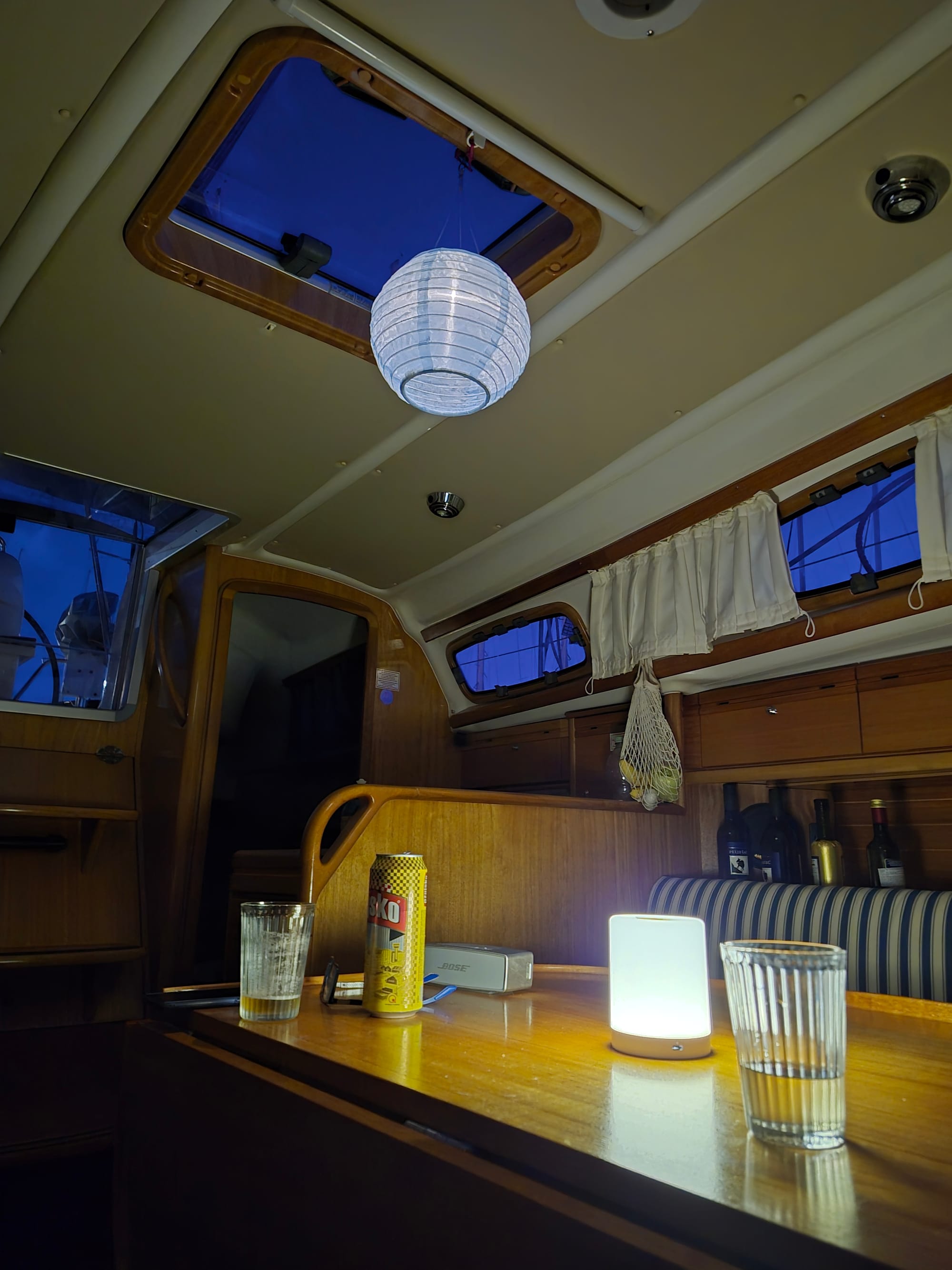 In der Nacht wird der Wind immer stärker und um 6:00 wachen wir auf und checken die Lage draußen: ich entdecke, dass ich meinen Lampion an Deck vergessen habe und rette ihn...