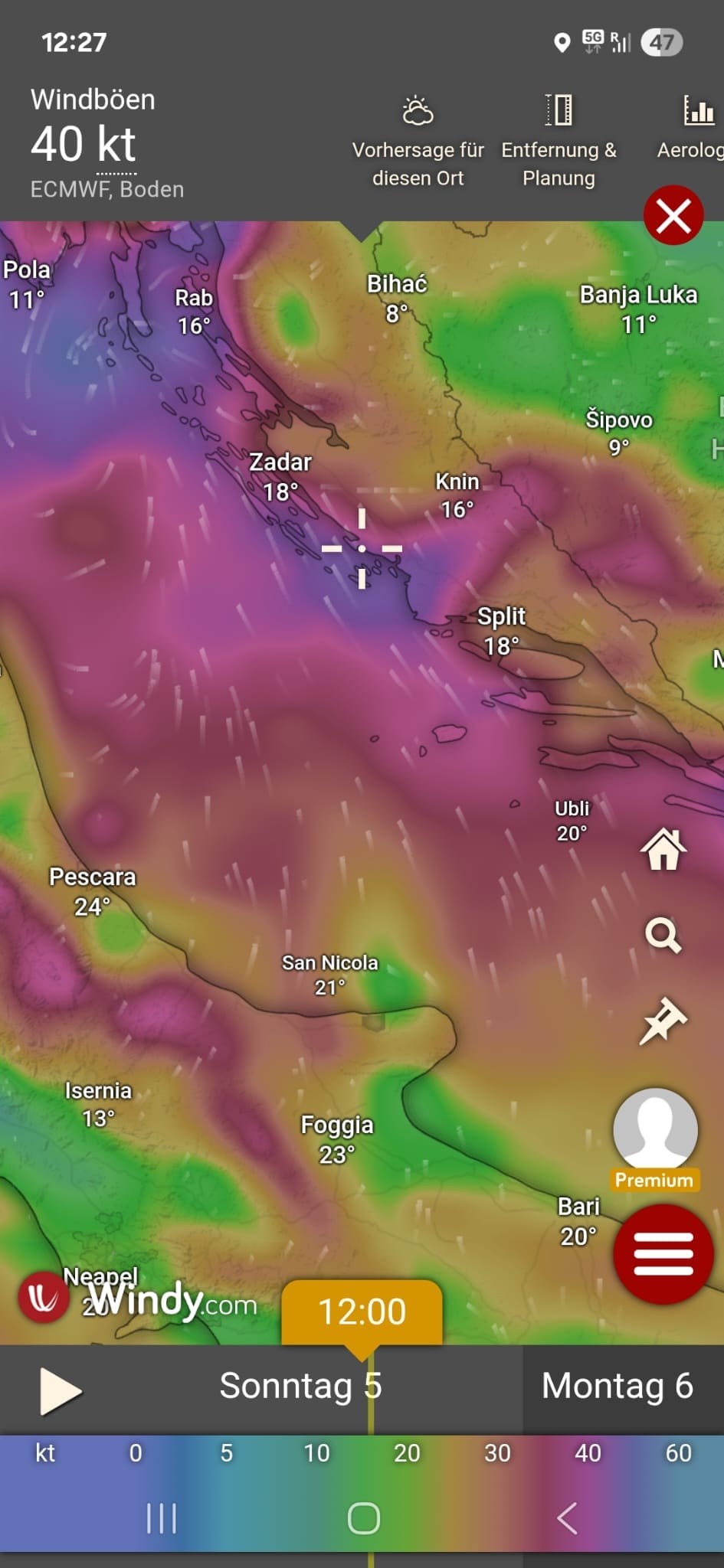 Wir checken den Wetterbericht: Wind ist wie angesagt sehr heftig.