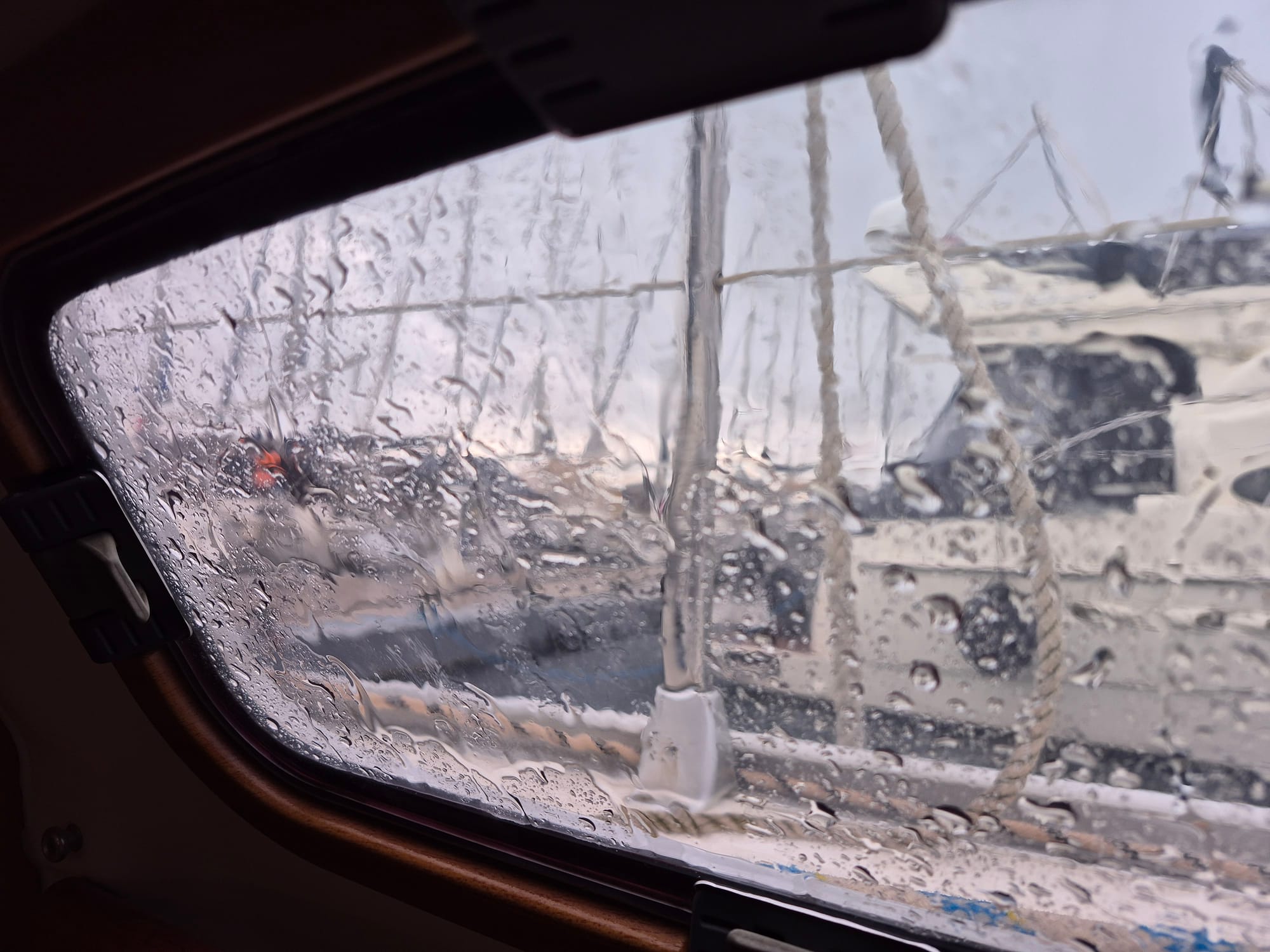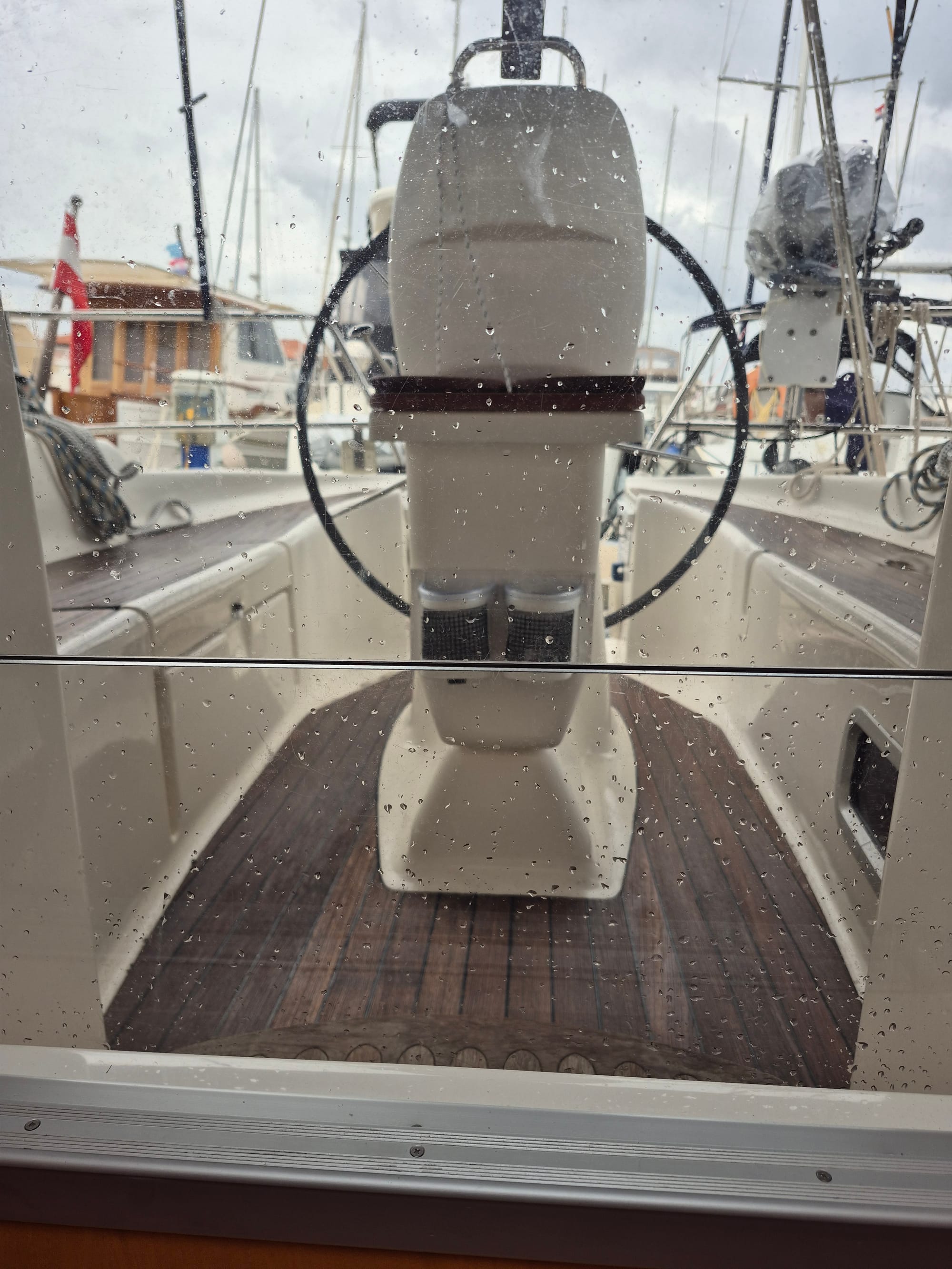 Für uns ok. Bei angenehmen Regenprasseln entspannen wir unter Deck und lassen es uns gutgehen.