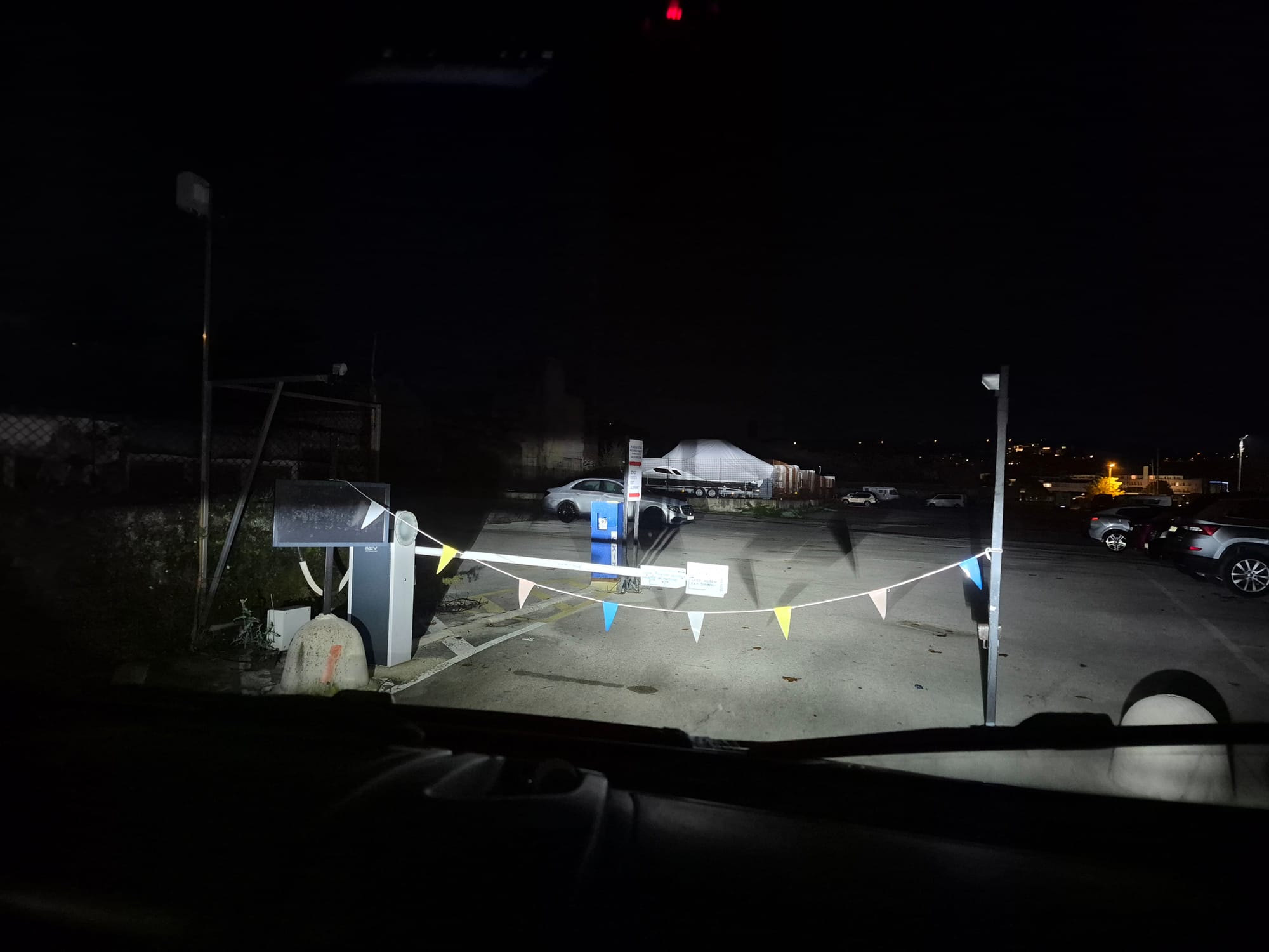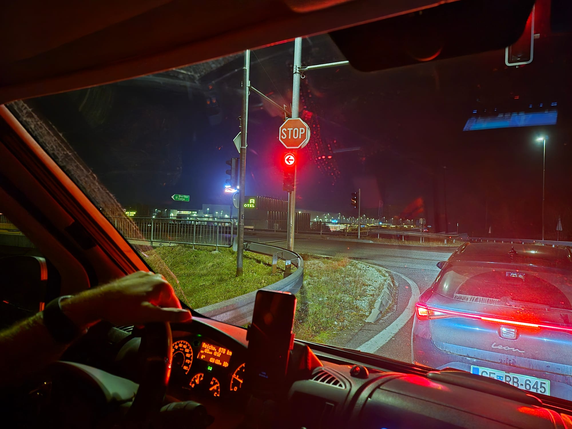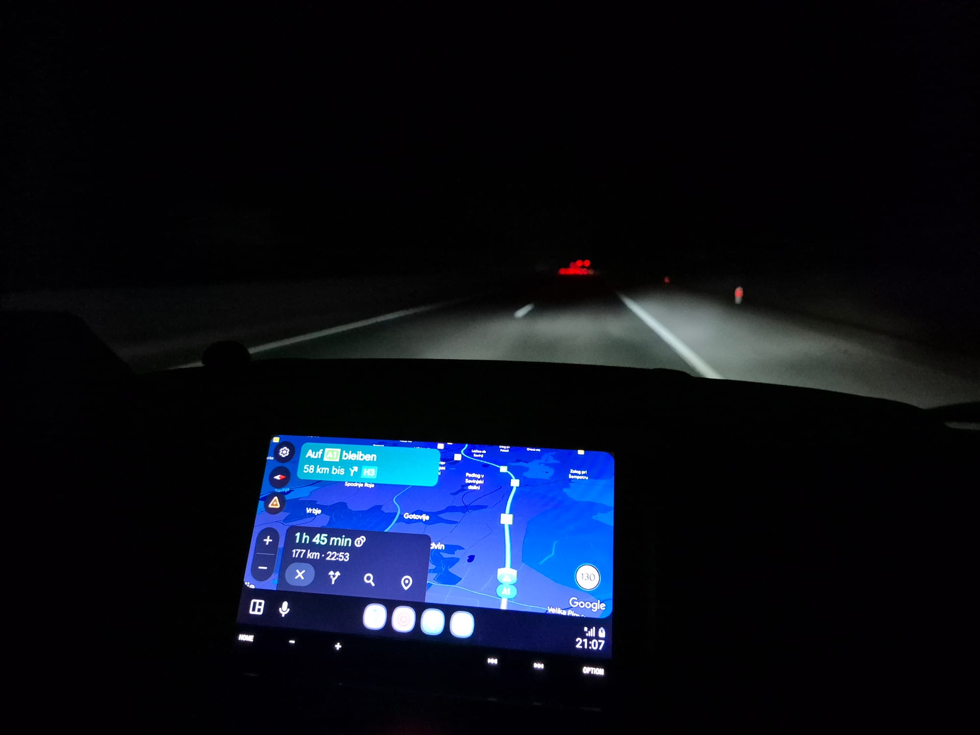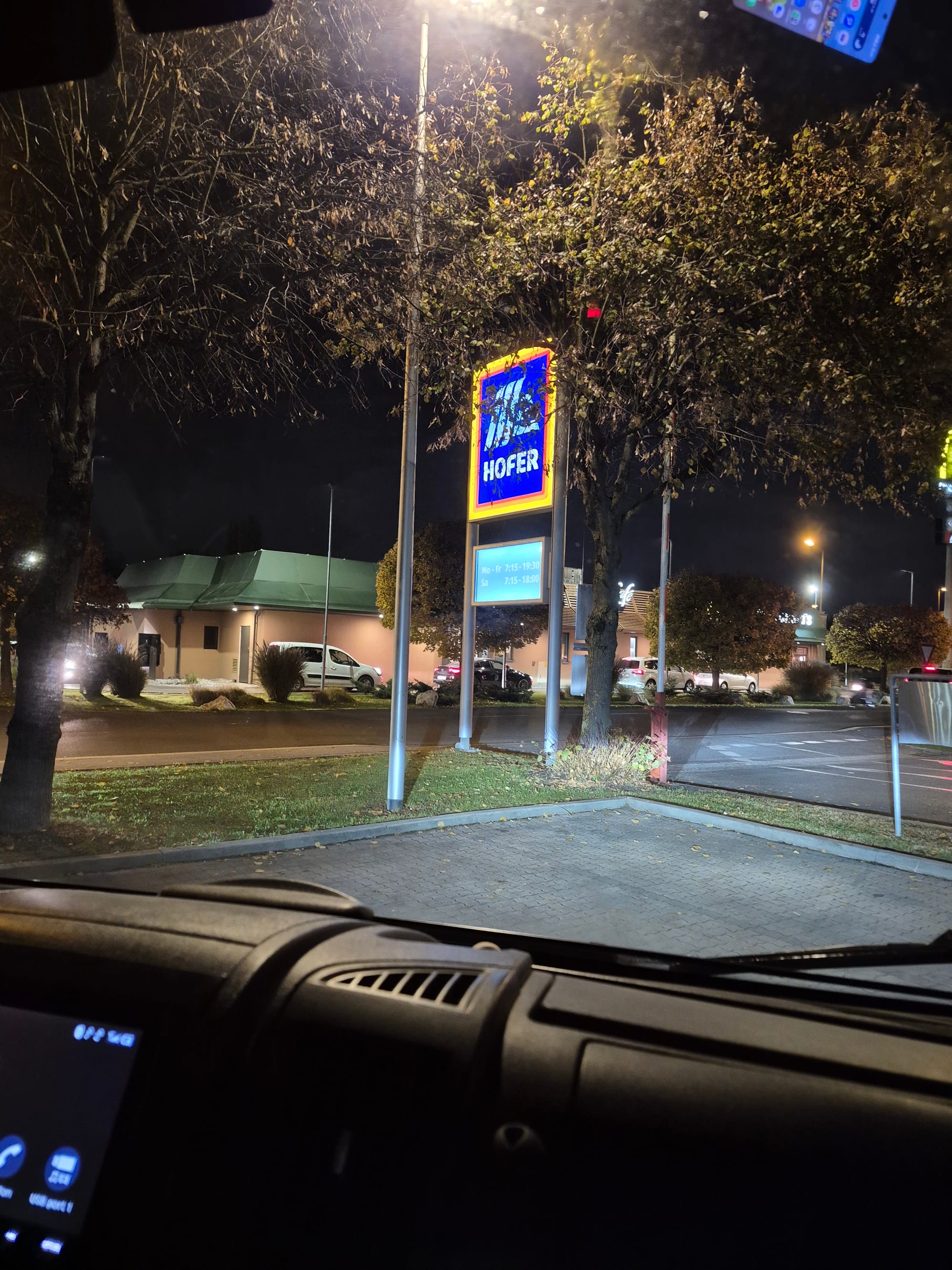 Vor der Abfahrt kaufen wir noch schnell bei unserem Hofer ein. Es ist 19:00 und schon stockfinster.