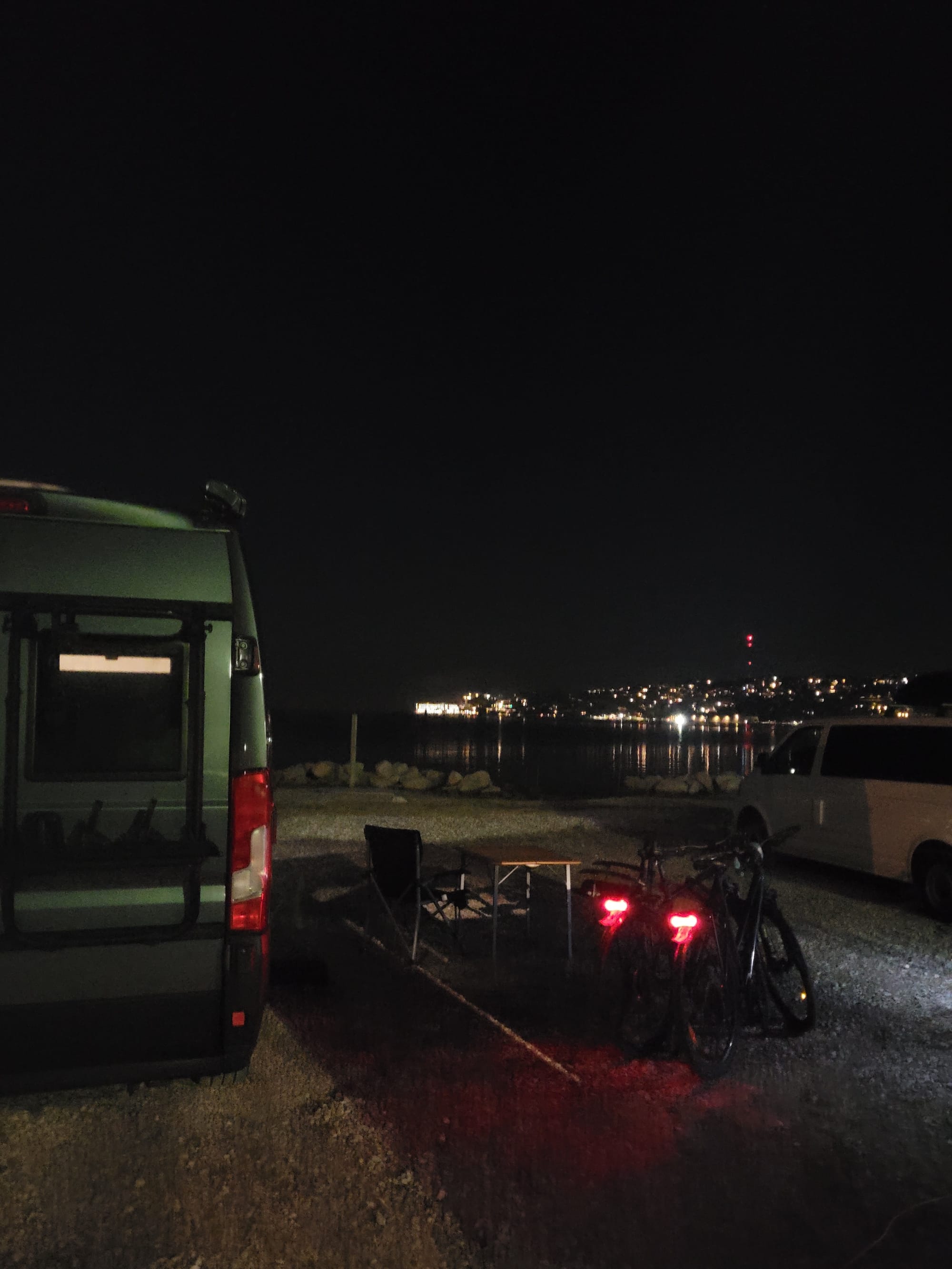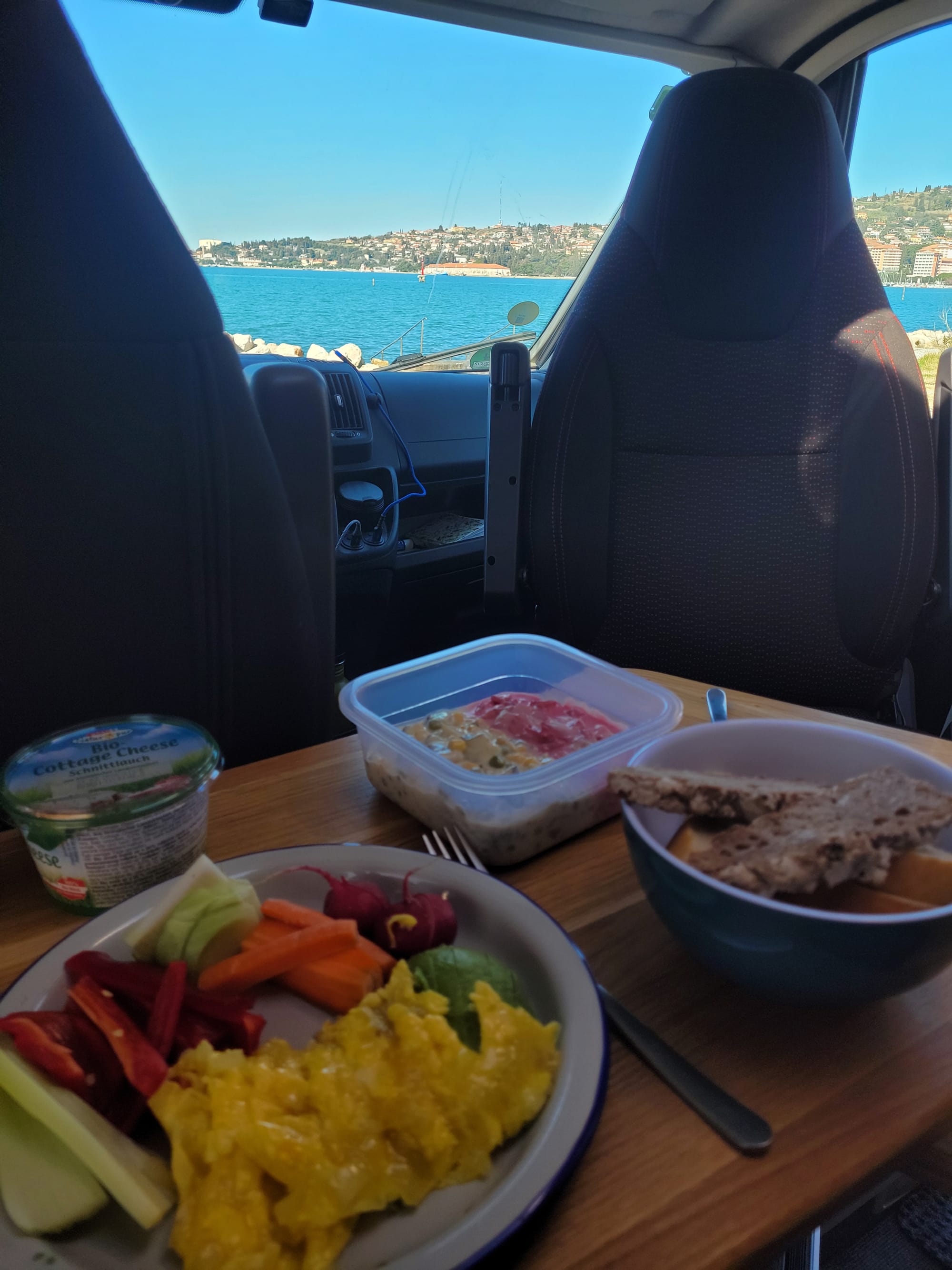 Das ist allerdings schon beim Aufbruch, wo wir beim Parkautomaten stehen. Hier hält uns zur Zeit nichts, nach unserem Morgenkaffee machen wir uns gleich weiter auf den Weg nach Portorož.