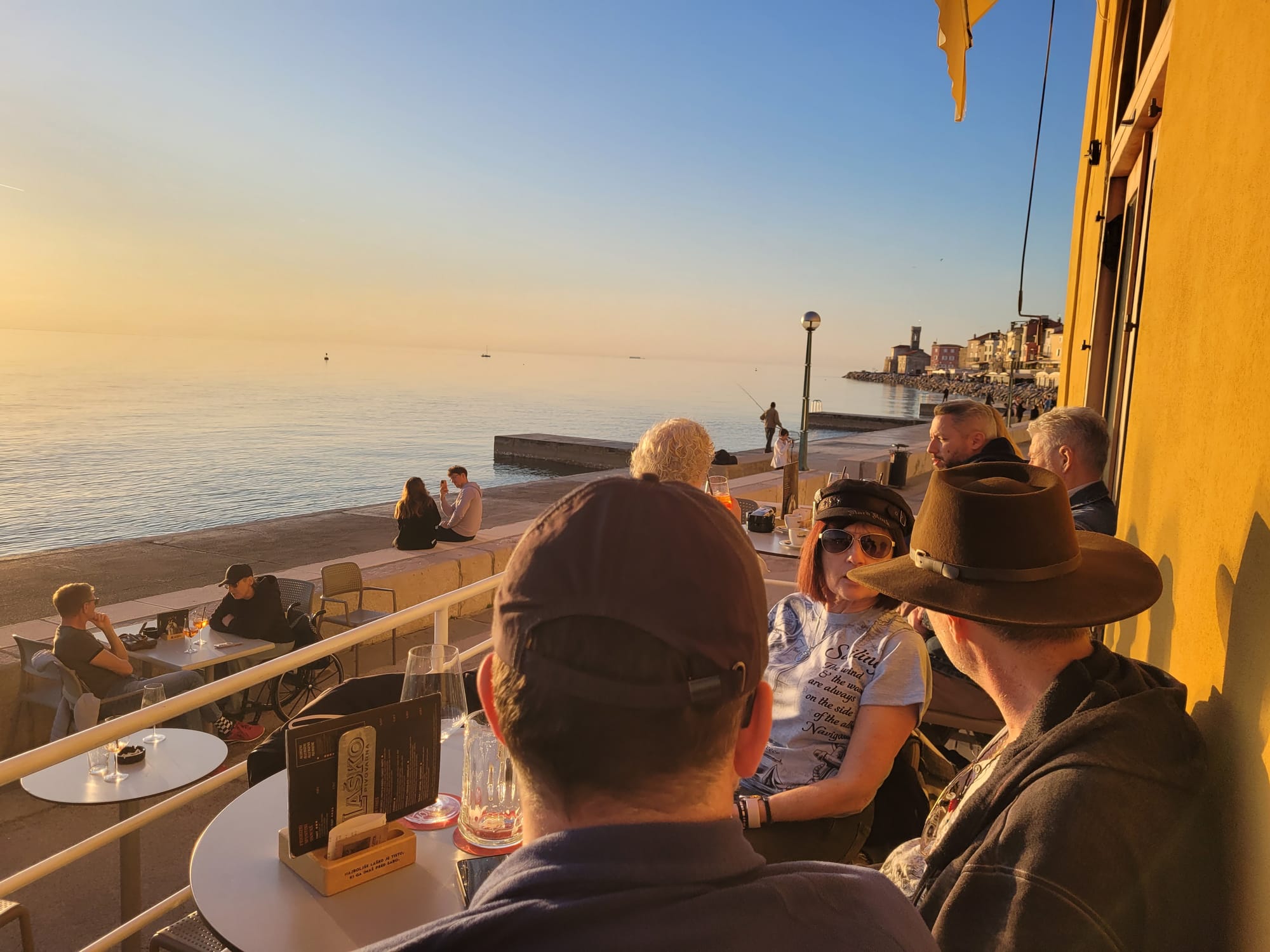 Wir genießen unseren Erste-Reihe-Platz mit Blick aufs Meer und Piran, und lassen den Abend im Luigi ausklingen.