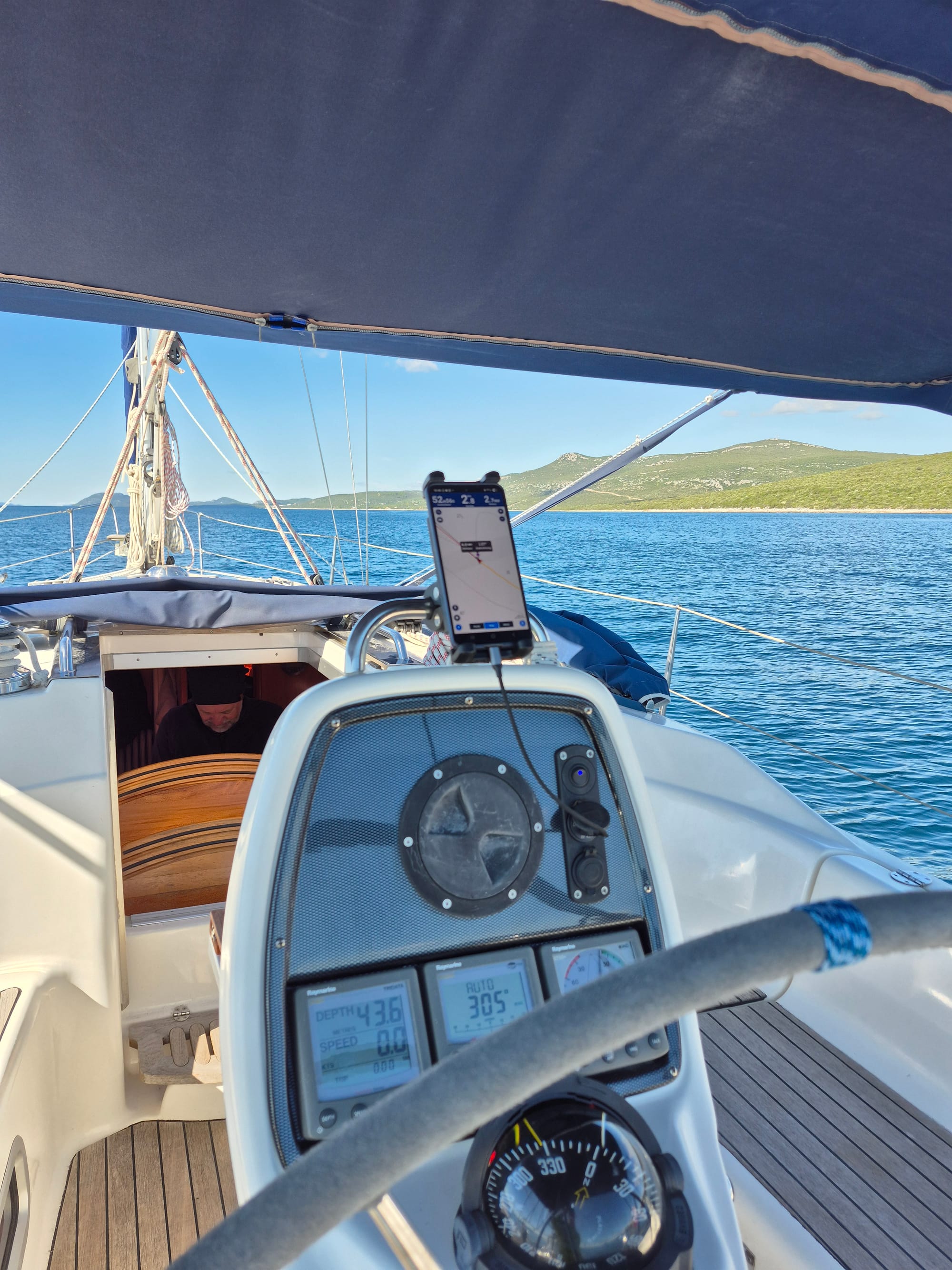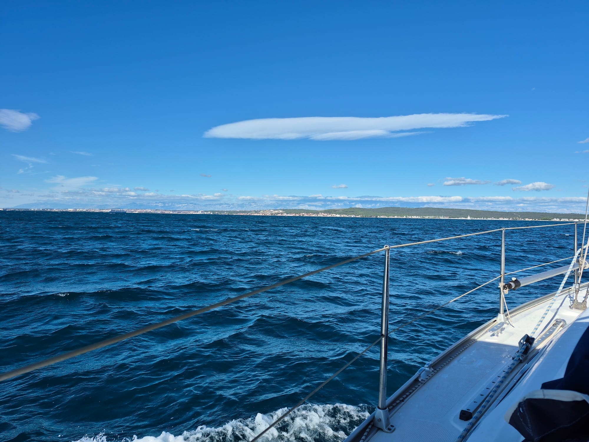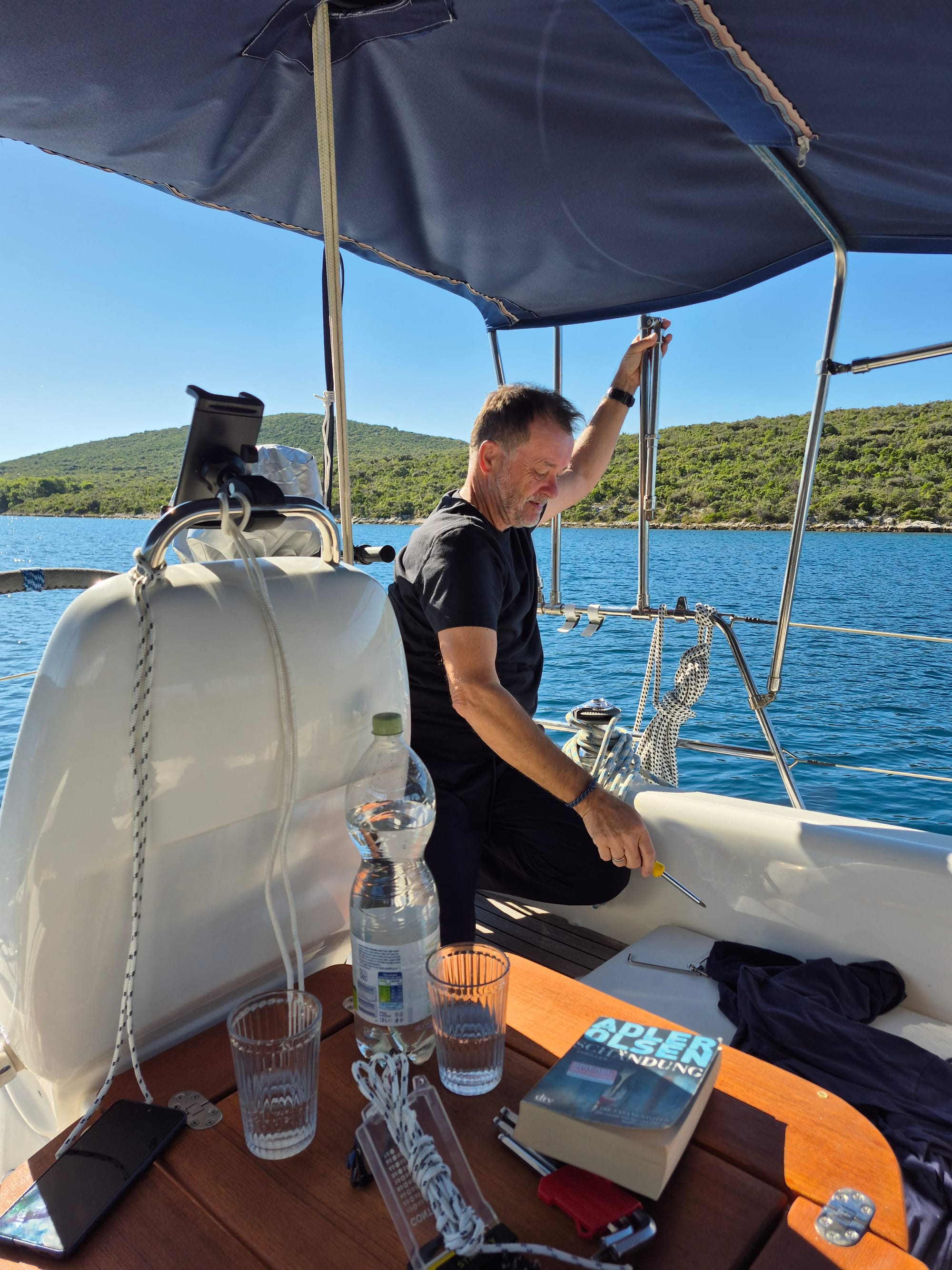 Gegen 13:00 packen wir dann doch zusammen und machen uns auf den Weg nach Sukošan. Heute, so wie angesagt, gibt es keinen Wind und wir motoren.