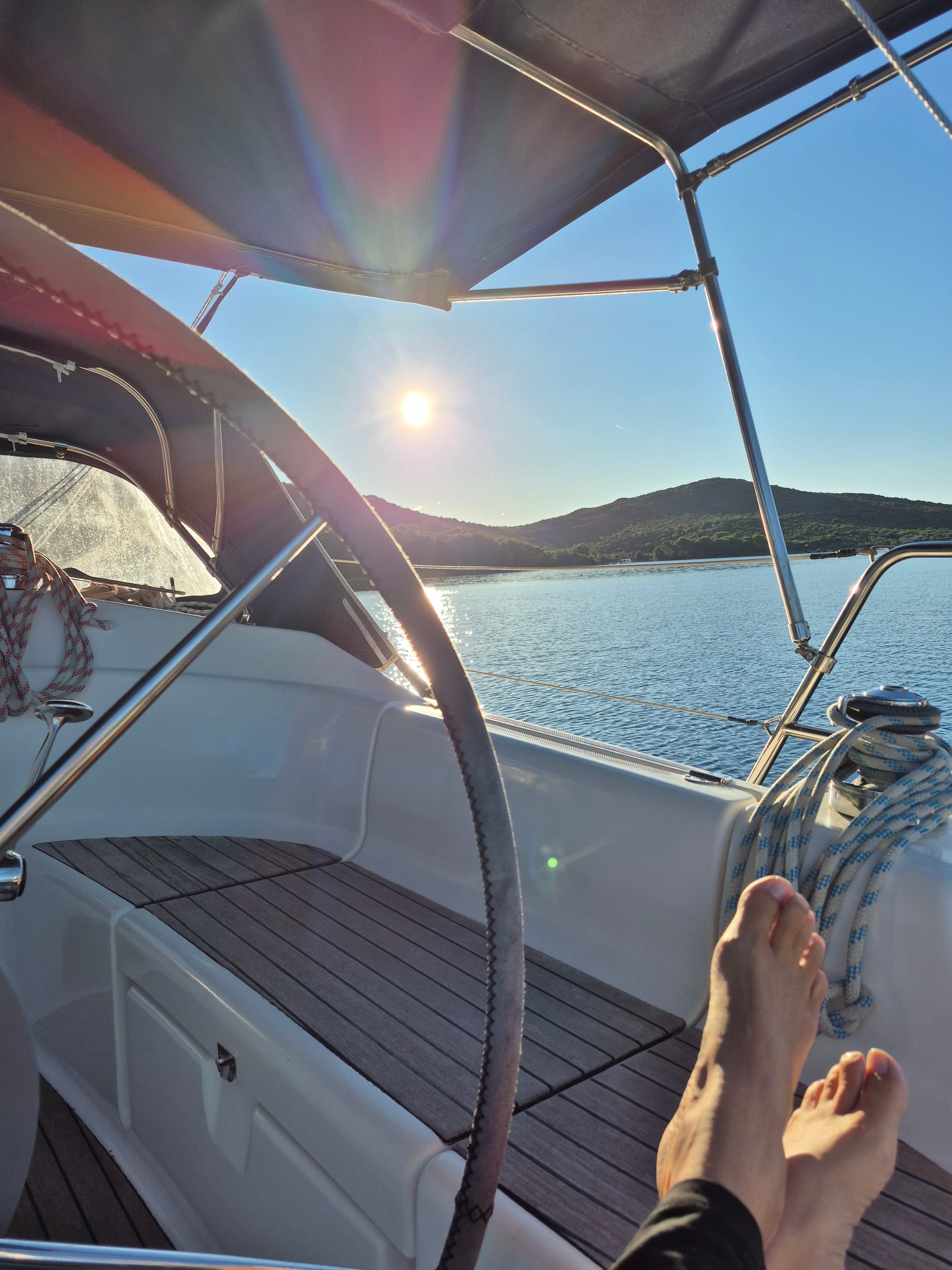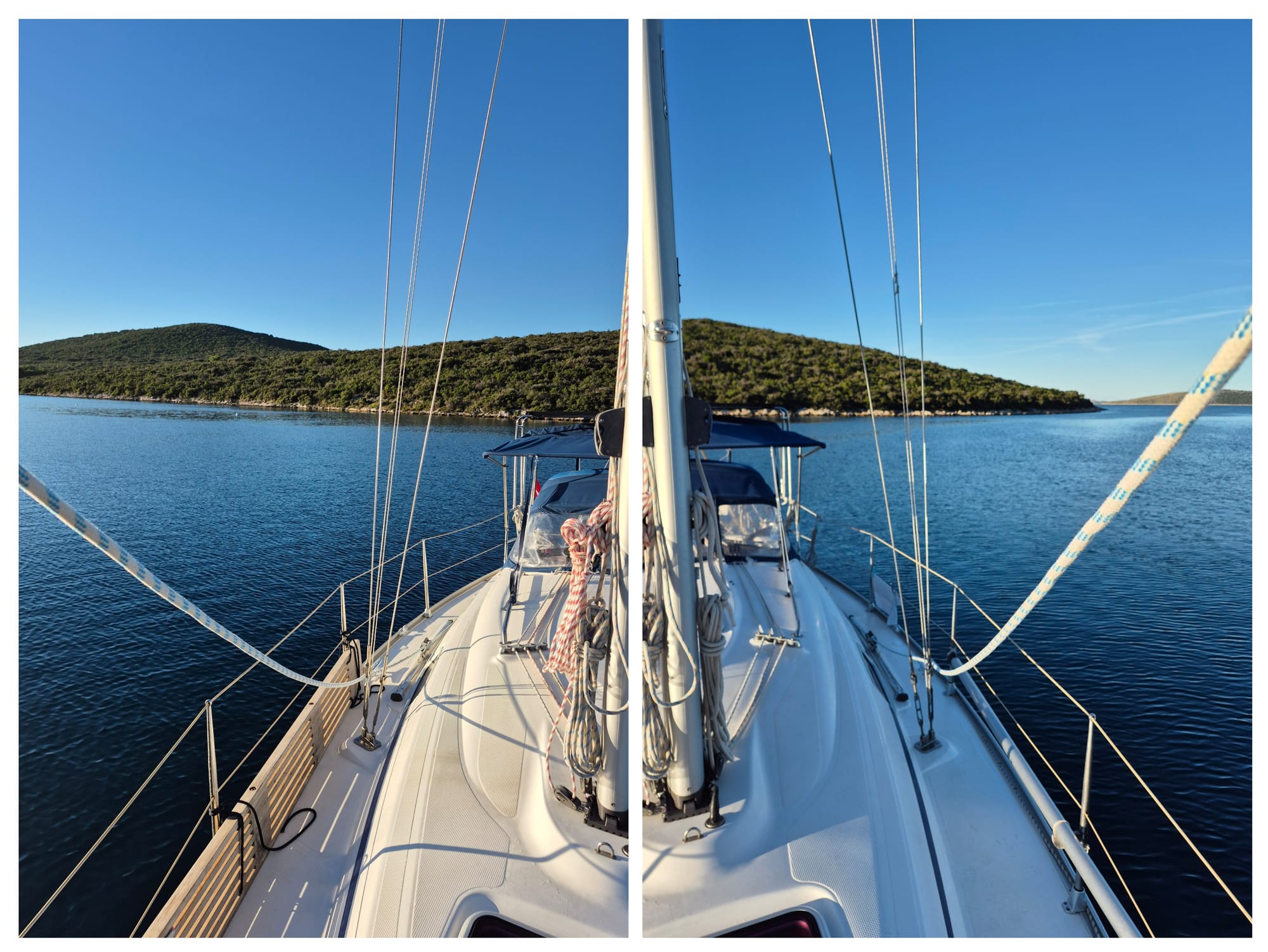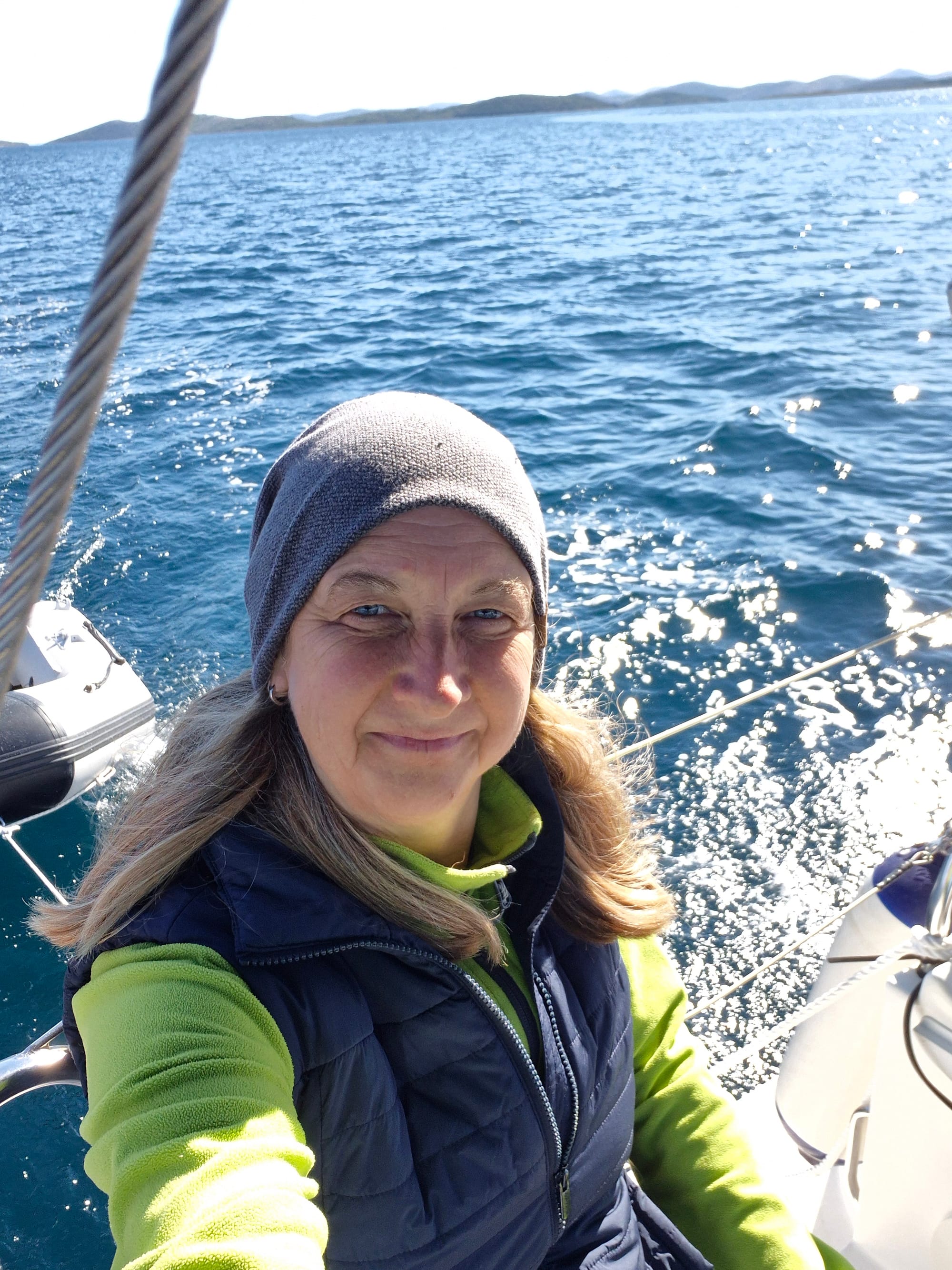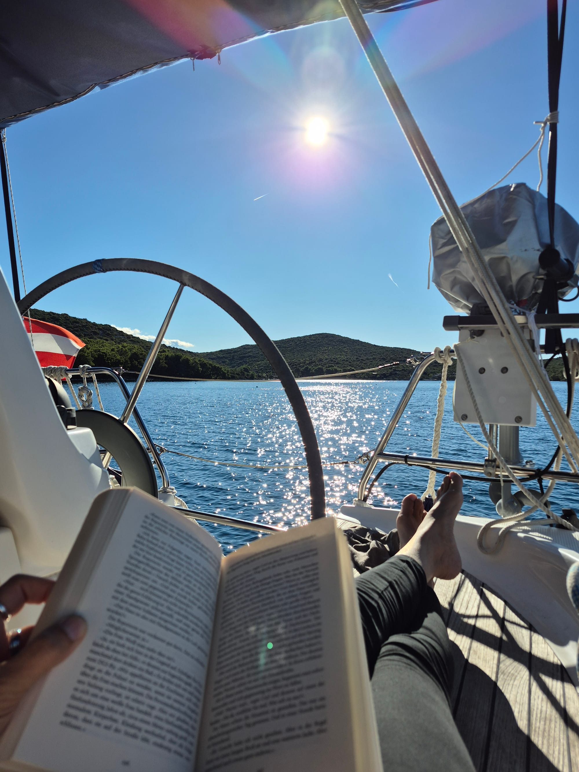 Gegen 13:00 packen wir dann doch zusammen und machen uns auf den Weg nach Sukošan. Heute, so wie angesagt, gibt es keinen Wind und wir motoren.