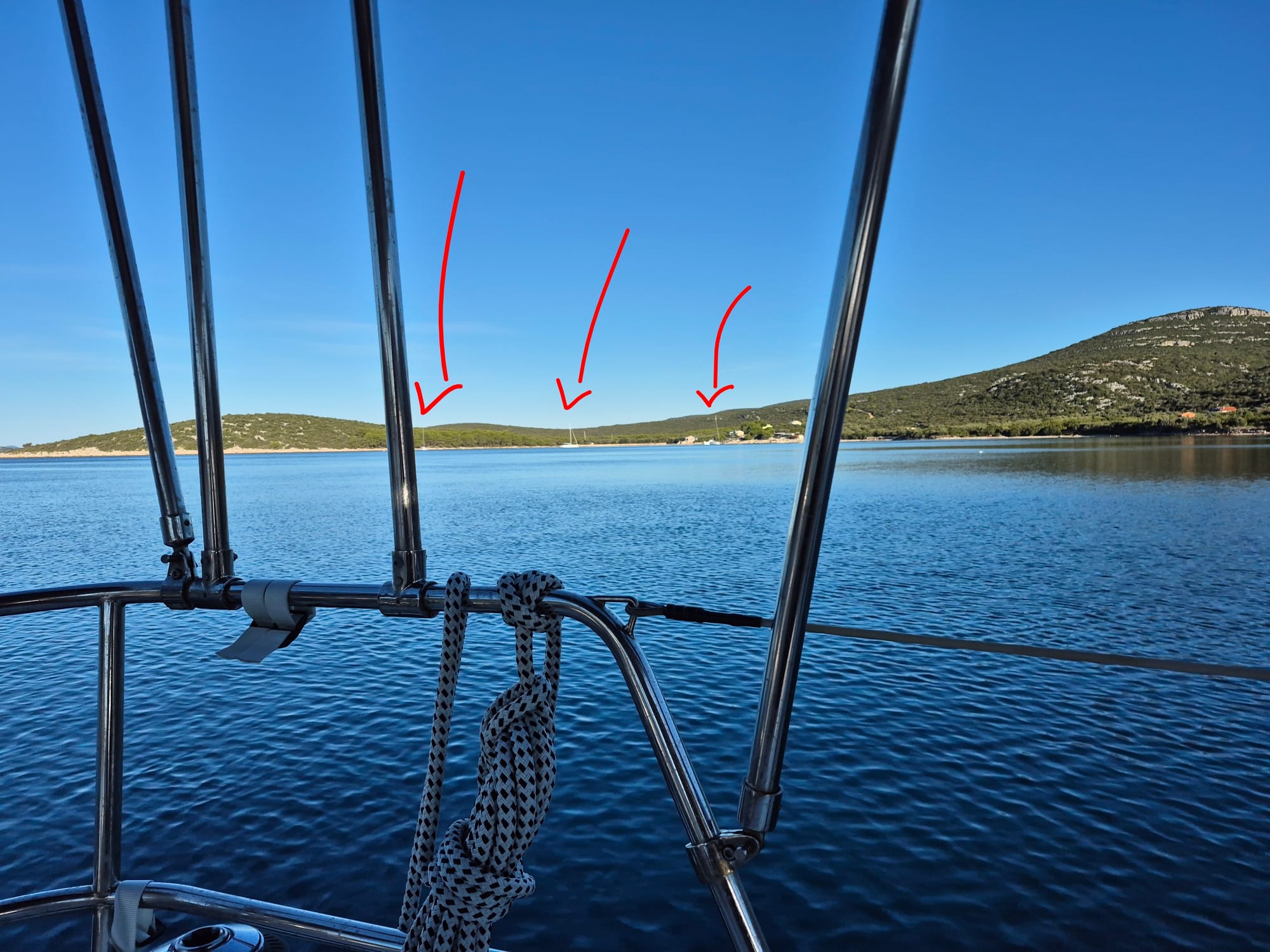 Wir fahren die Küste von Pašman entlang und notieren uns geistig Ankerbuchten für das nächste Mal.