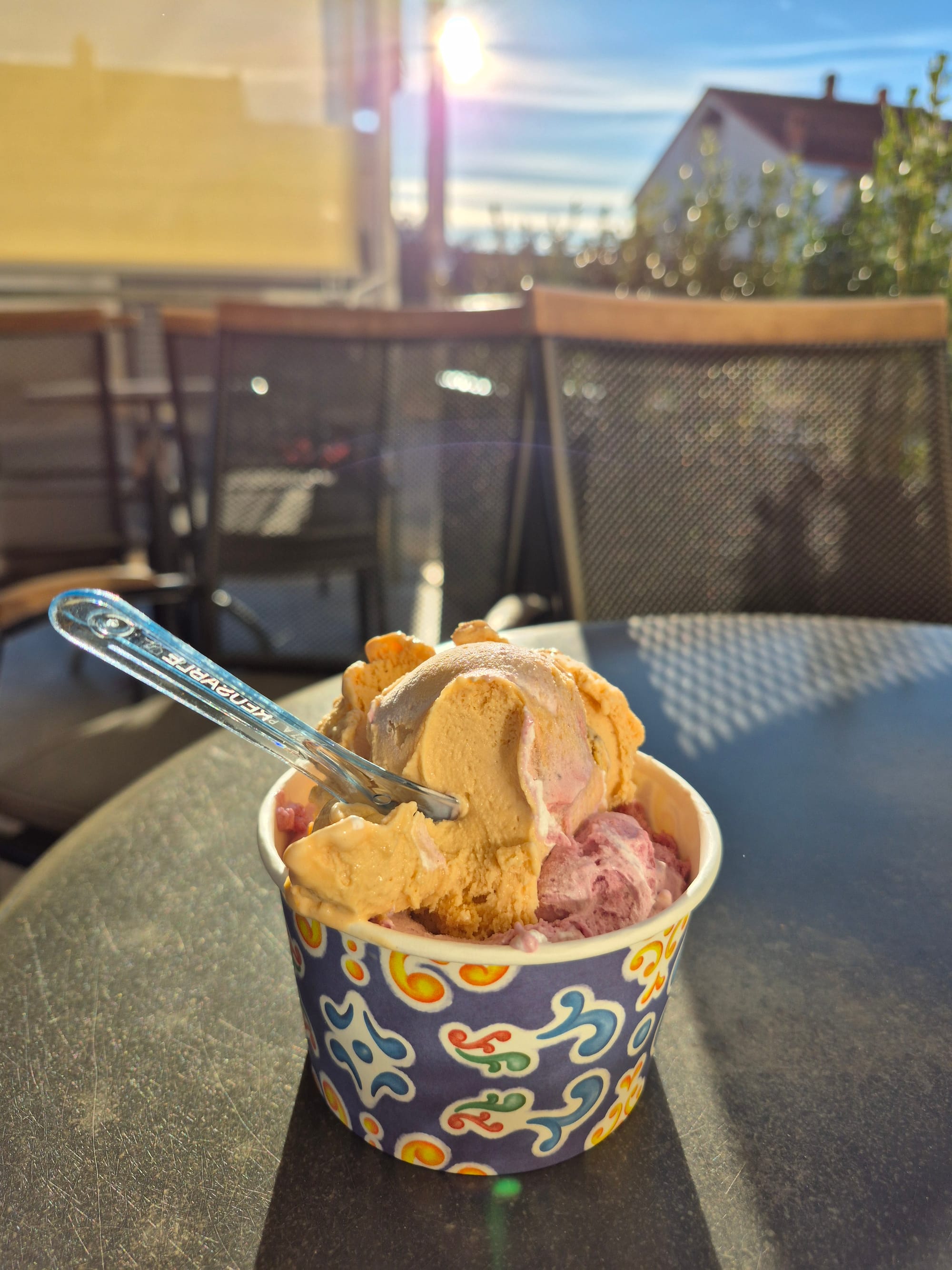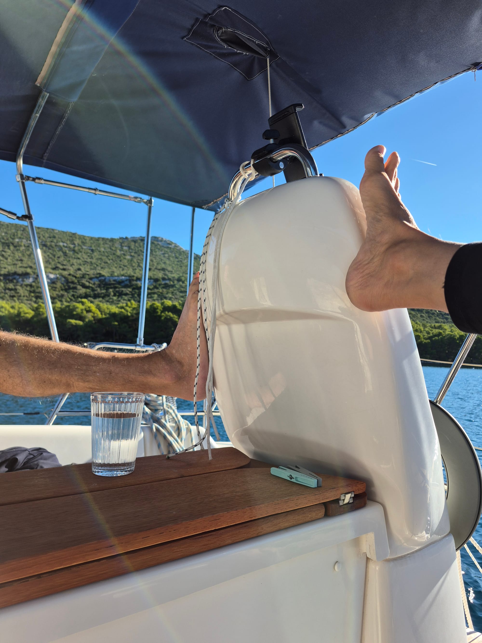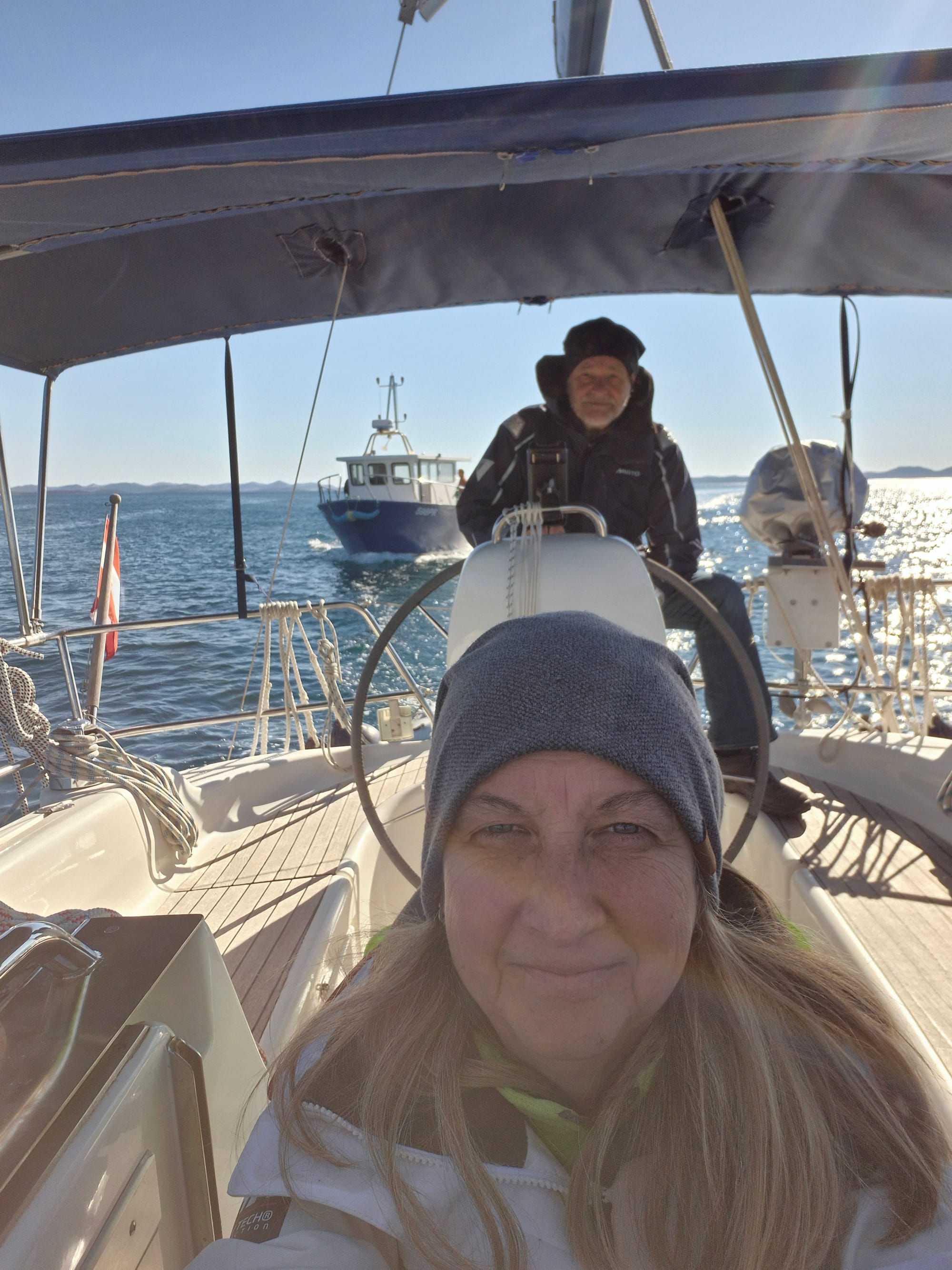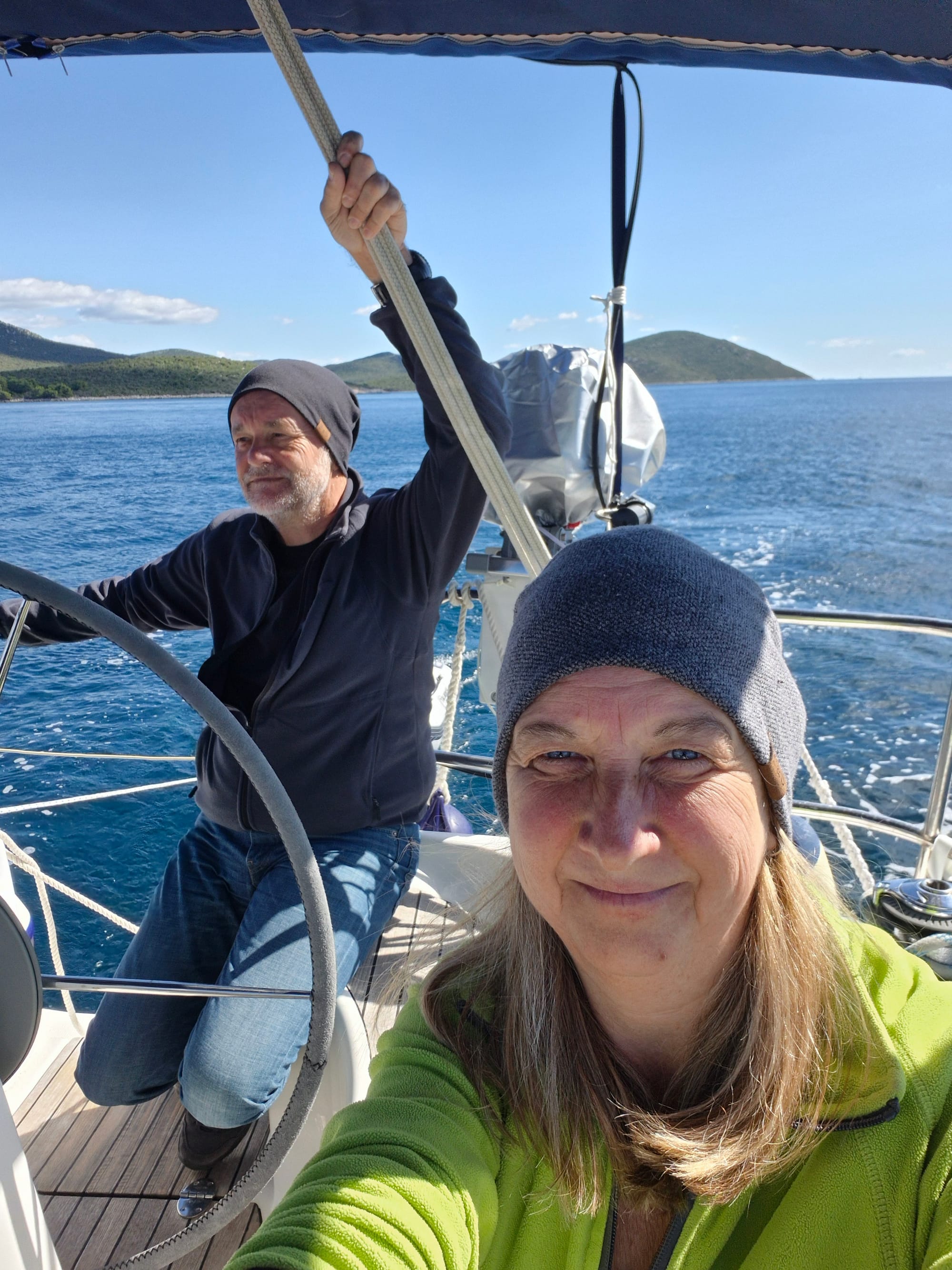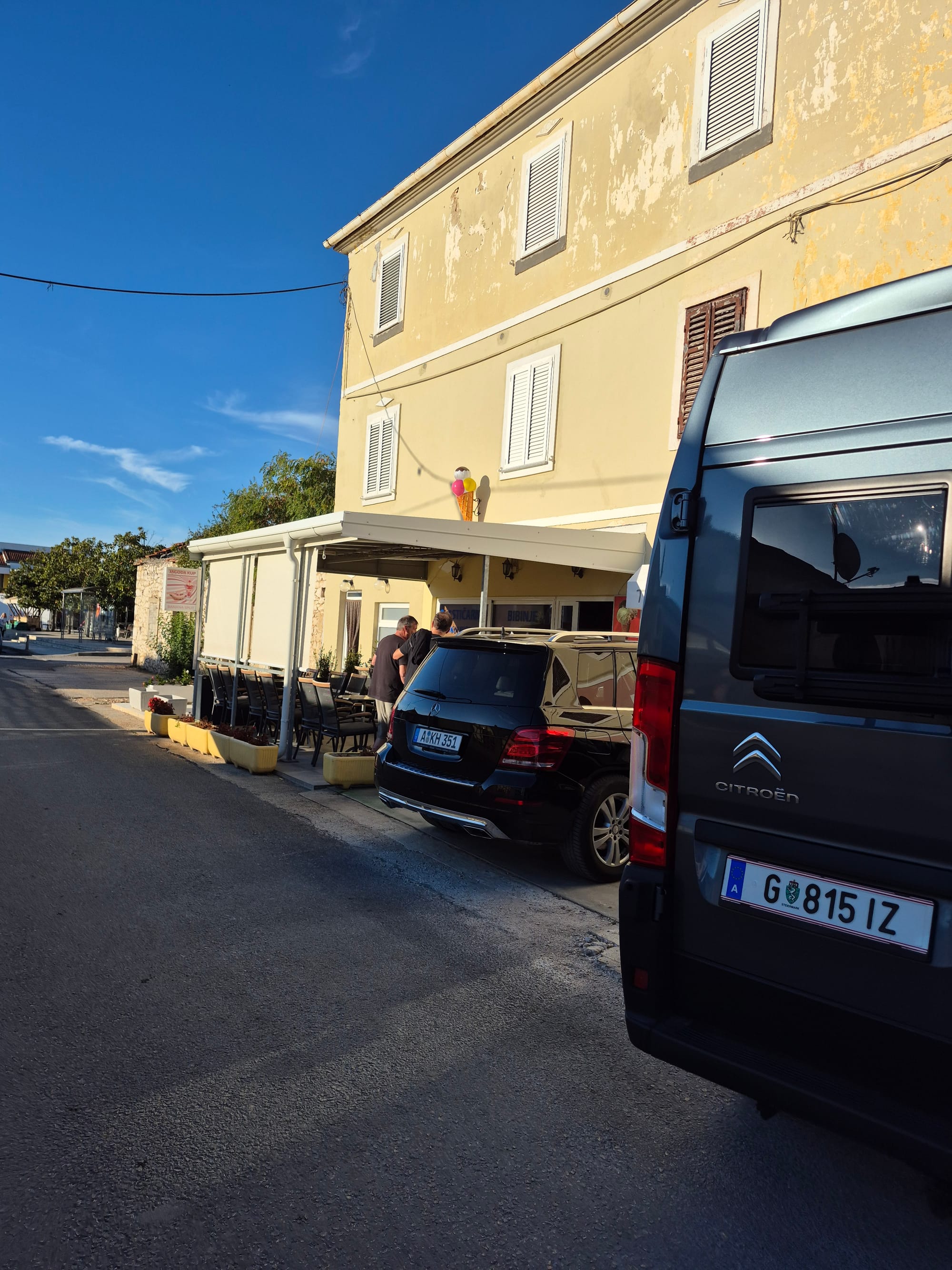 Wir setzen uns gerade an Deck um auszurasten und anzukommen, da begrüßt uns Karl und meint, ob wir mitfahren nach Bibinje zum Eisessen.