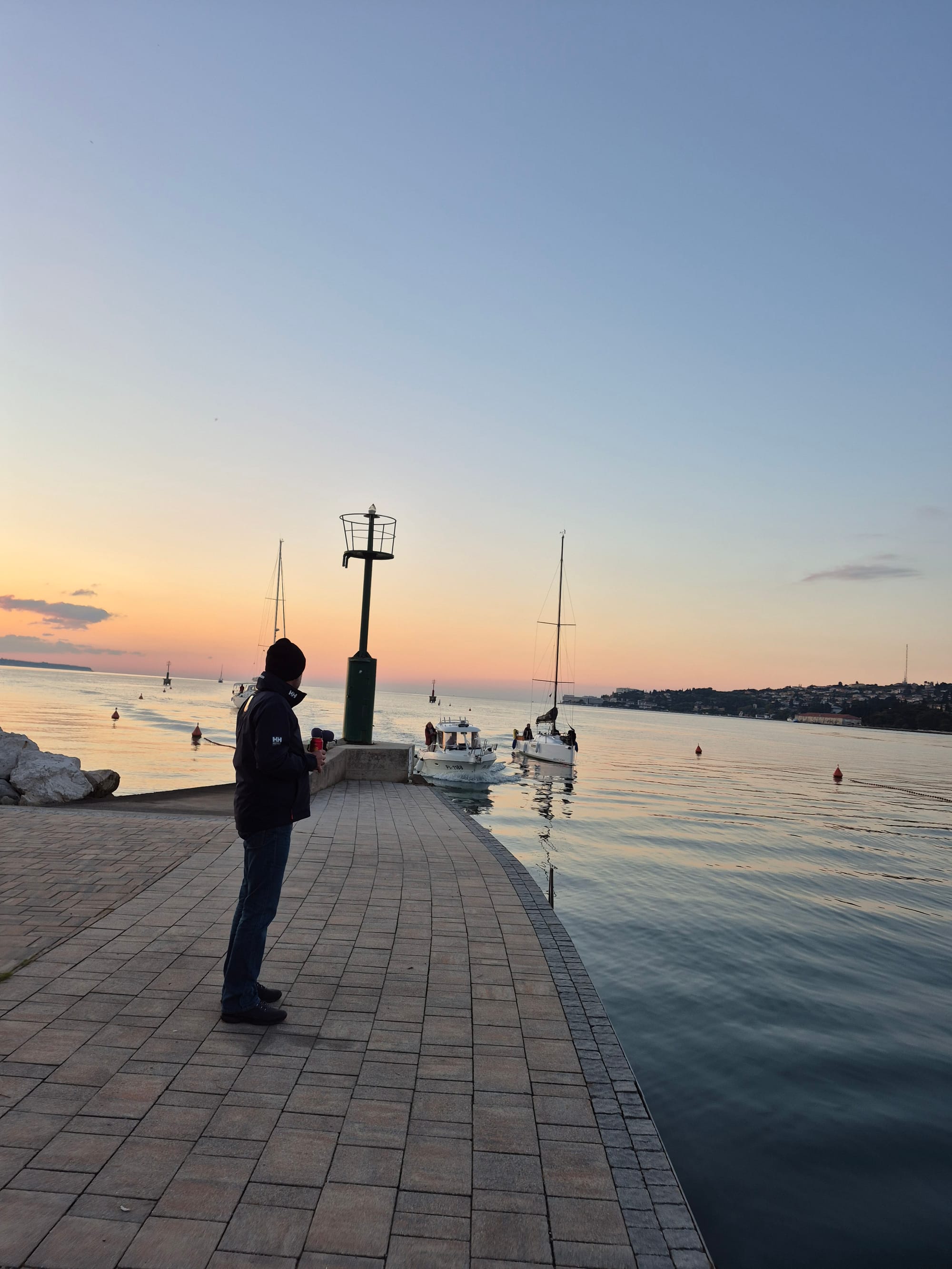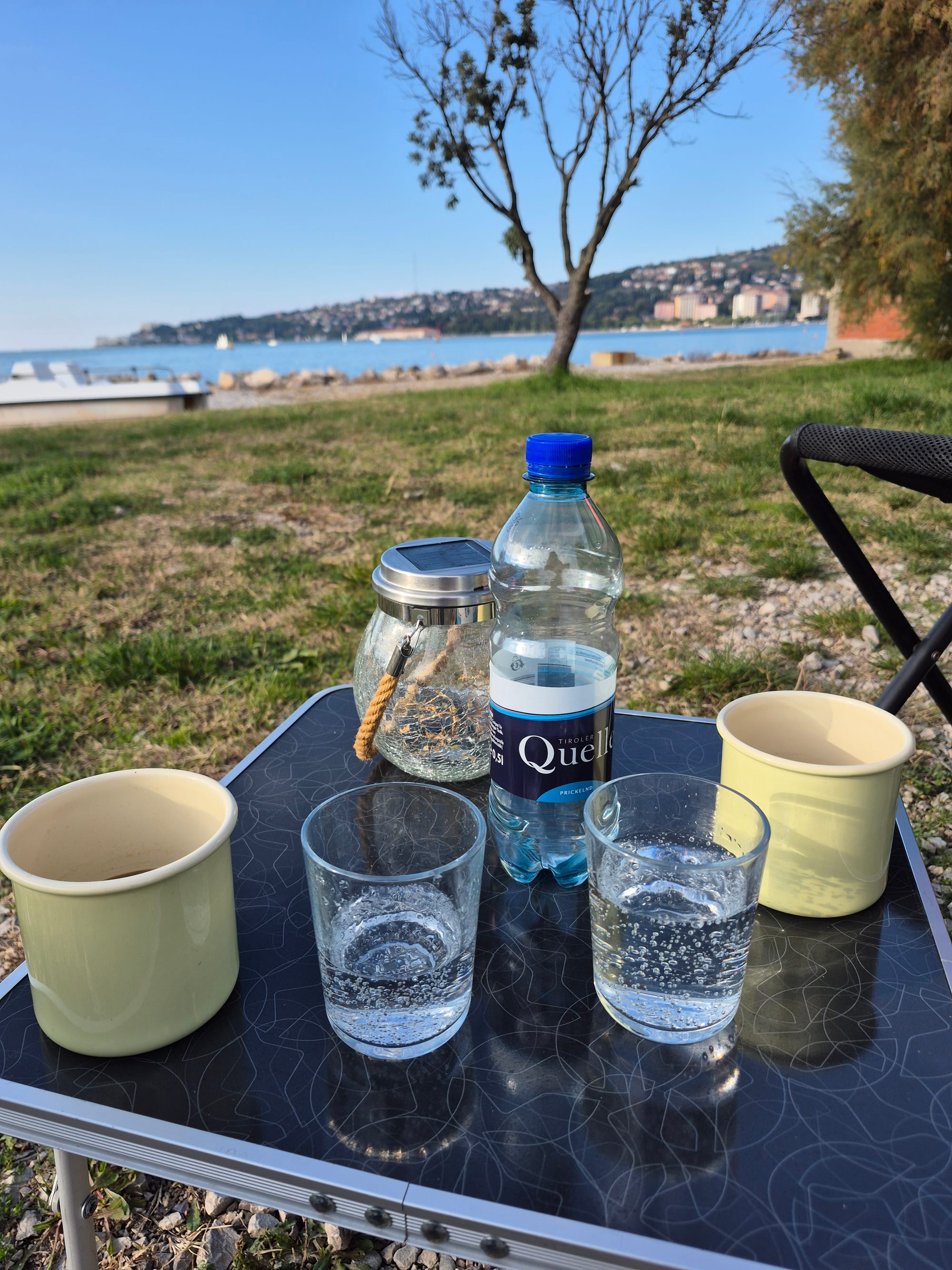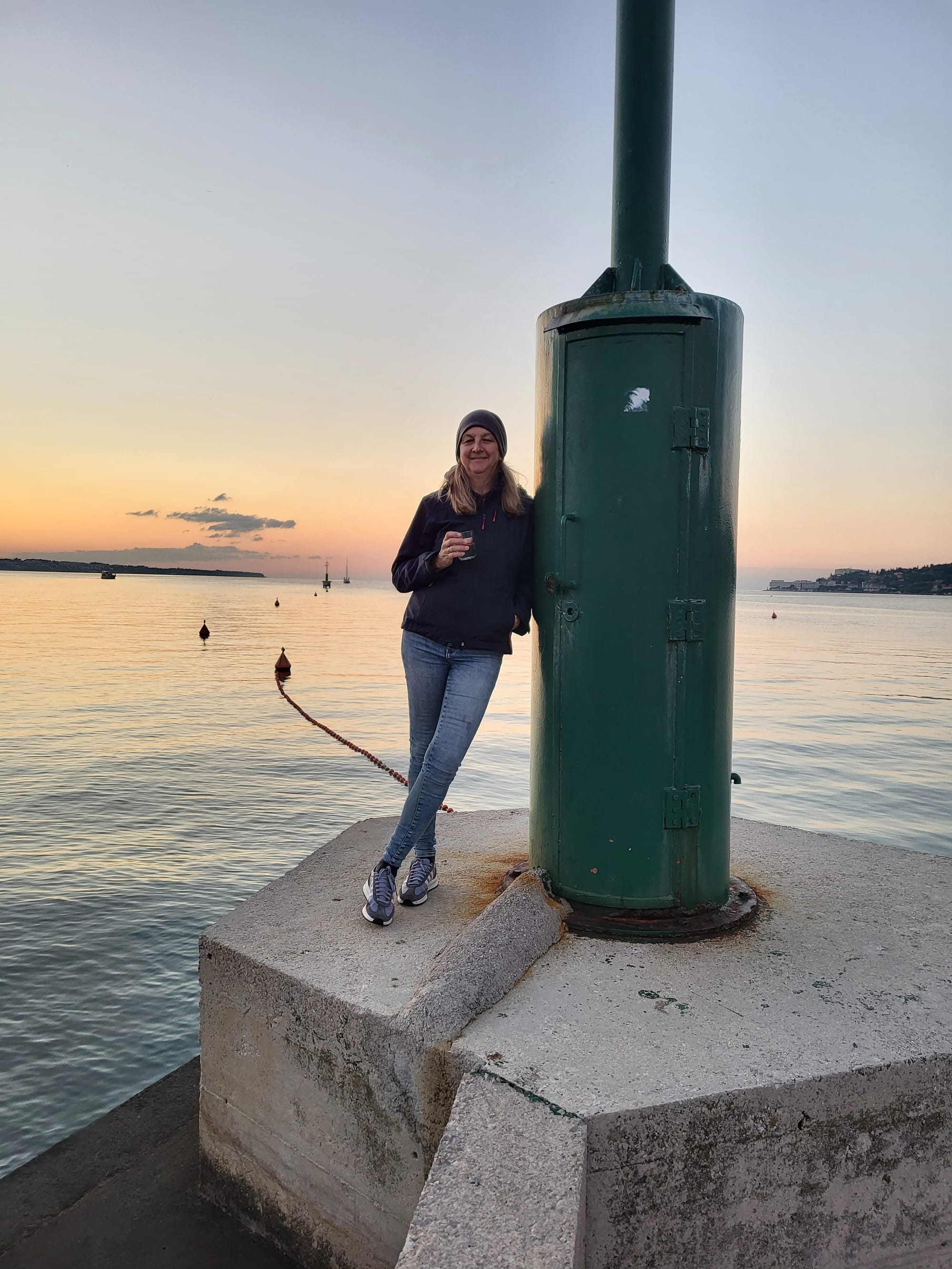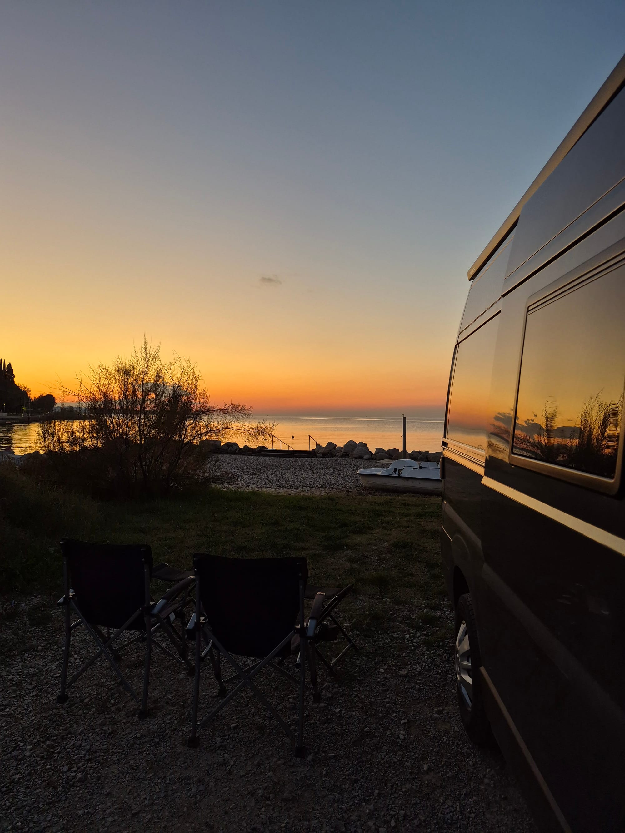 Zum ersten Mal stehen wir mit dem Heck zum Meer und das ist genial, sowohl für den Blick auf Piran beim Aufwachen...