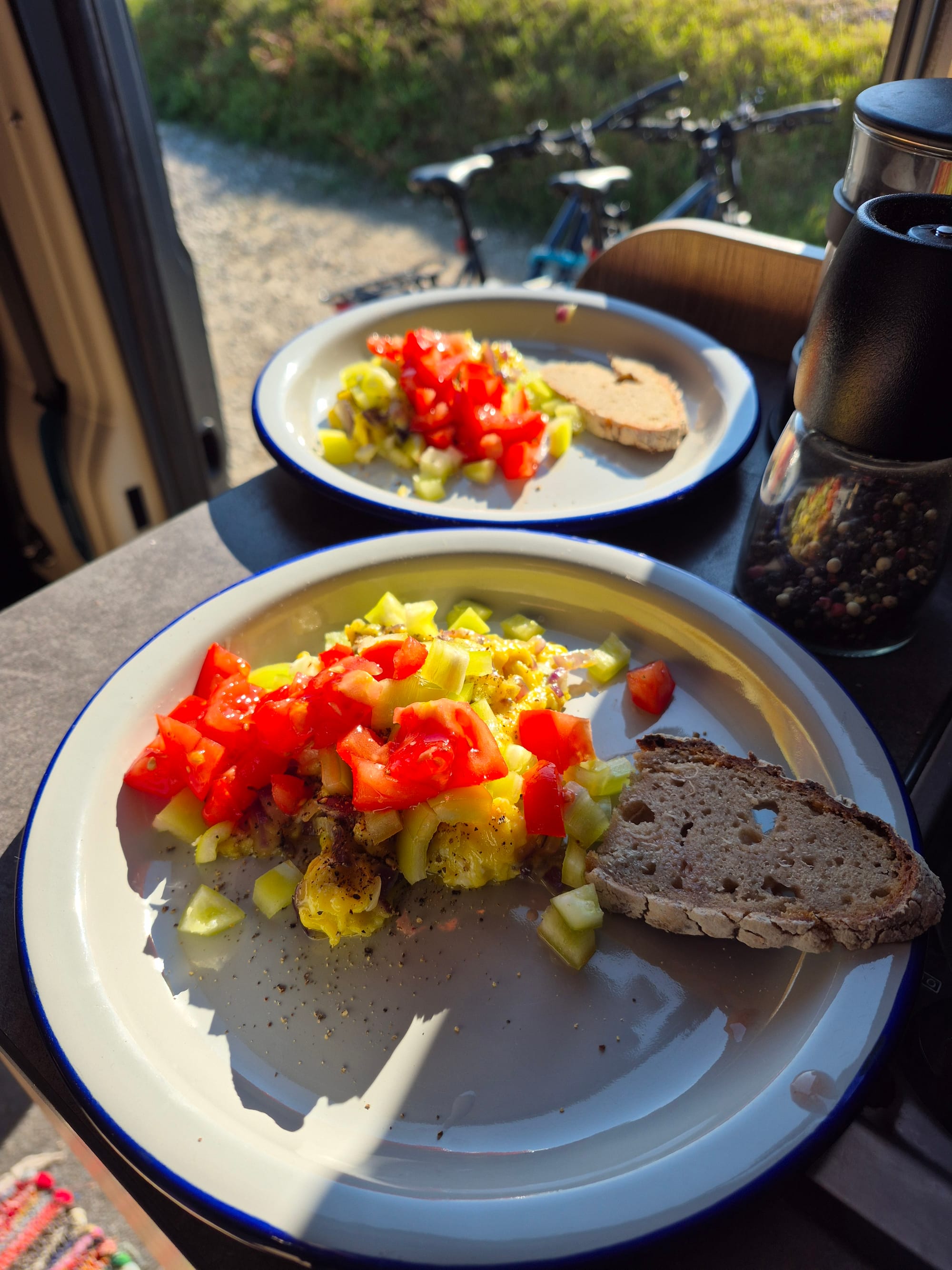 Gestern beim Ankommen am Stellplatz war die Rezeption schon geschlossen, deshalb müssen wir jetzt zum Einchecken fahren. Dabei nutzen wir die Gelegenheit und schauen nach Matejs Bavaria...
