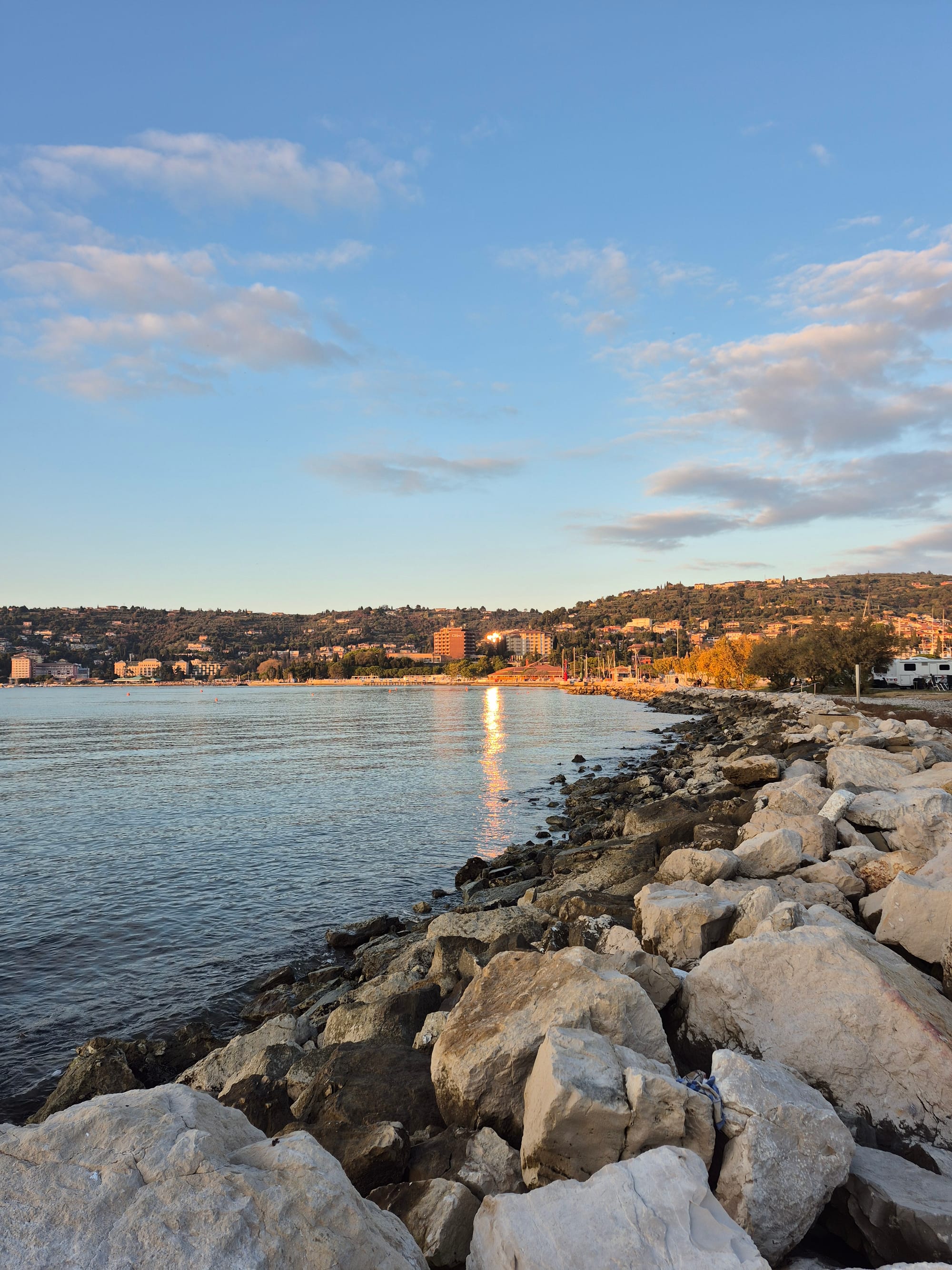 Zur Abenddämmerung spazieren wir am Meer entlang...
