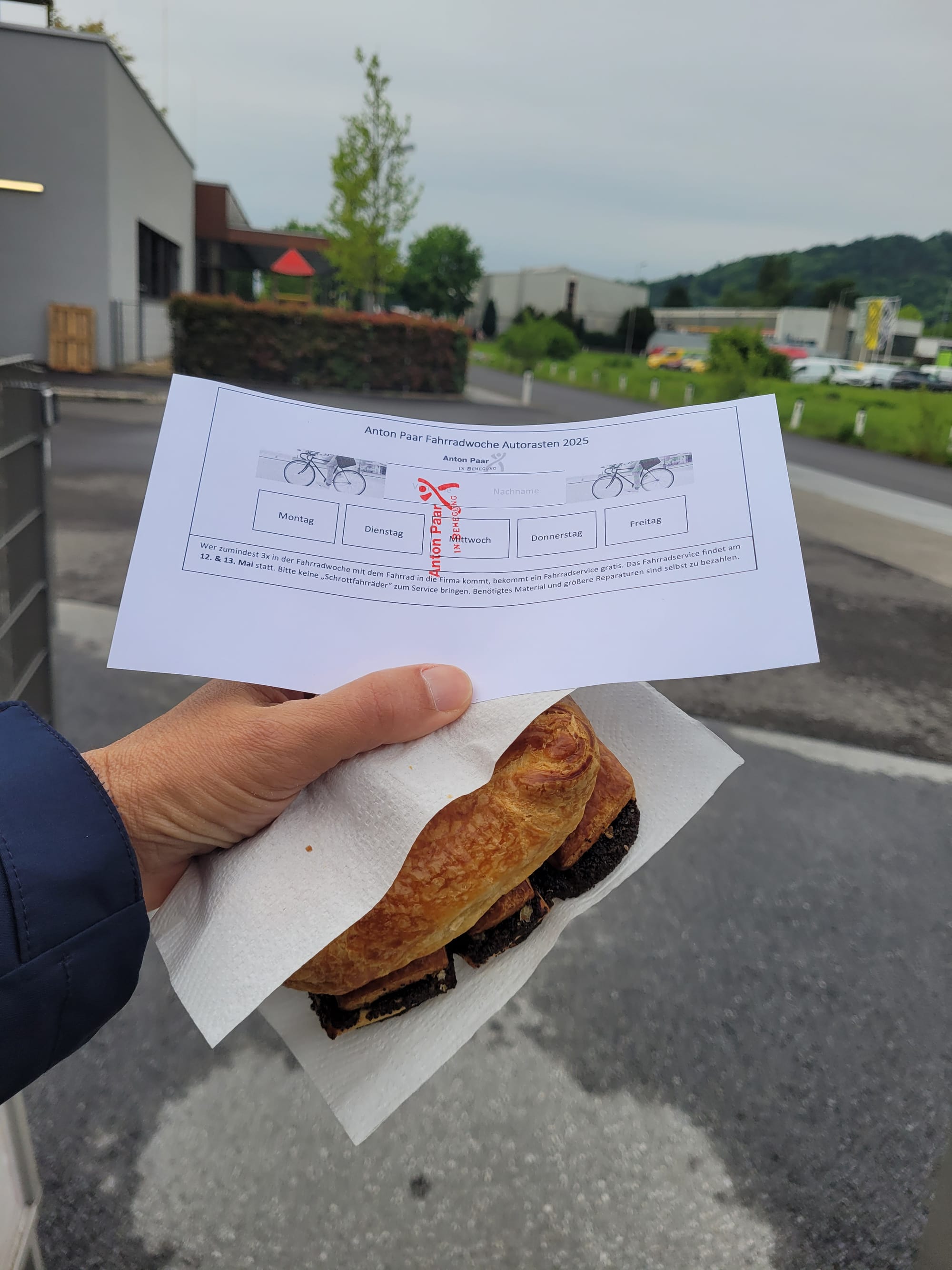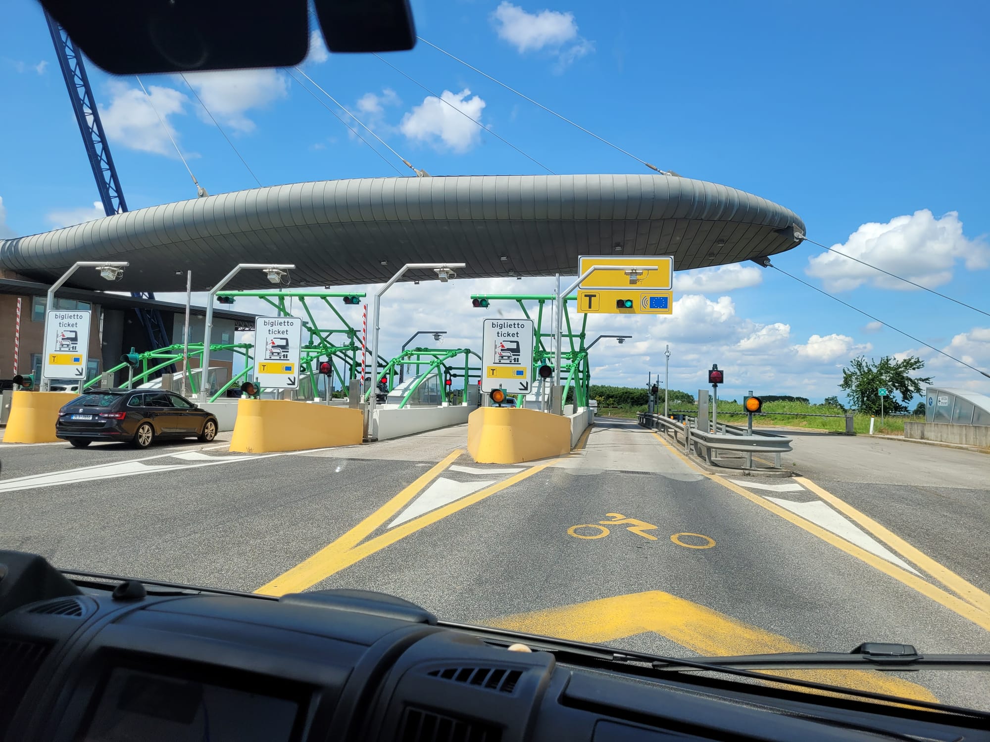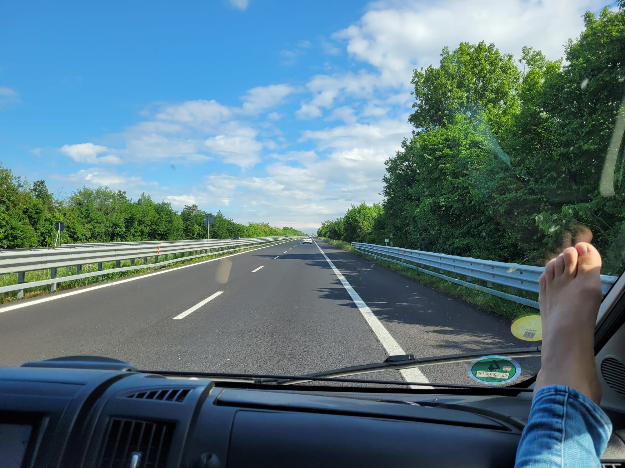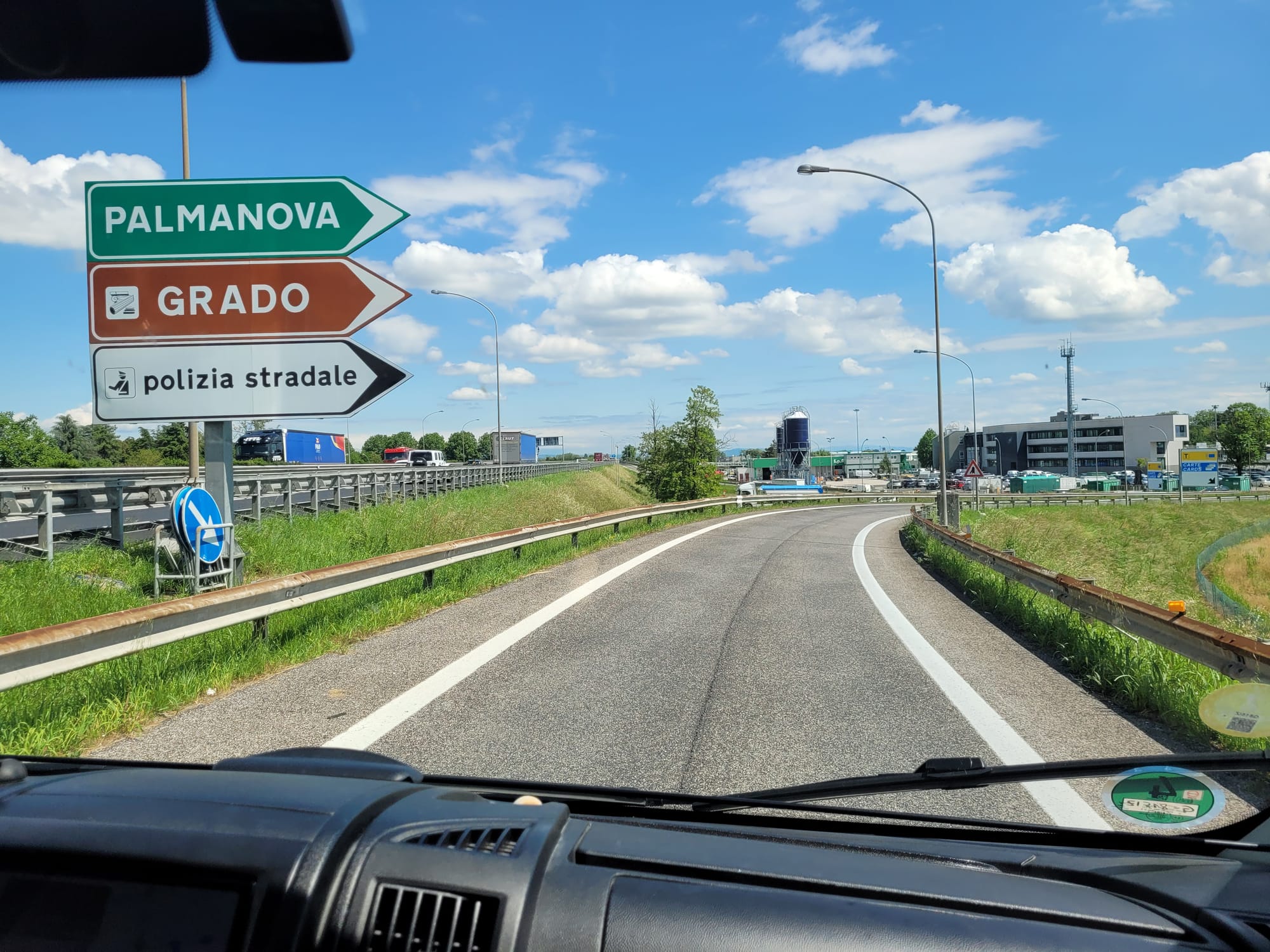 ...und düsen Richtung Slowenien. Doch während der Fahrt fällt Andreas ein, dass er vergessen hat noch etwas beim Schiff anzuschauen. Also fahren wir bei Palmanova wieder ab...
