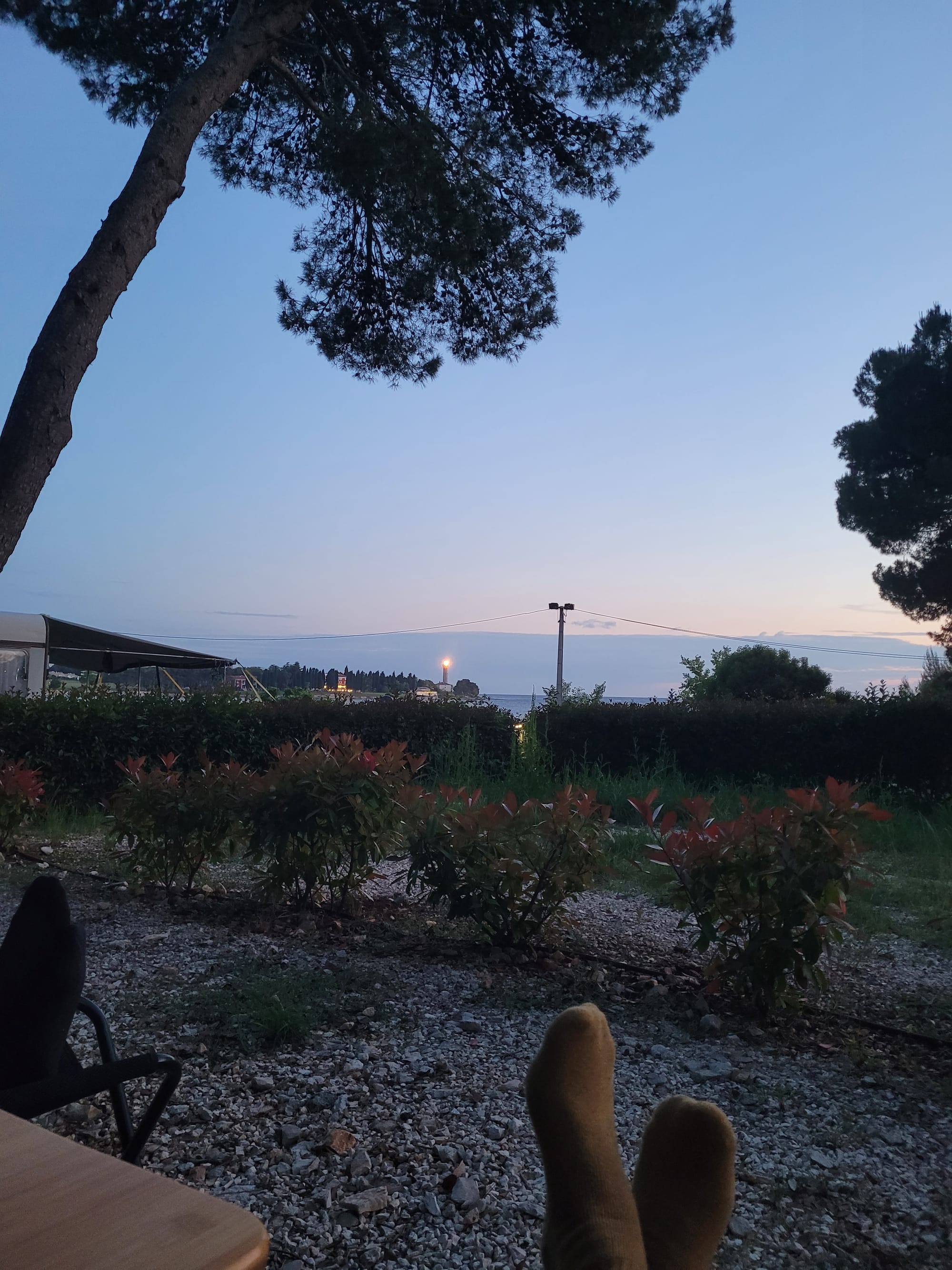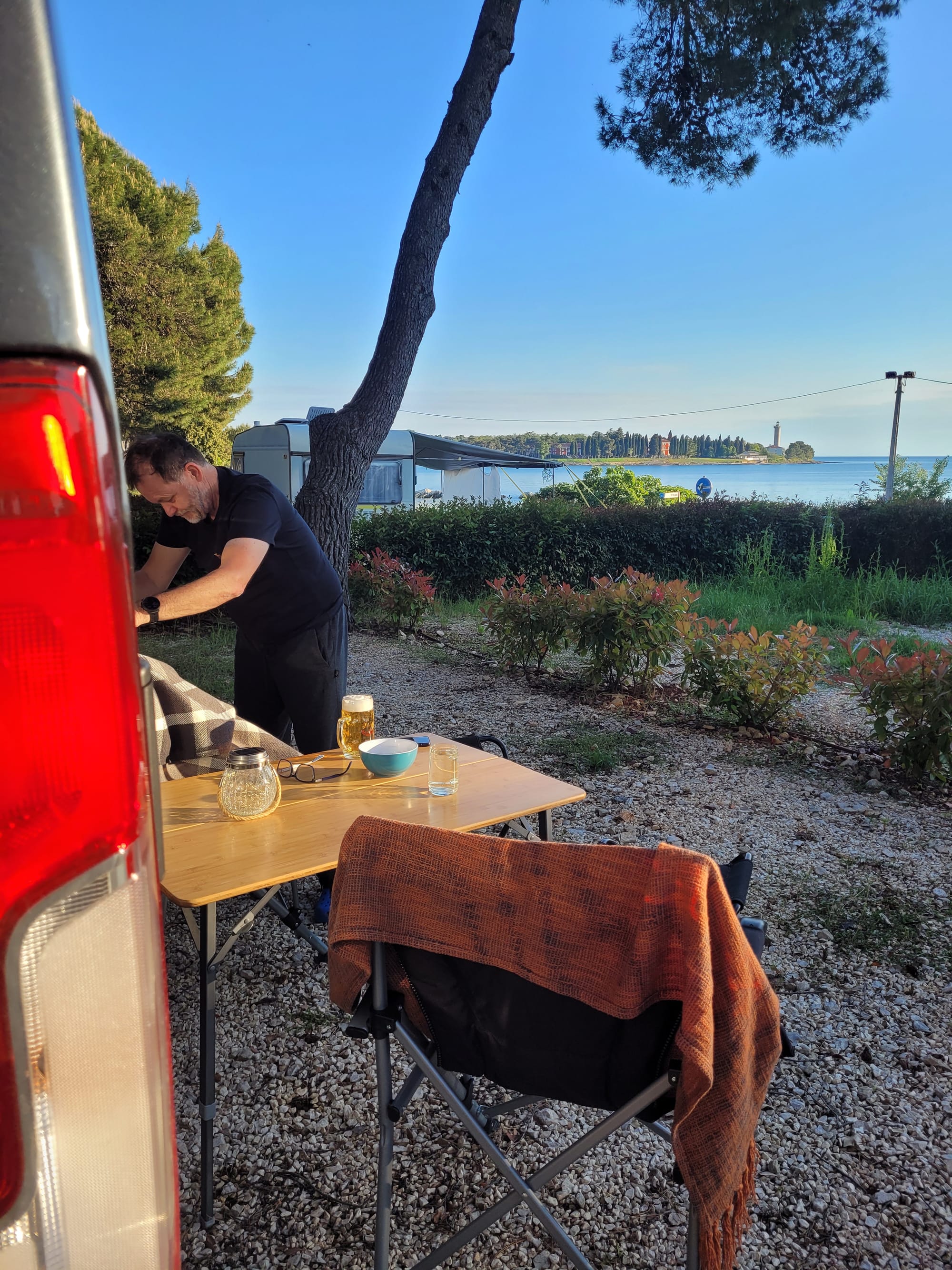 Als hätte es die drei Arbeitstage nicht gegeben befinden wir uns wieder auf dem Stellplatz in Izola und erfreuen uns an dem Ausblick.