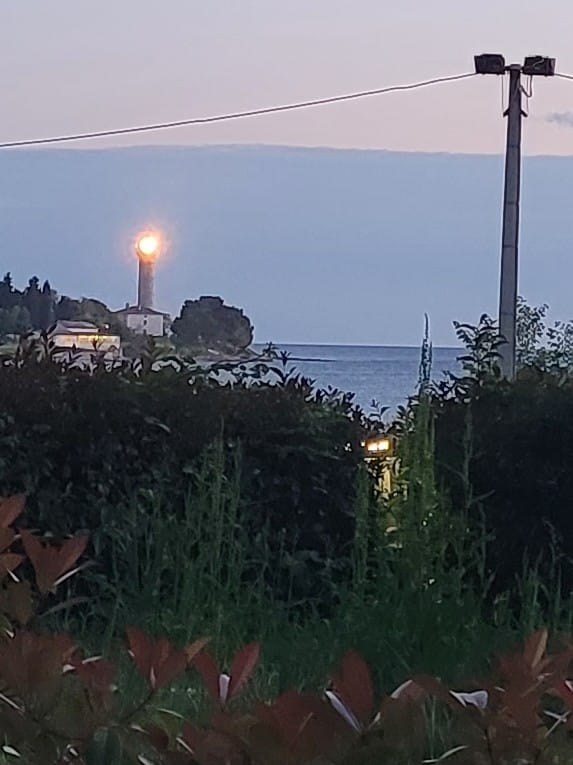 ...und genießen den lauen Abend im Freien mit Blick auf den blinkenden Leuchtturm.