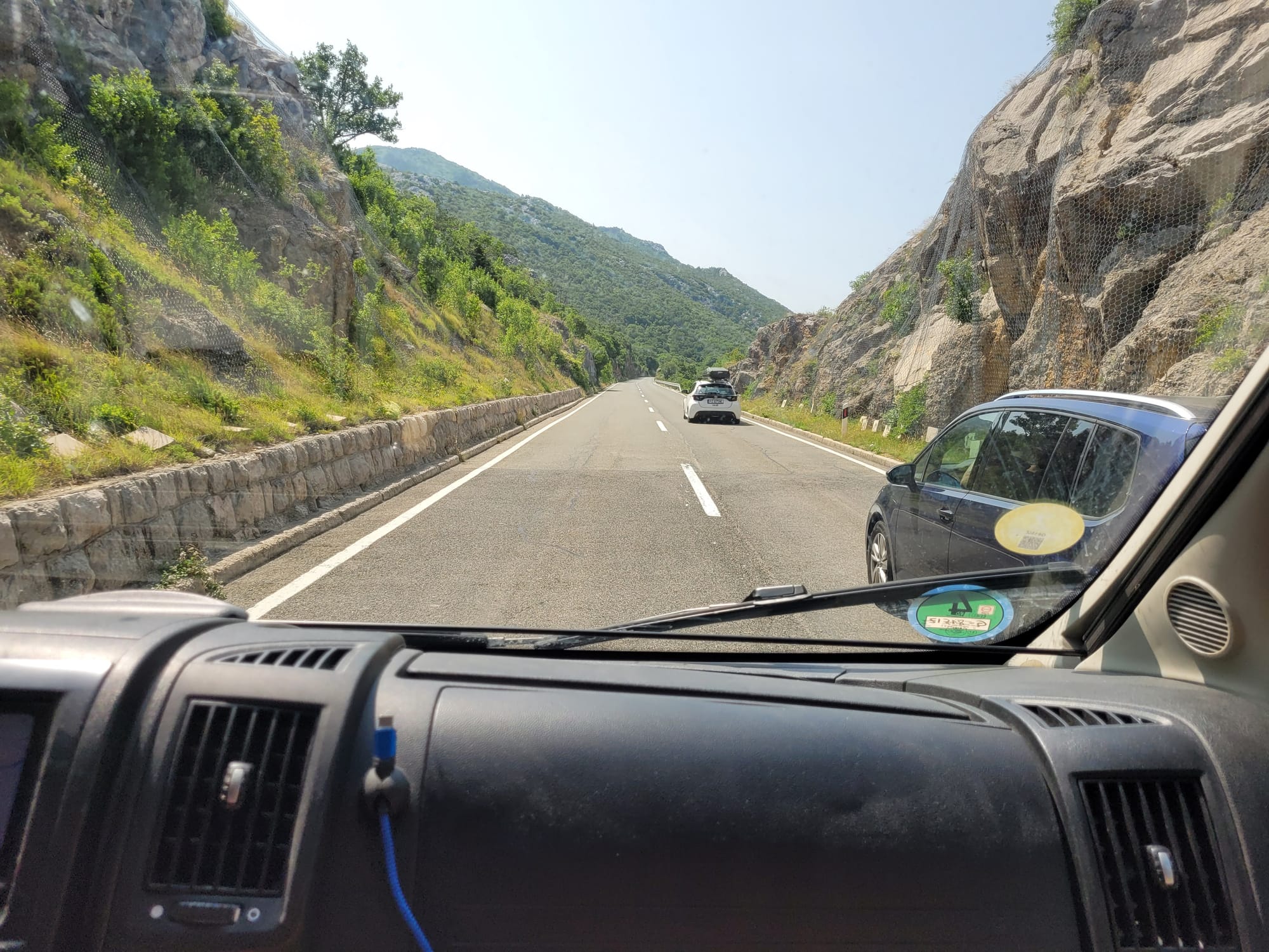 Dann verabschieden wir uns von dem Campingplatz, an dem wir uns so wohl gefühlt haben. "Passen sie beim Fahren auf", verabschiedet uns die freundliche Rezeptionistin, die uns vor dem Wind auf der Strecke beim Velebit Gebirge warnt.