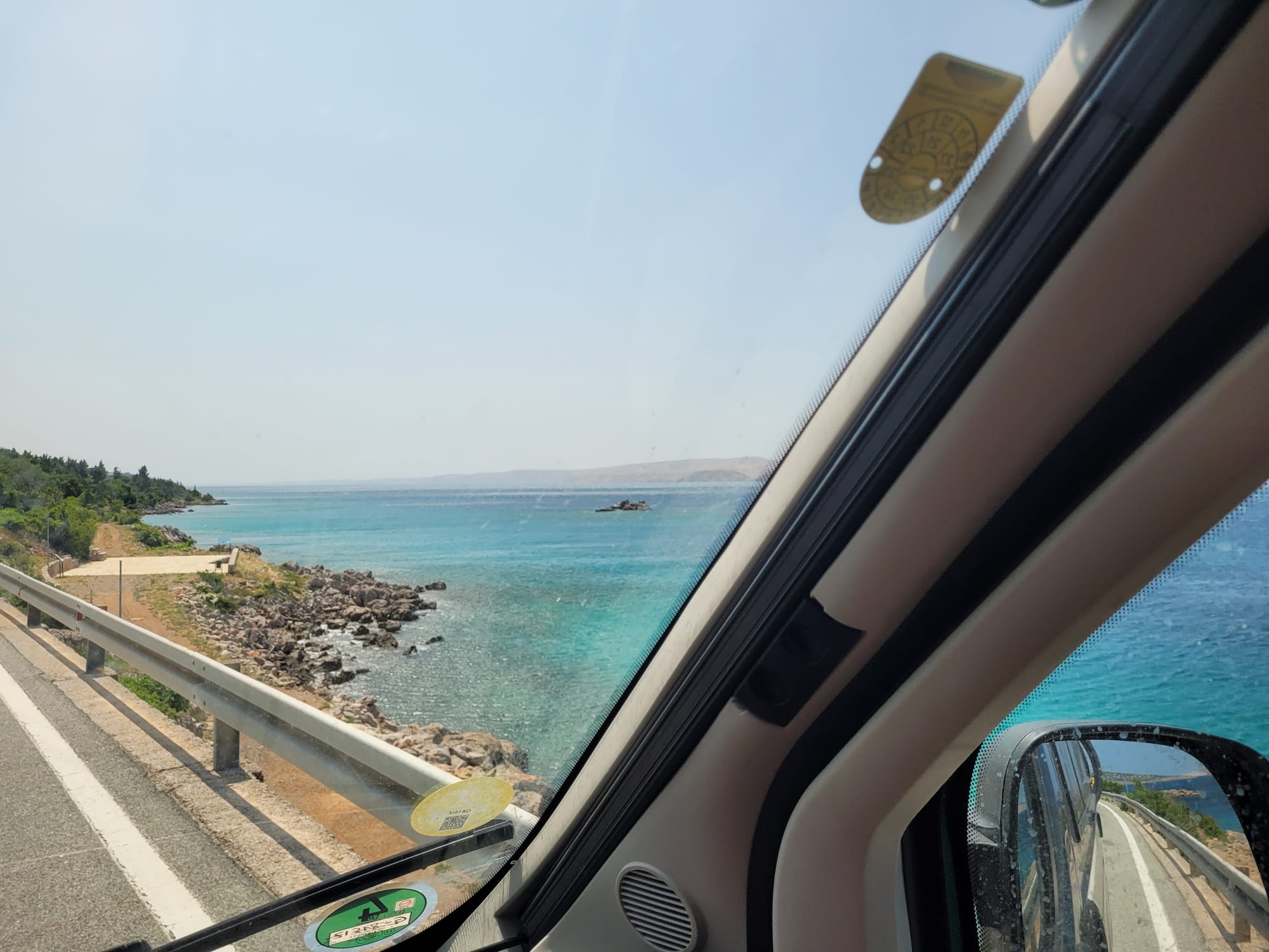 Wir entscheiden uns, obwohl sie uns empfohlen hat die Autobahn zu nehmen, heute einmal auf der Küstenstraße nach Dalmatien zu fahren. So biegen wir diesmal bei Senj nicht zur Serpentinenstraße ab sondern fahren weiter am Meer entlang.