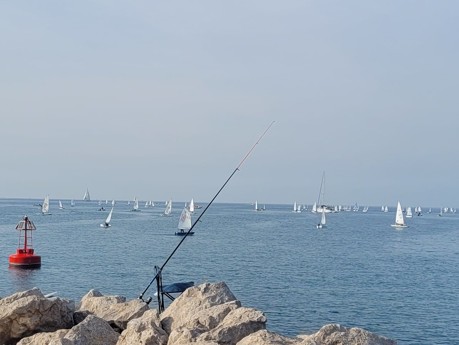...und an der Mole am Meer entlang, um die Optimisten und Lasersegler zu beobachten.