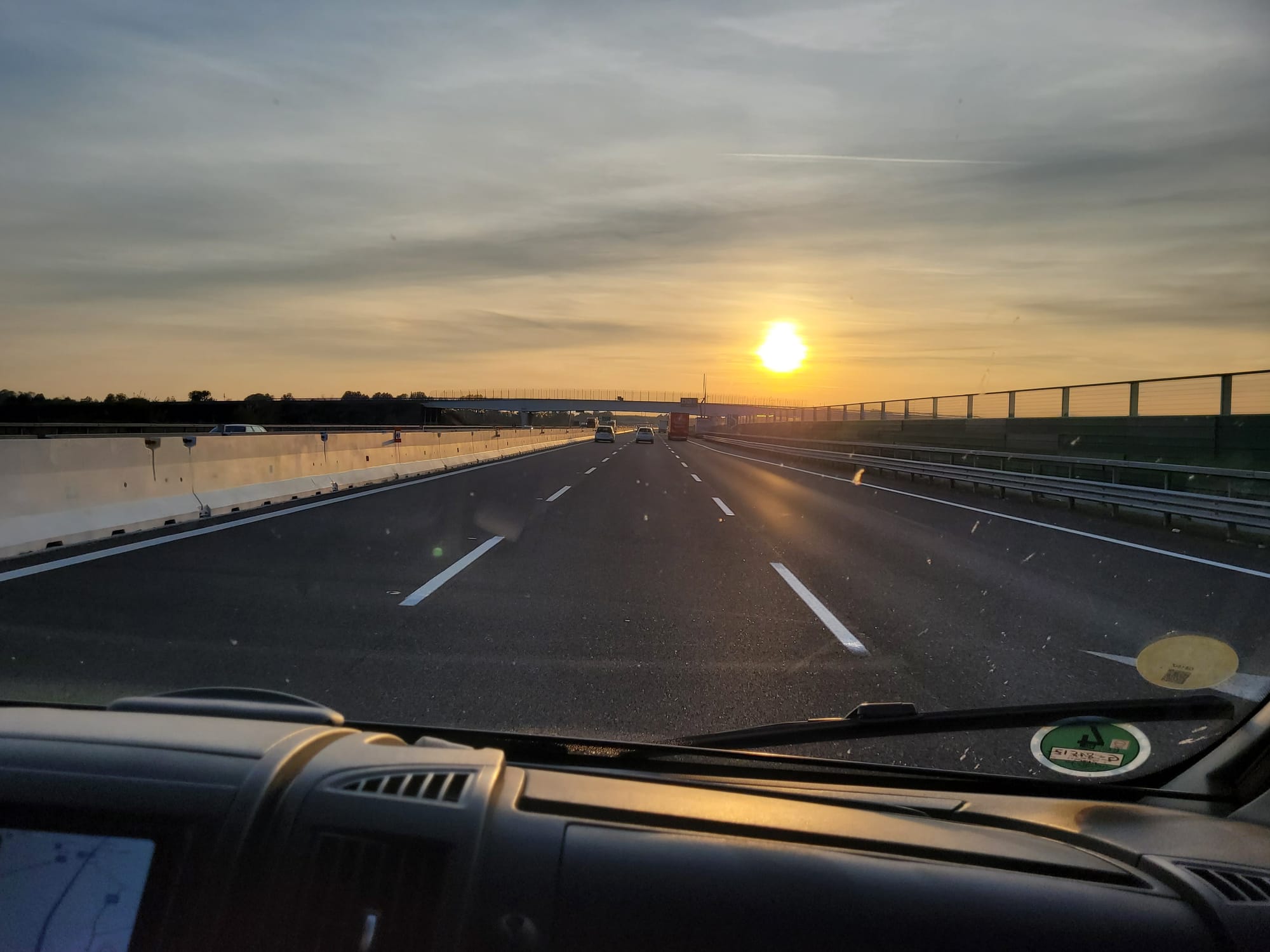 Der Sonnenuntergang begleitet uns durch Italien zu unserem Ziel.
