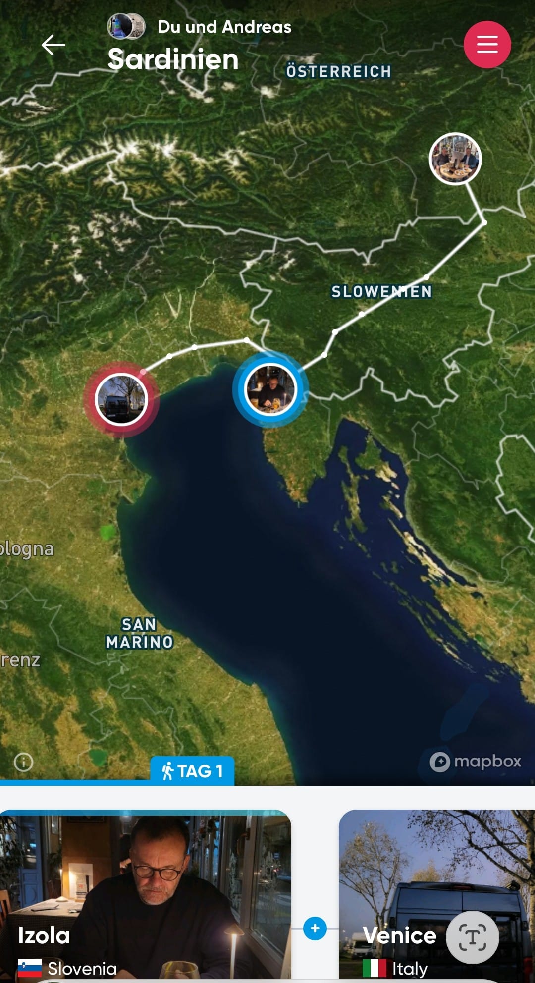 Am späteren Nachmittag machen wir uns dann aber doch auf die Weiterreise. Wir wollen Richtung Venedig fahren und Andreas hat einen Stellplatz gefunden, der direkt am Fährhafen von Venedig liegt. Genial!