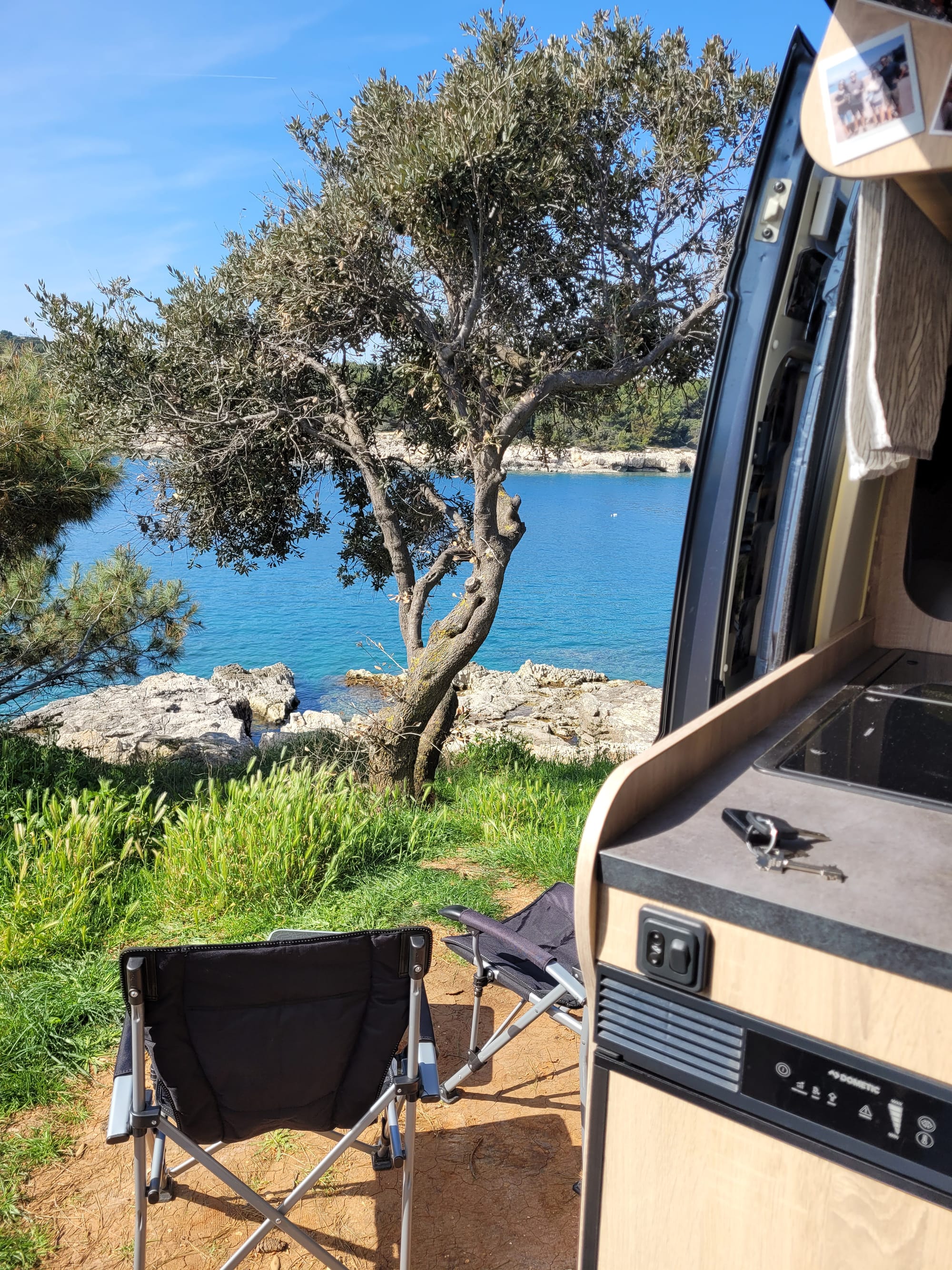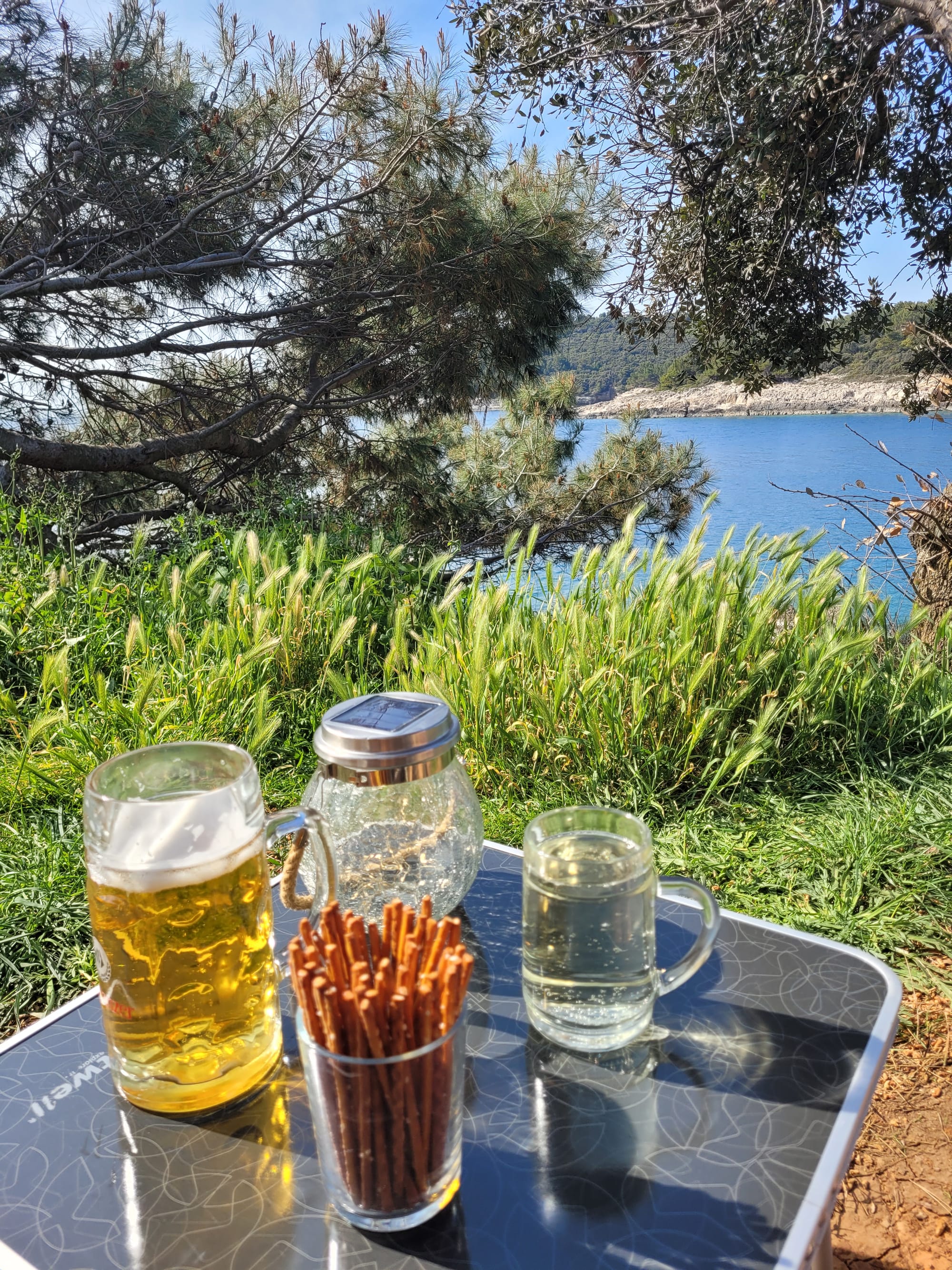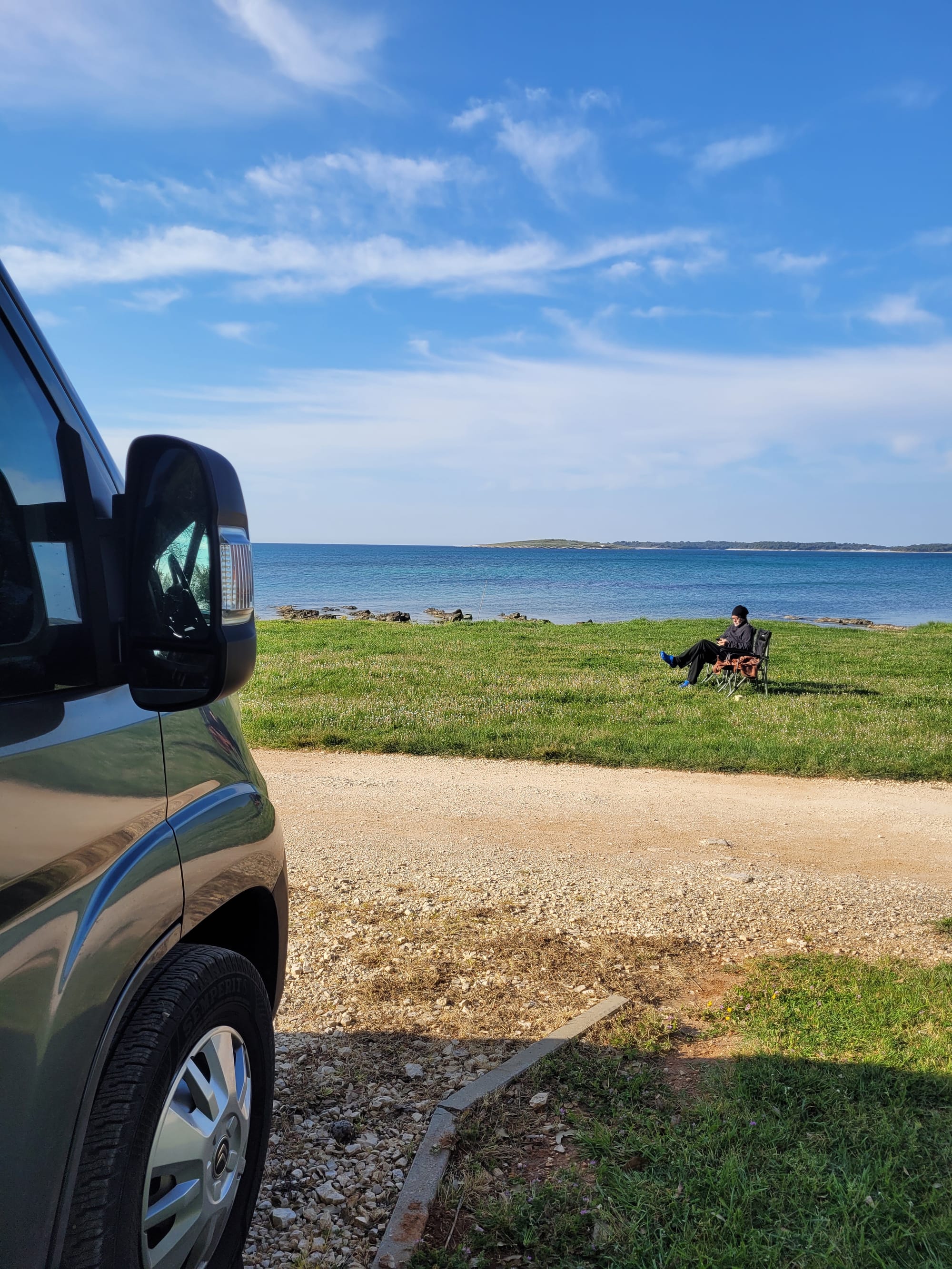 Es ist ein sonniger Morgen und am Platz ist es noch ruhig. Heute ist der erste Ferientag der Osterferien und die Massen schieben sich gerade gegen Süden. Rebekka schreibt mir, dass sie gerade im Auto im Stau nach Poreć sitzen.
