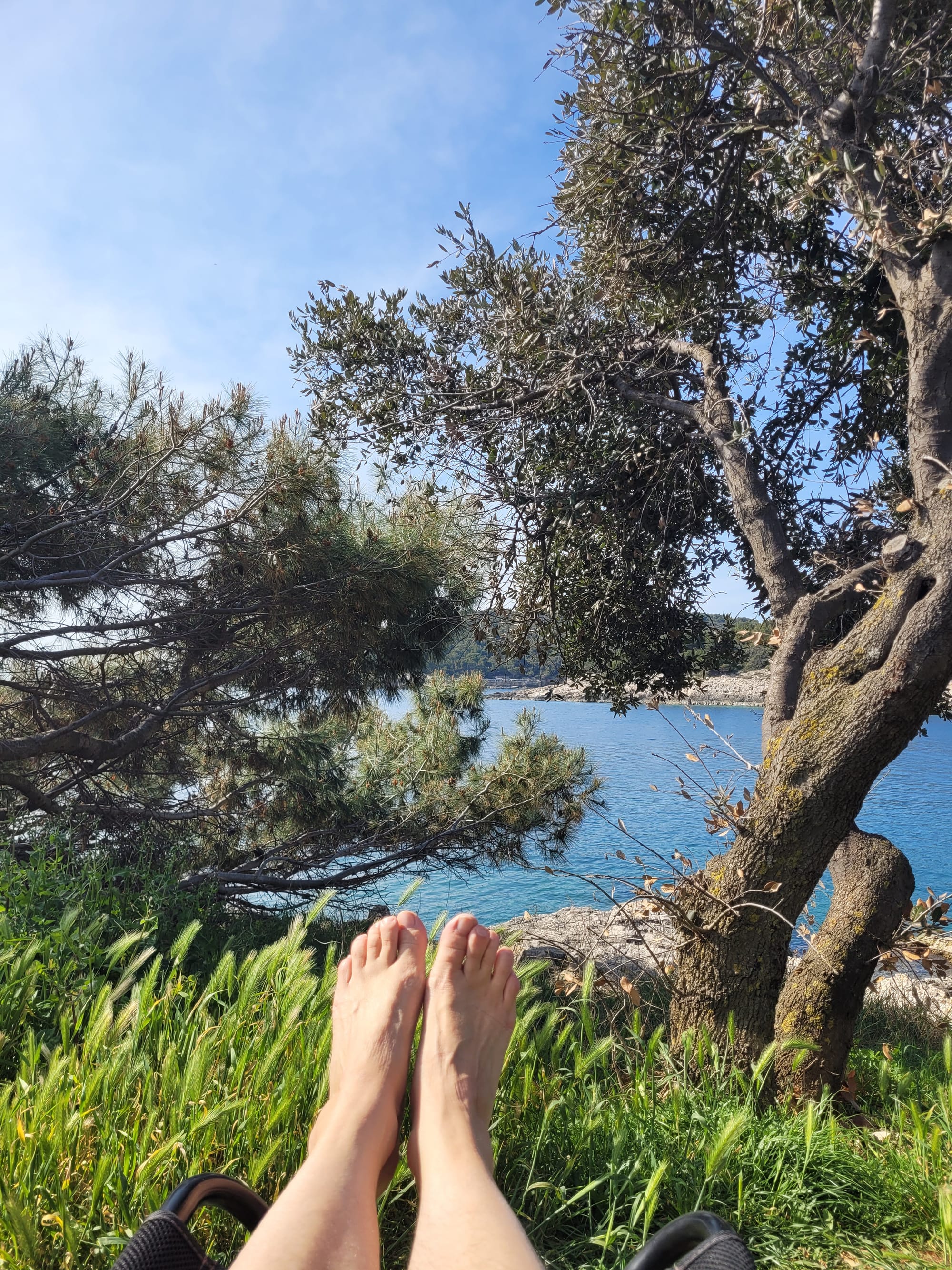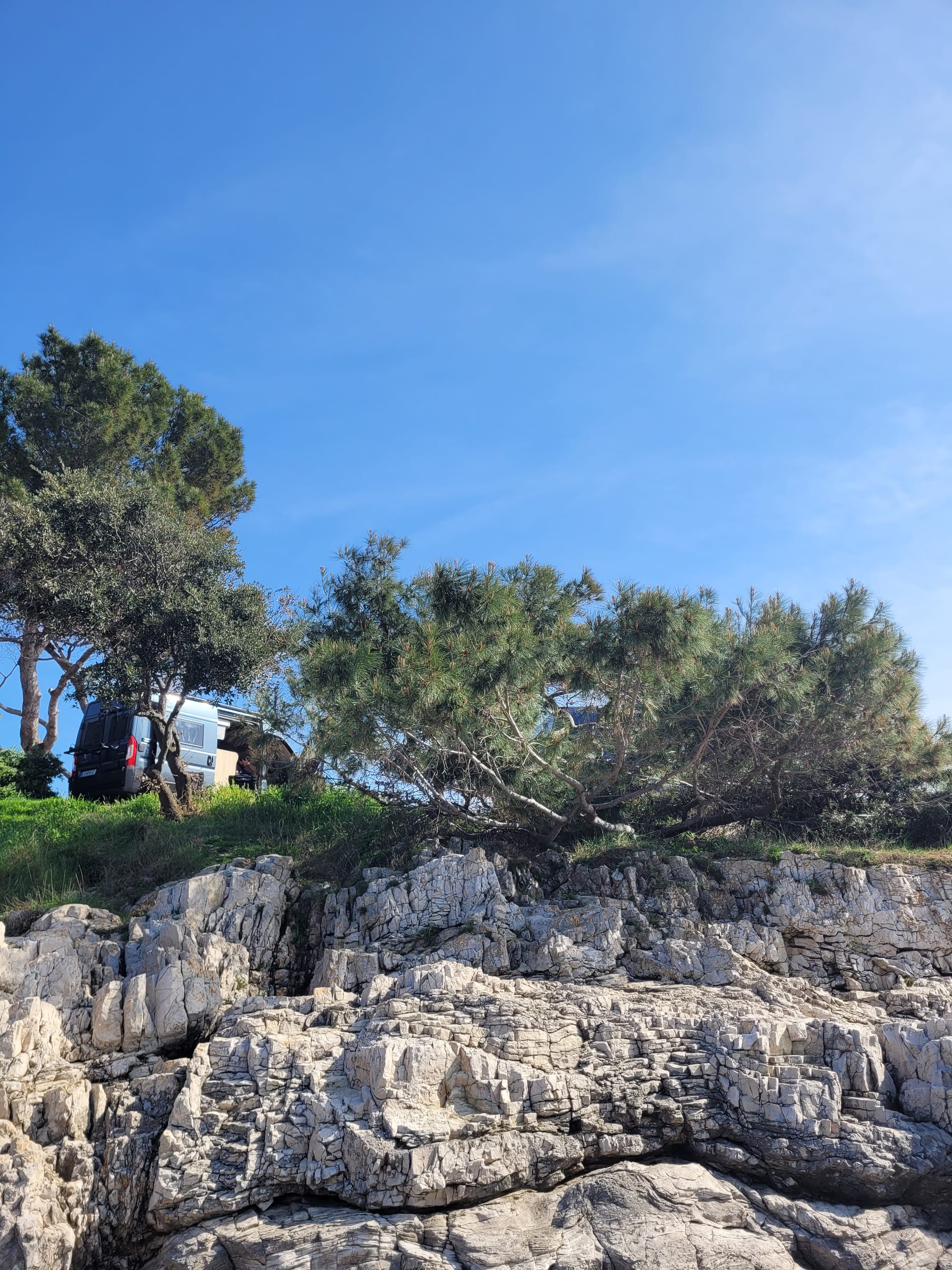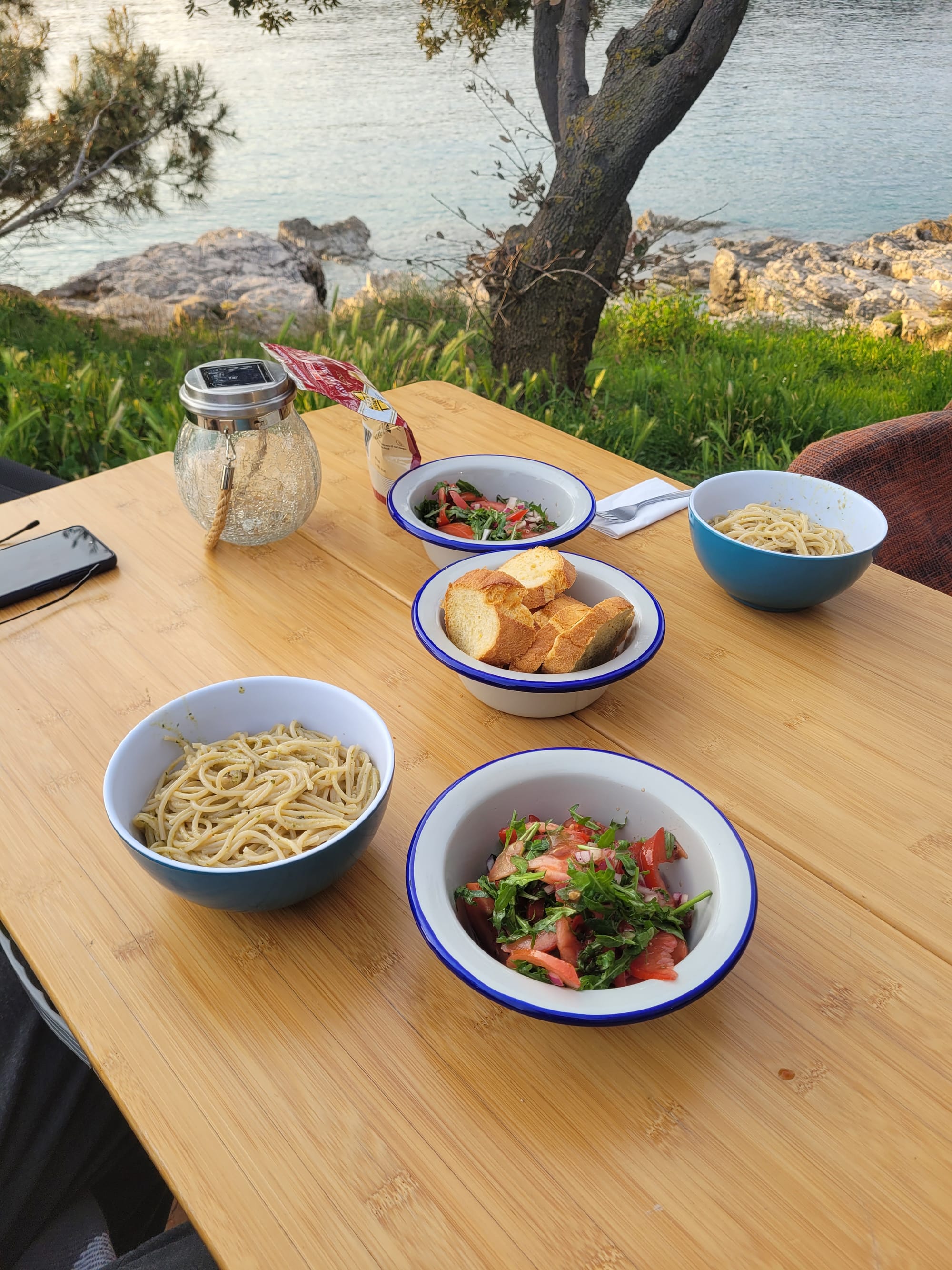 Es ist ein sonniger Morgen und am Platz ist es noch ruhig. Heute ist der erste Ferientag der Osterferien und die Massen schieben sich gerade gegen Süden. Rebekka schreibt mir, dass sie gerade im Auto im Stau nach Poreć sitzen.