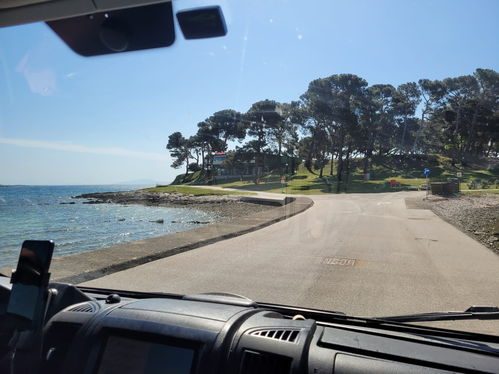 Wir checken am Campingplatz Medulin ein und fahren mit dem Luigi auf die kleine Insel um uns einen Stellplatz auszusuchen. Dafür, dass der Platz heute seit 7:00 geöffnet ist - es ist jetzt 11:00 - stehen auf den Festland-Plätzen schon ganz schön viele Camper 🤔.