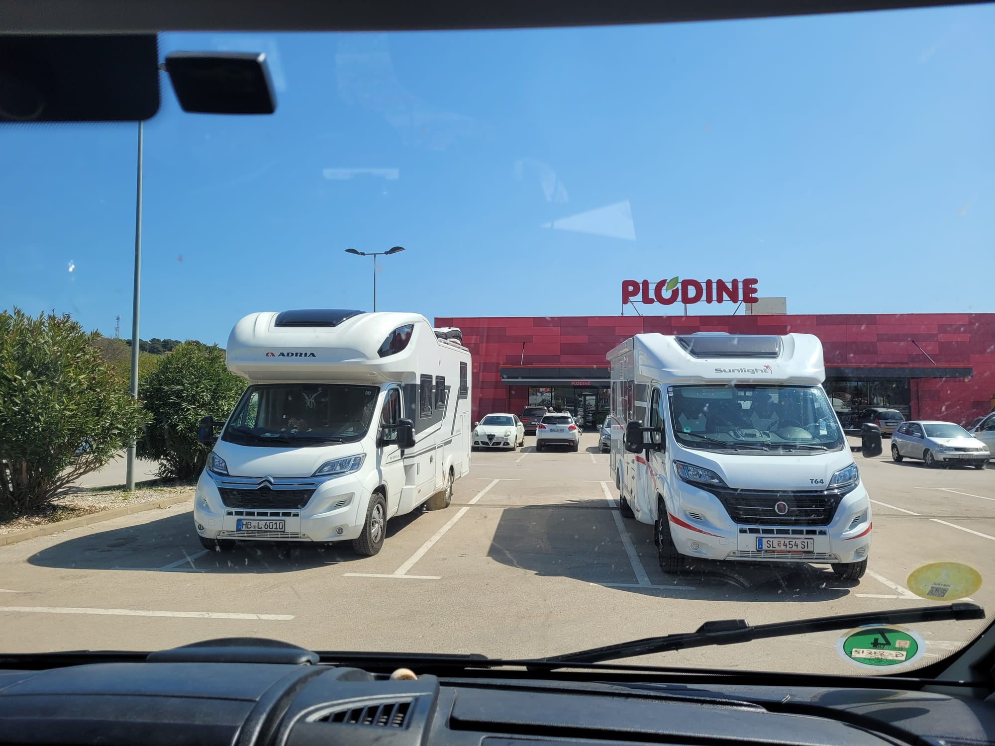 Es geht weiter zur kleinen Marina Bunarina. Zuvor versorgen wir uns mit kroatischen Lebensmitteln. Und am Parkplatz entdecken wir schon die ersten Neuankömmlinge.