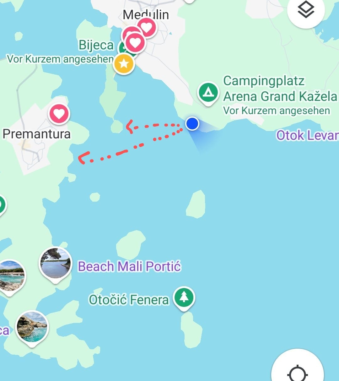 Wir gehen alle Möglichkeiten für den heutigen Übernachtungsplatz durch und entscheiden uns, zum Campingplatz Stoja bei Pula zu fahren. Wir nehmen an, dass es sich im Norden von Istrien noch mehr abspielen wird.