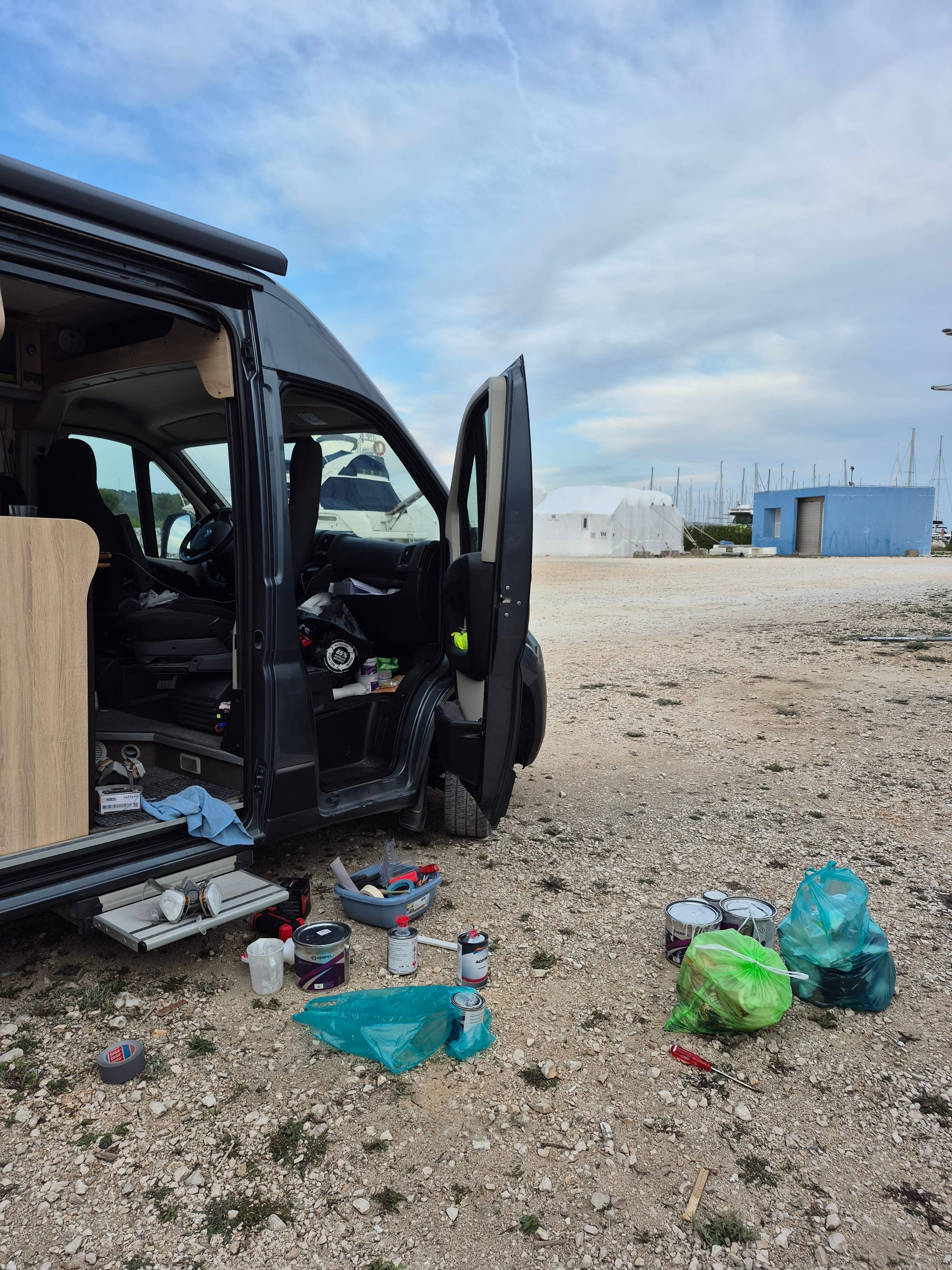 Um 12:00 starten wir mit dem Streichen. Ich verliere das Zeitgefühl und will gar nicht nachschauen wie lange wir streichen um die Motivation nicht zu verlieren. Plötzlich bin ich froh, dass wir ein kleines Schiff haben.