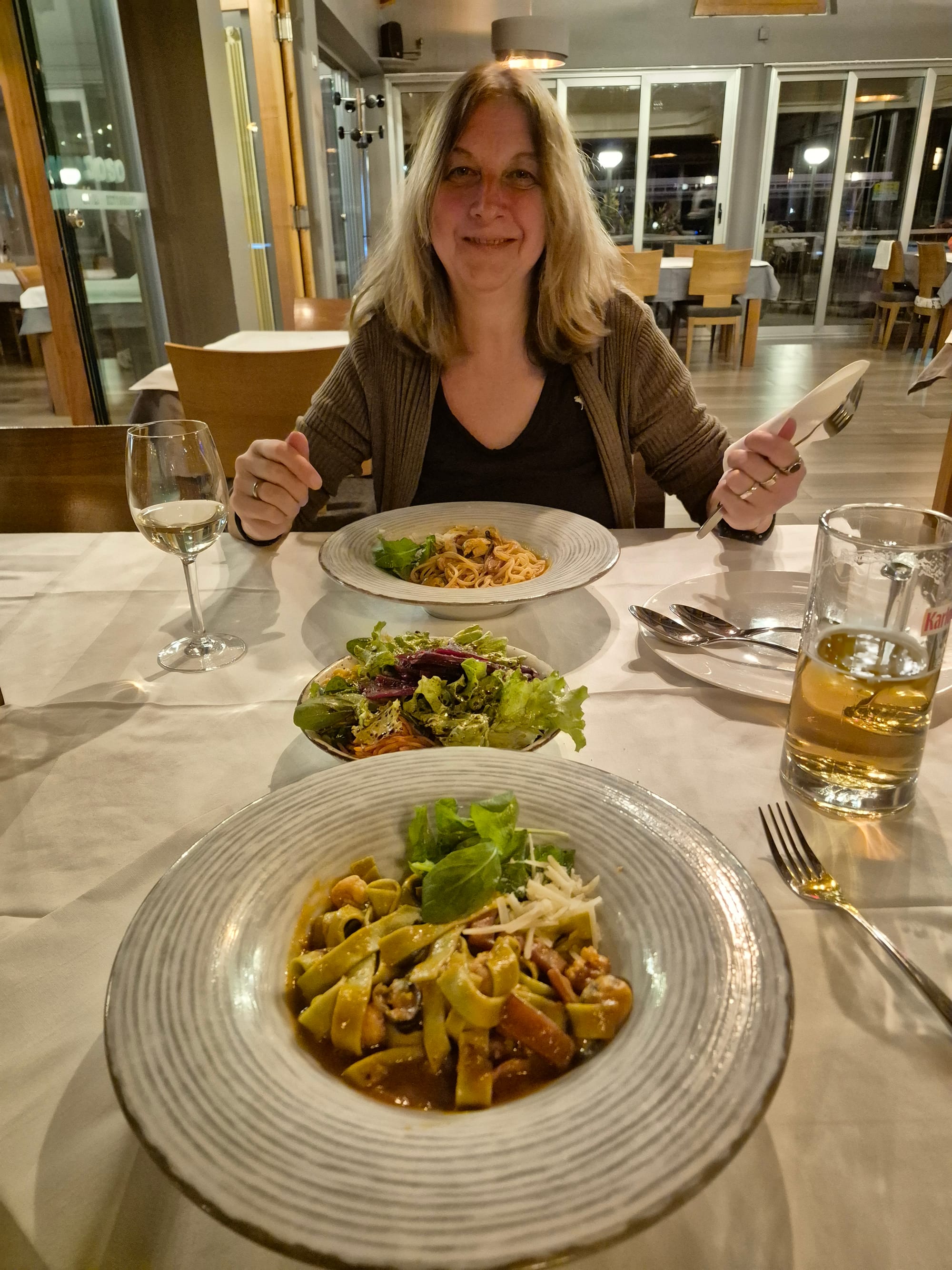 Für Andreas und mich gibt's eine erfrischende Dusche und gegen 21:00 kehren wir beim Joso ein.