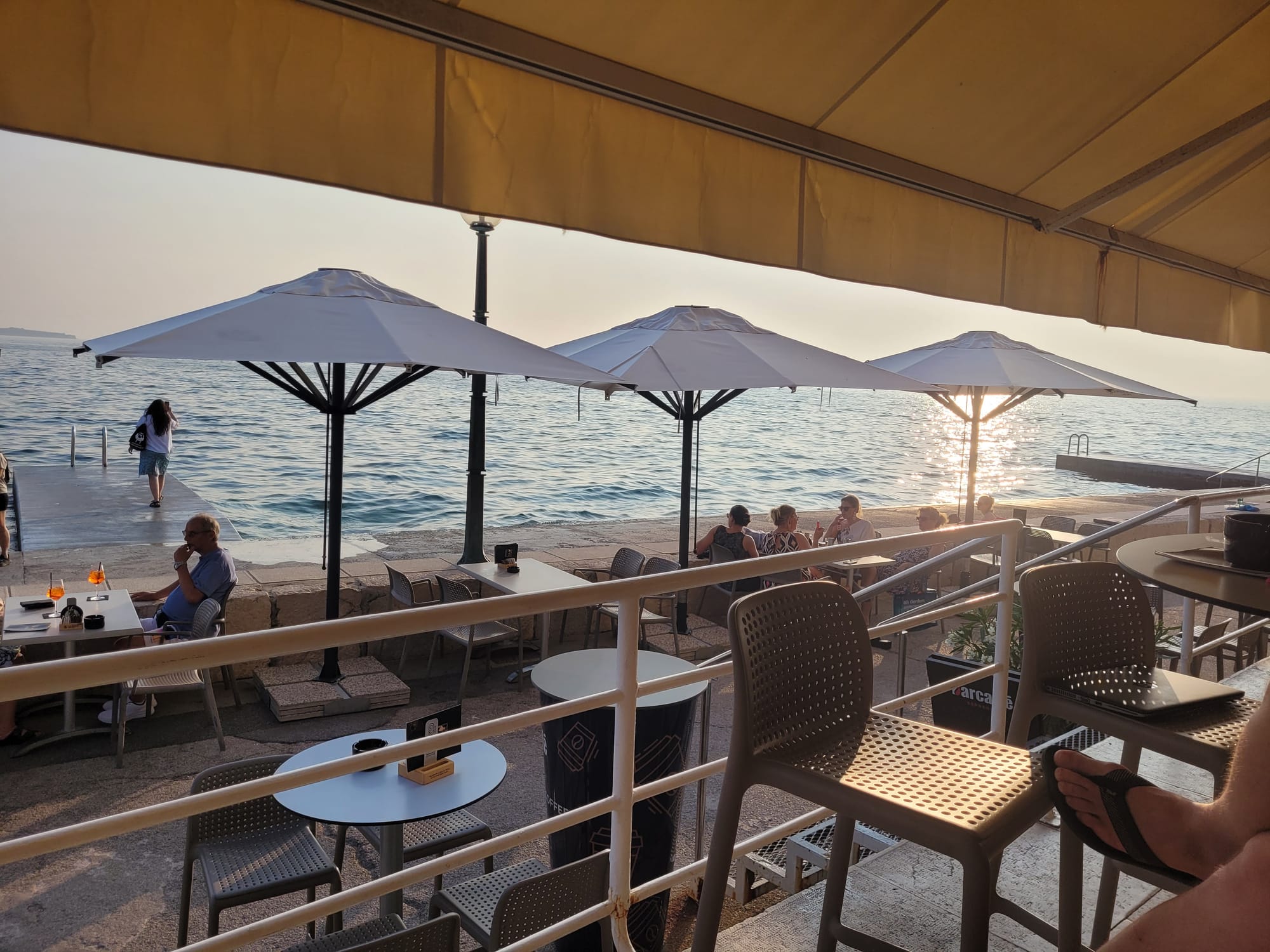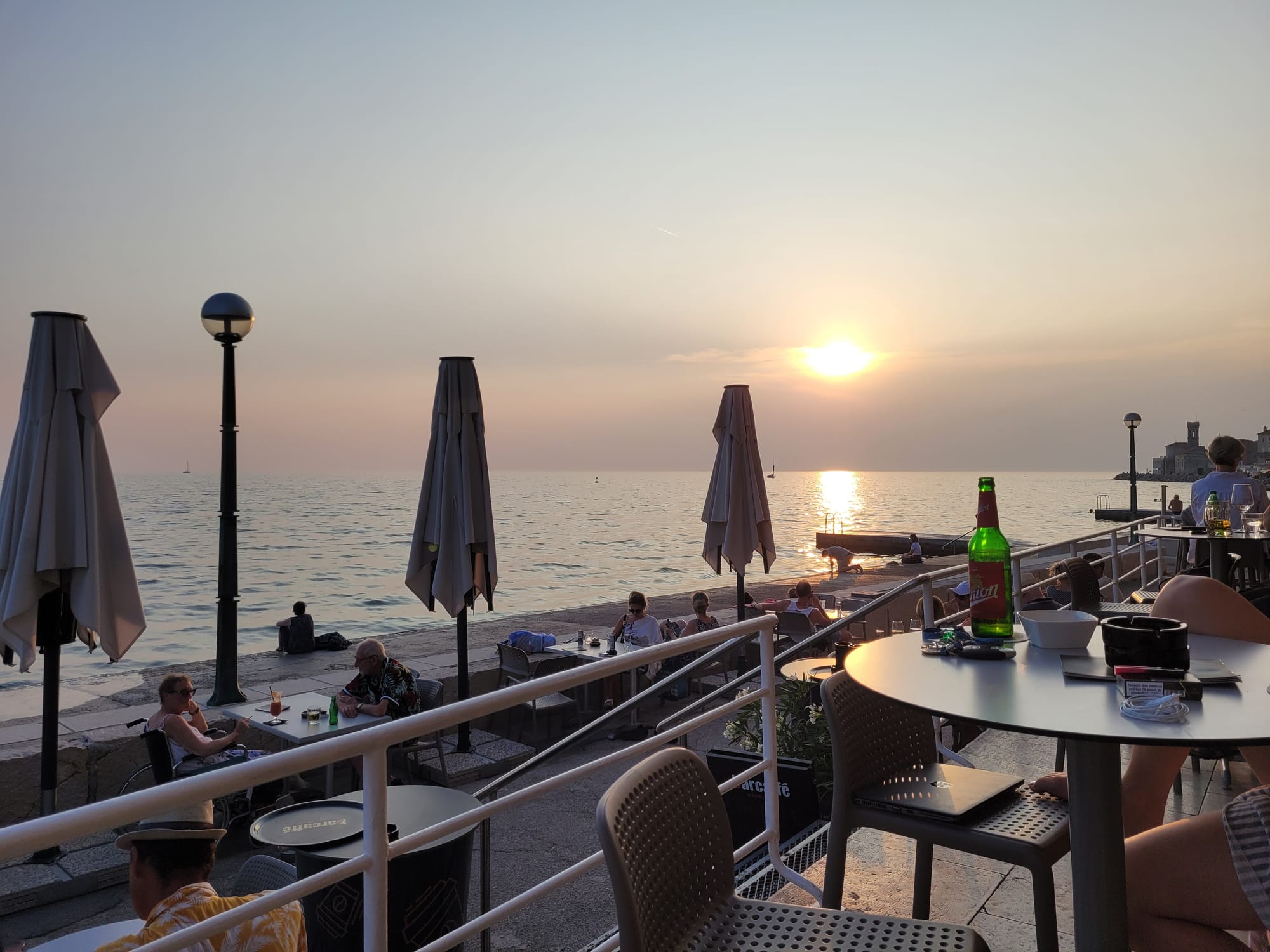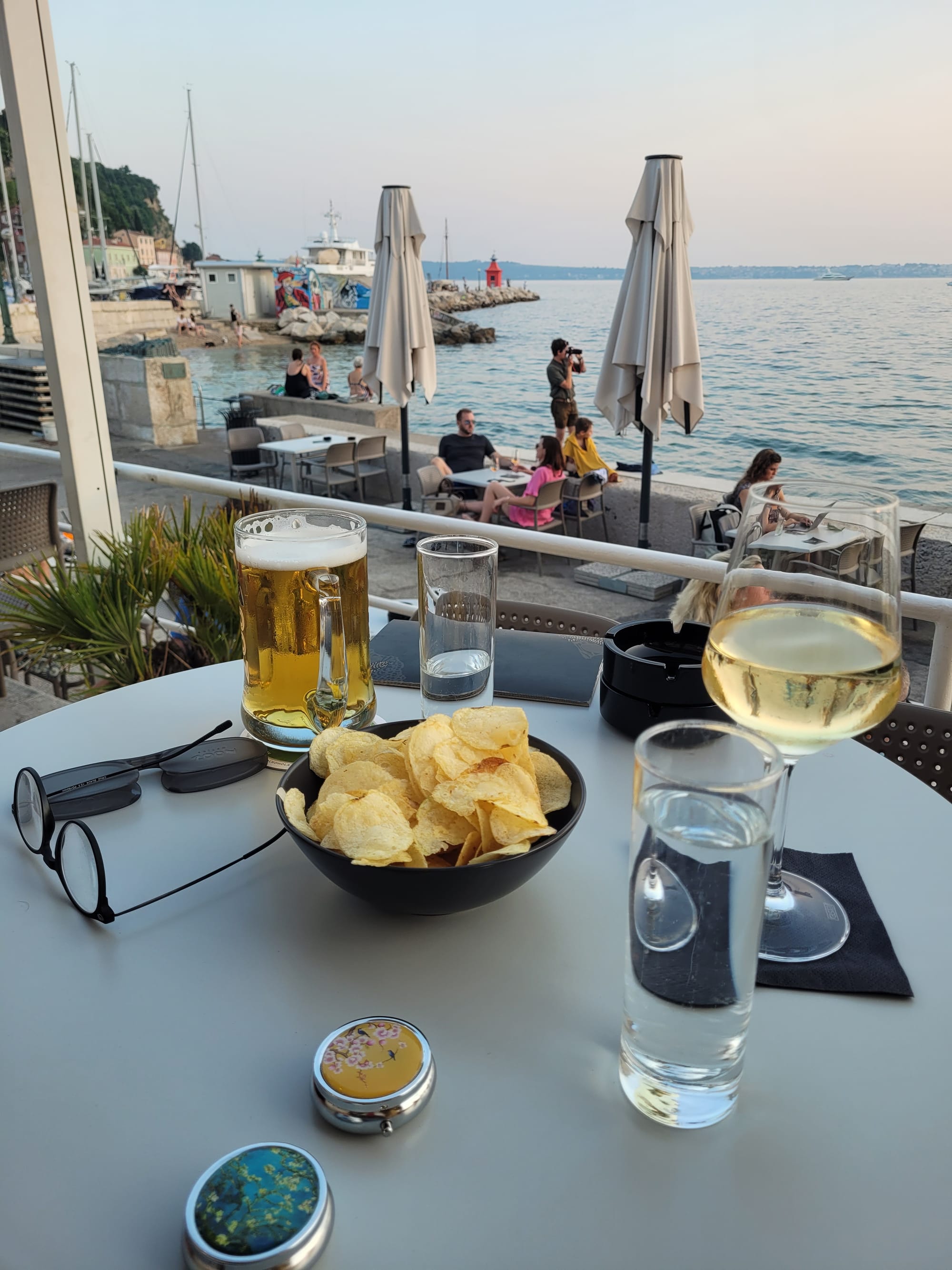 Ein Ausflug nach Piran ist für heute auch geplant, aber den verschieben wir auf den Abend. Den Nachmittag verbringen wir lieber im Schatten vor dem Luigi oder schwimmend/duschend im kalten Nass.