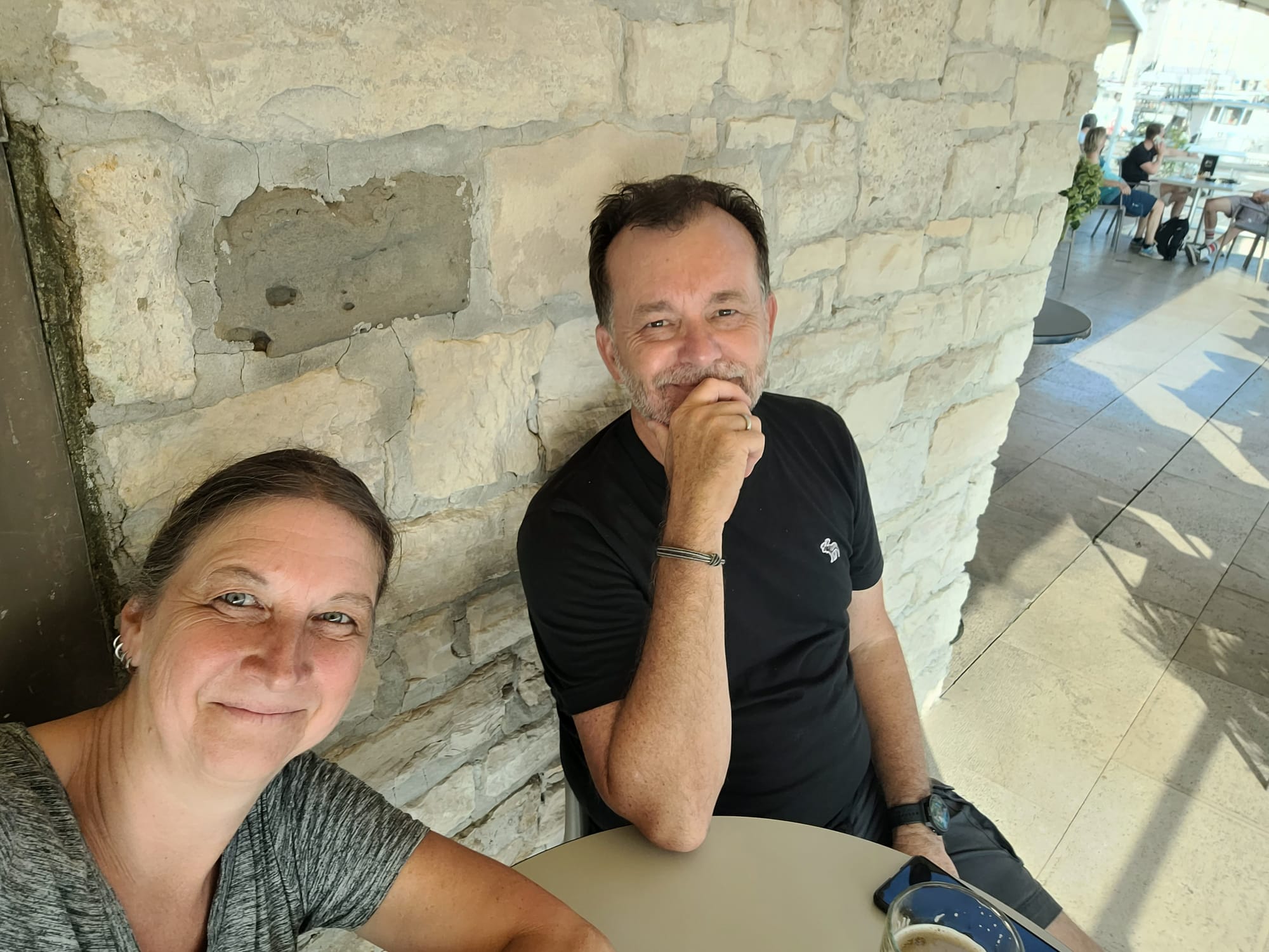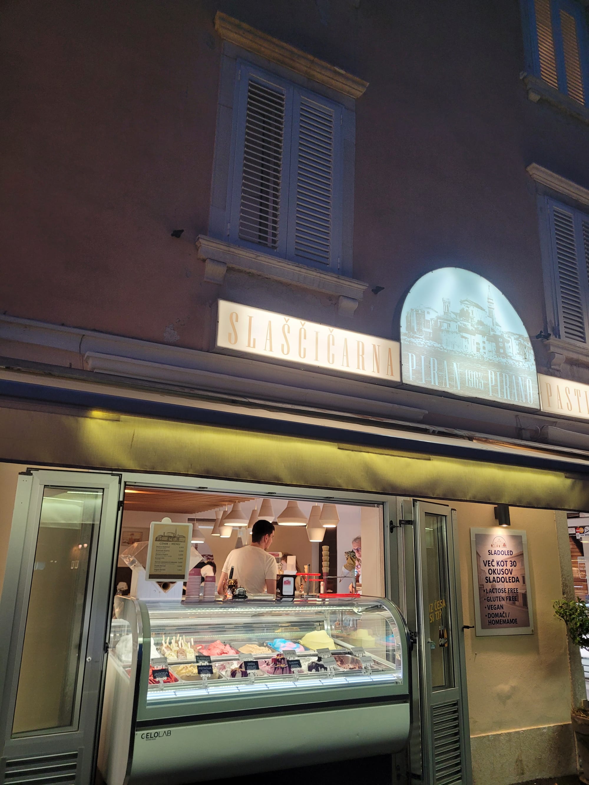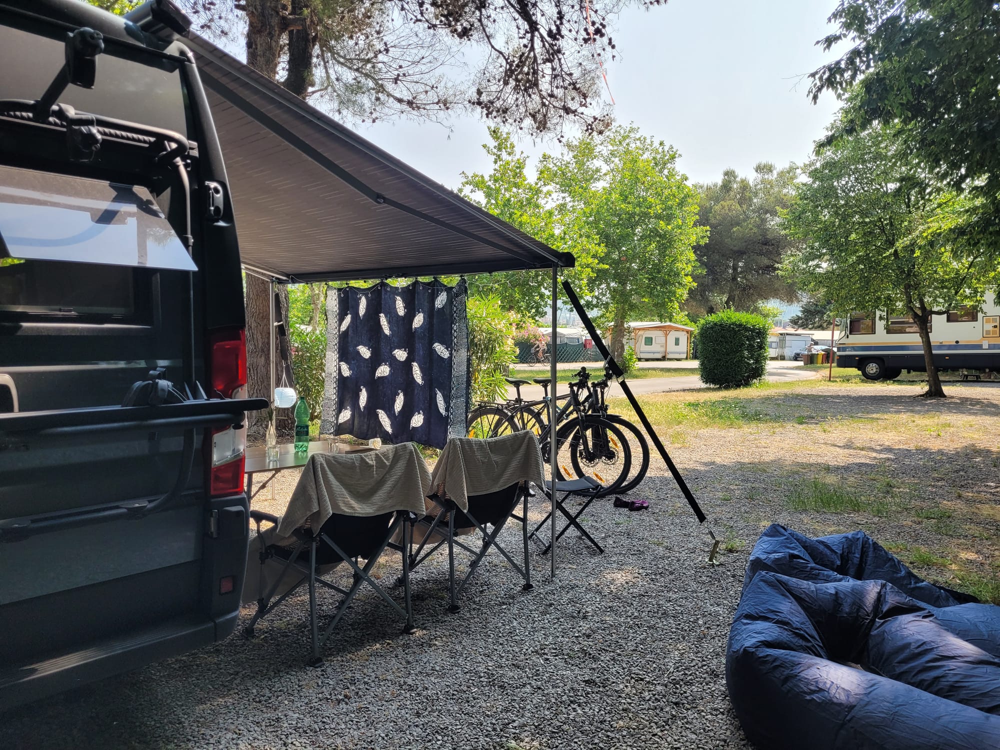 Ein Ausflug nach Piran ist für heute auch geplant, aber den verschieben wir auf den Abend. Den Nachmittag verbringen wir lieber im Schatten vor dem Luigi oder schwimmend/duschend im kalten Nass.