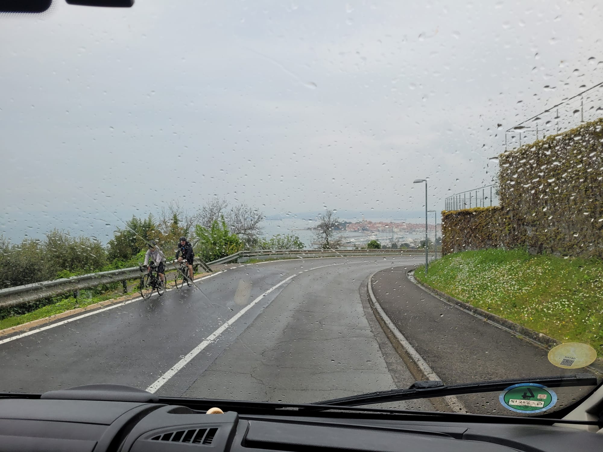 ...und fahren wieder einmal Izola an. Tapfere Radfahrer kommen uns im Regen entgegen.