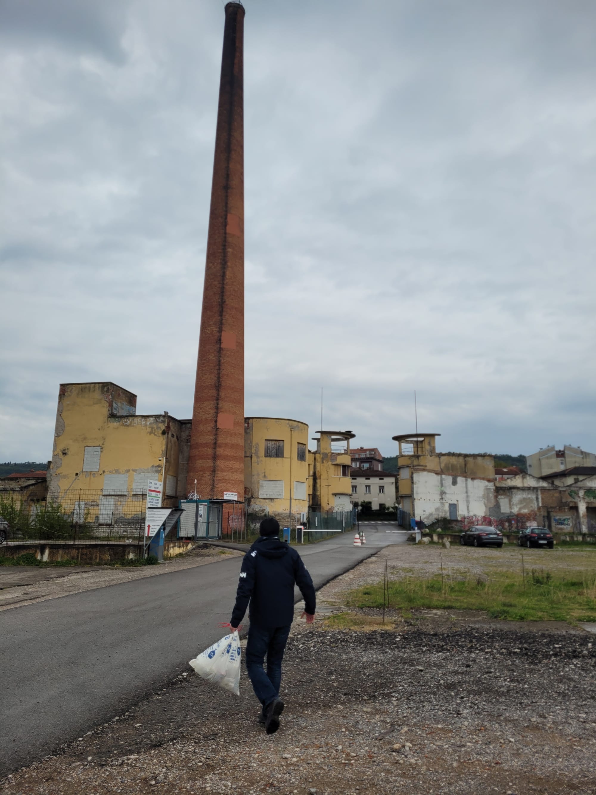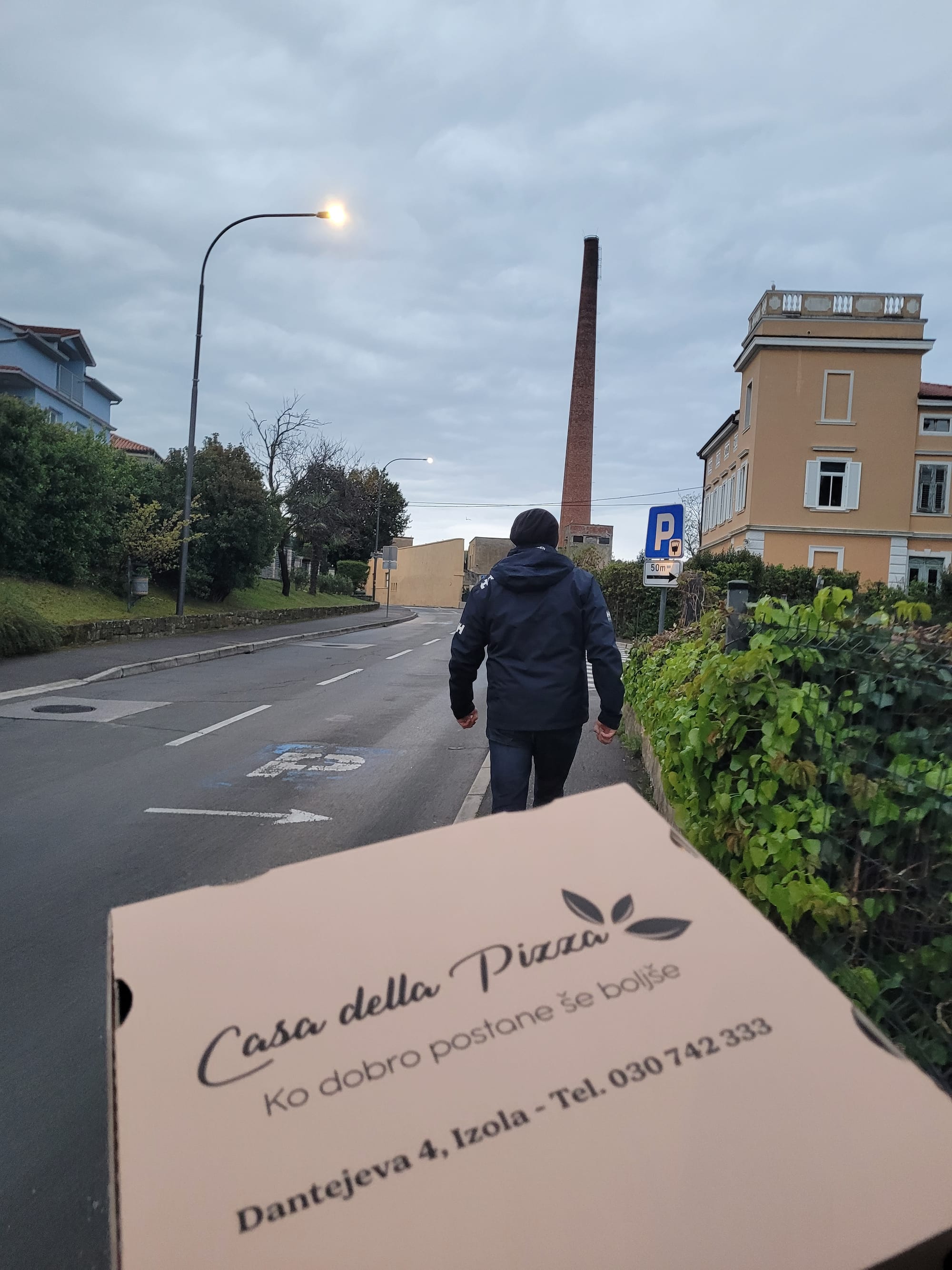 Wir verbinden das Angenehme mit dem Nützlichen und nehmen auf dem Weg zur Pizzeria den Müll zum Entsorgen mit.
